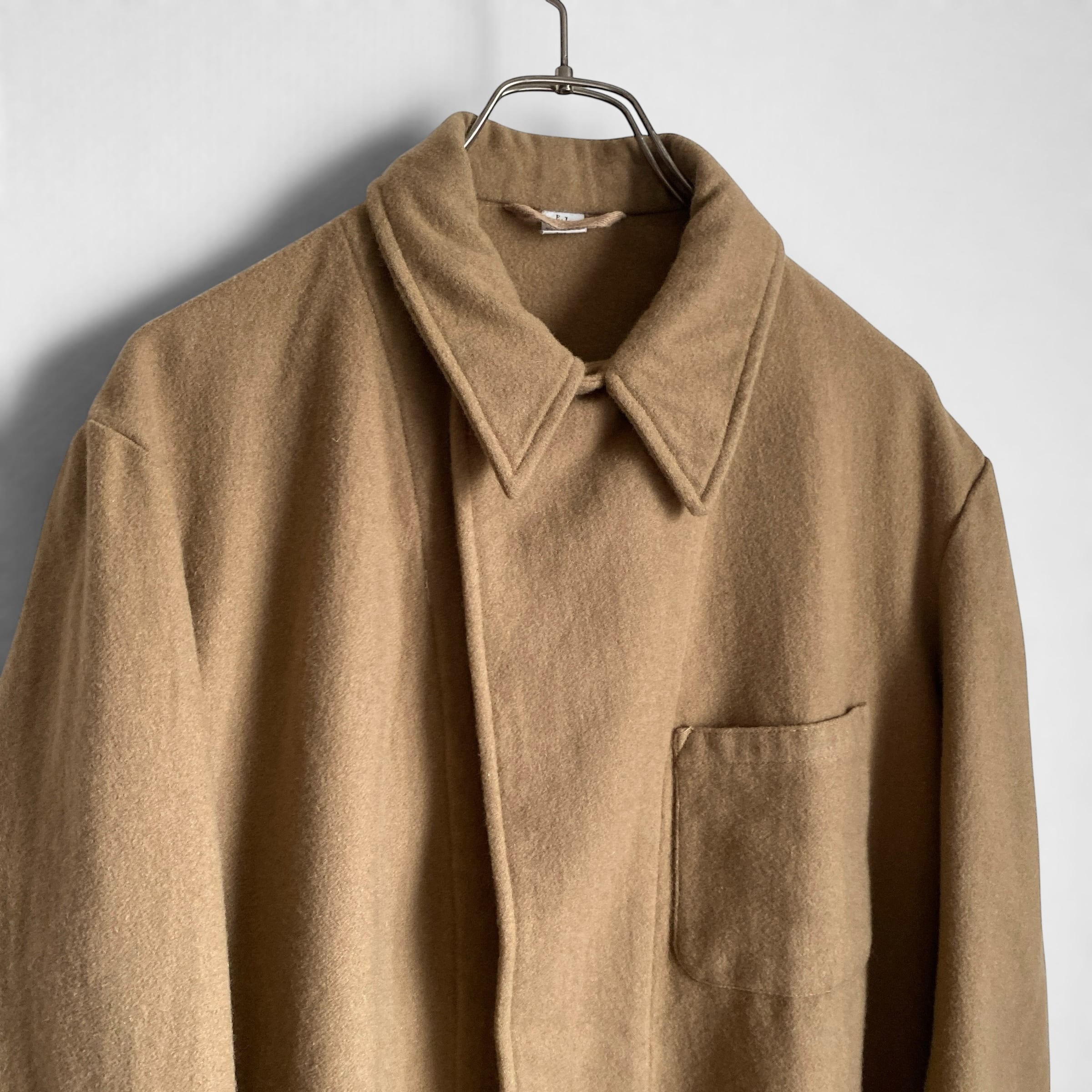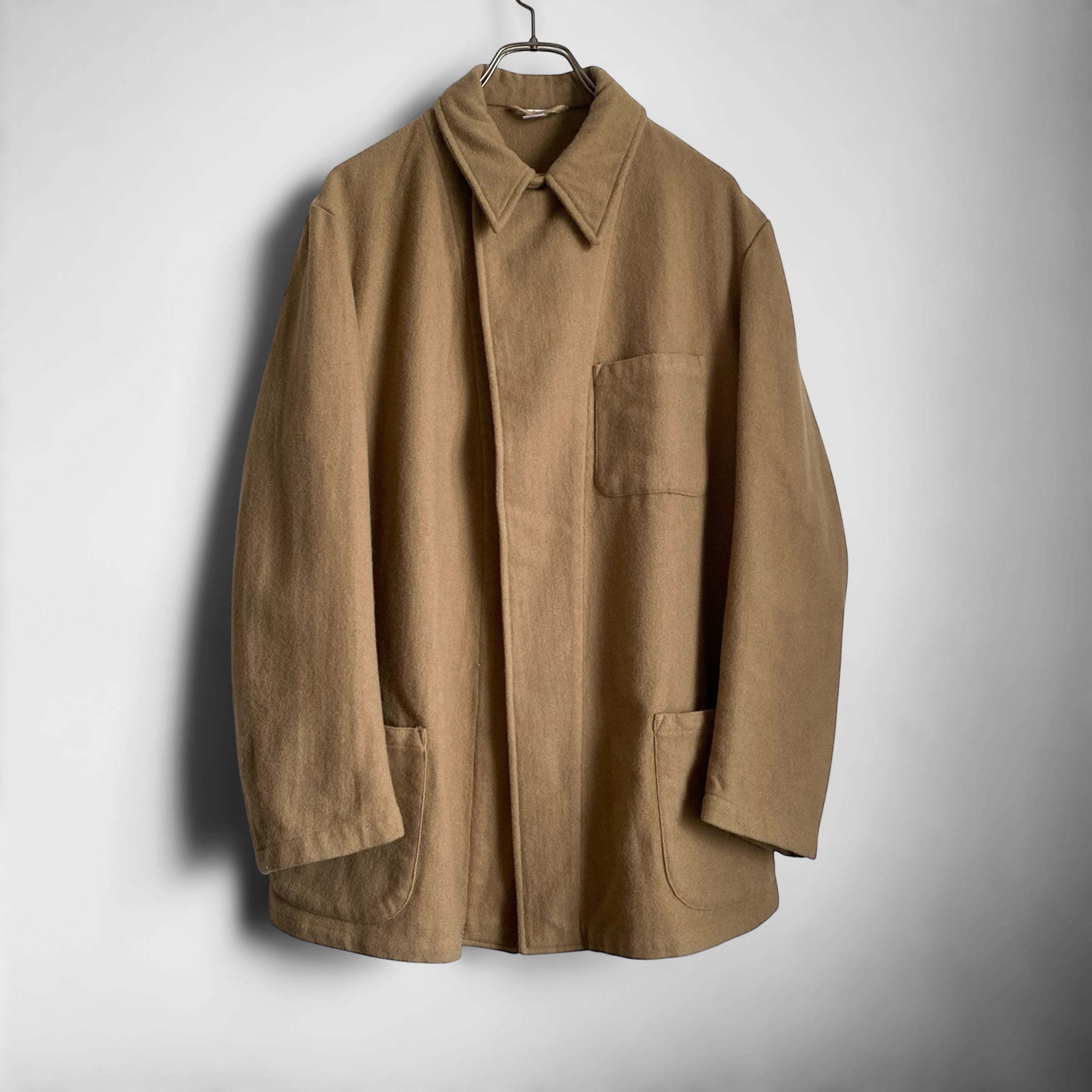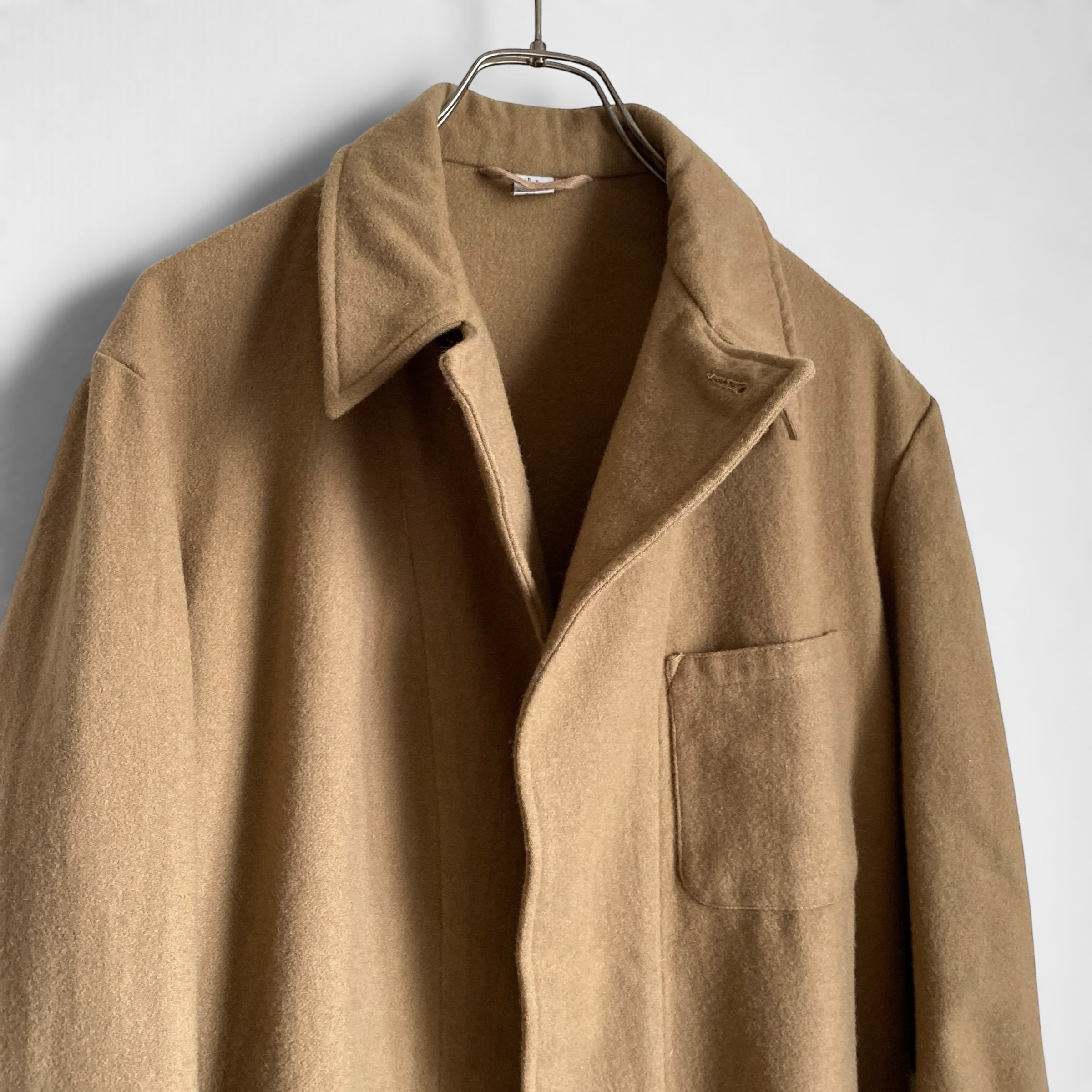 上品なキャメルベージュ系の色目に、ジャケットスタイルのミニマルなデザインが非常に格好良い一着。