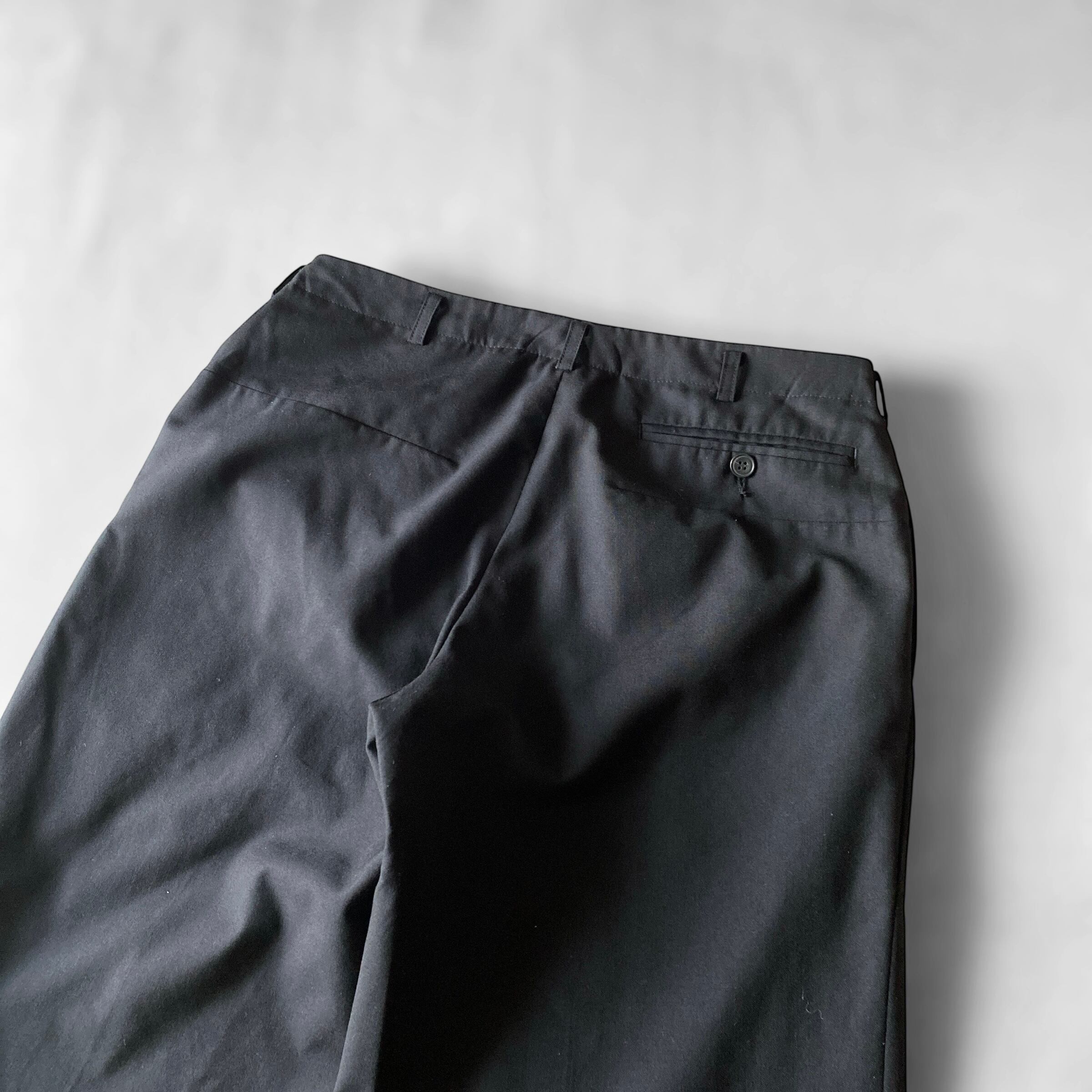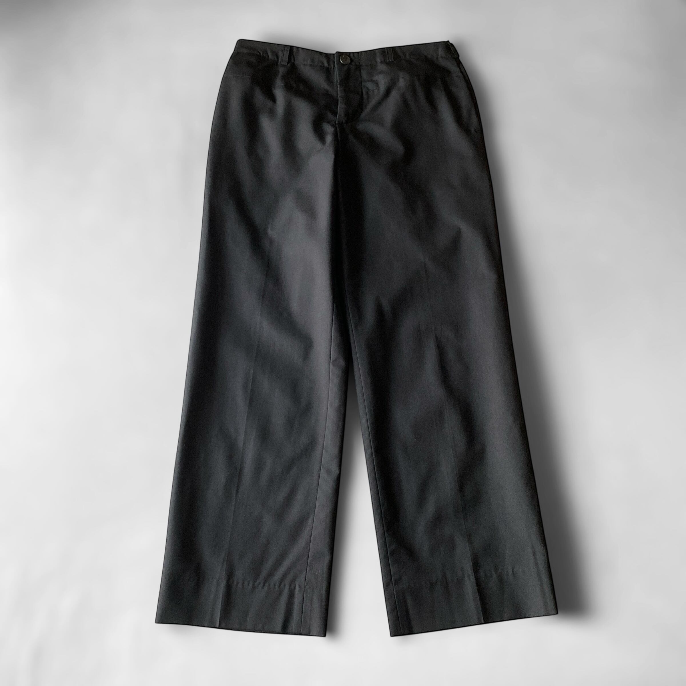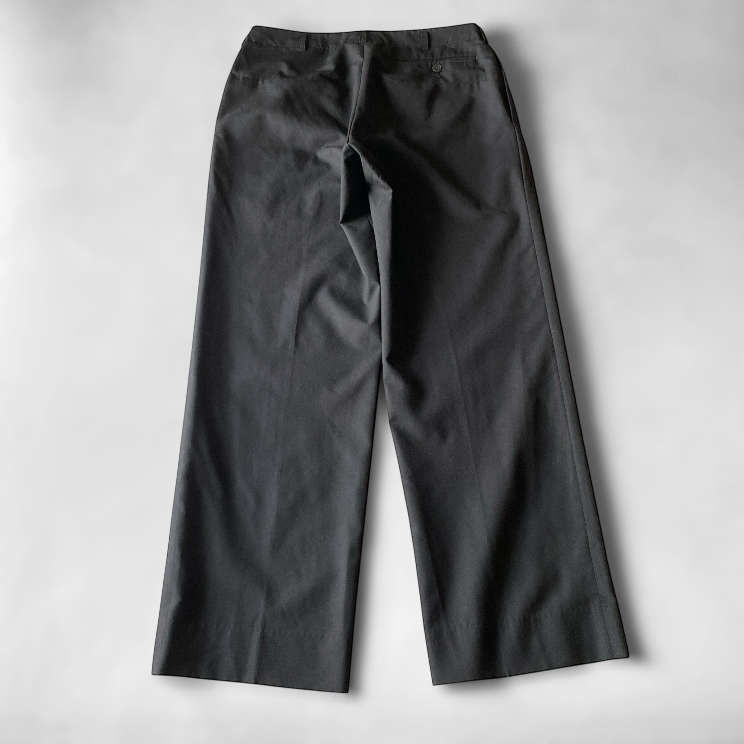 上質でサラッとしたブラックカラーのウール生地に、ストンと落ちるワイドストレートシルエットが非常に素晴らしい一着。