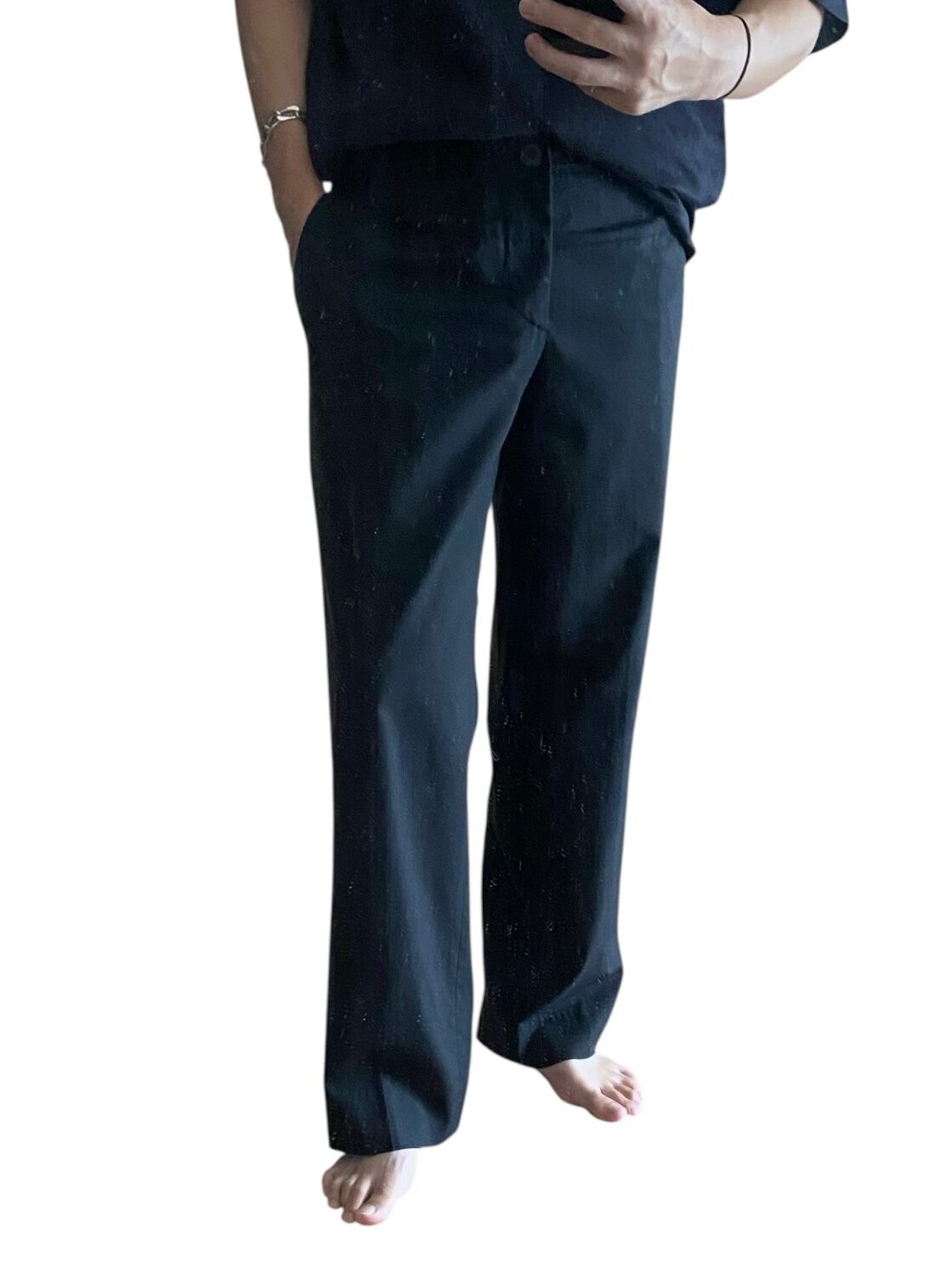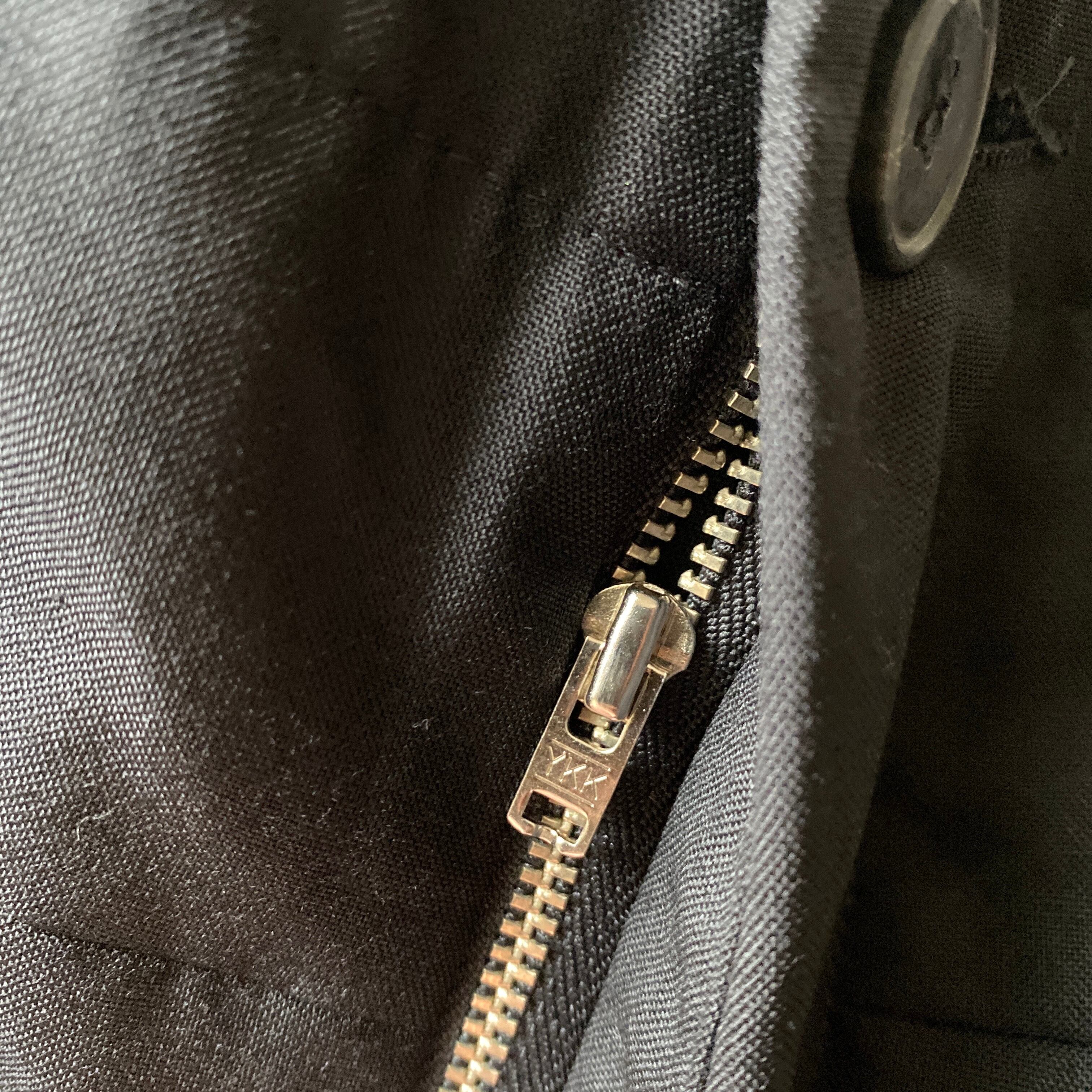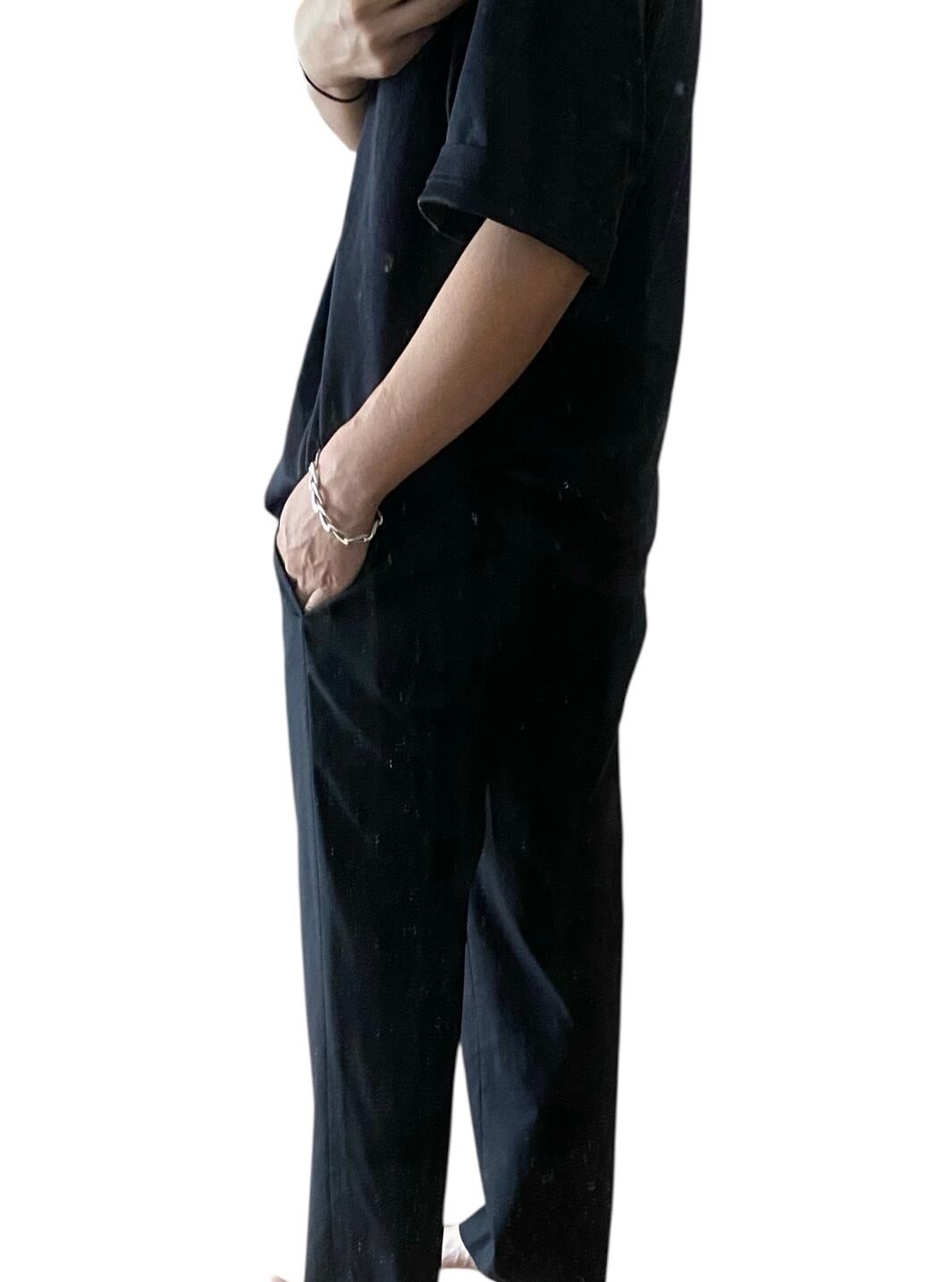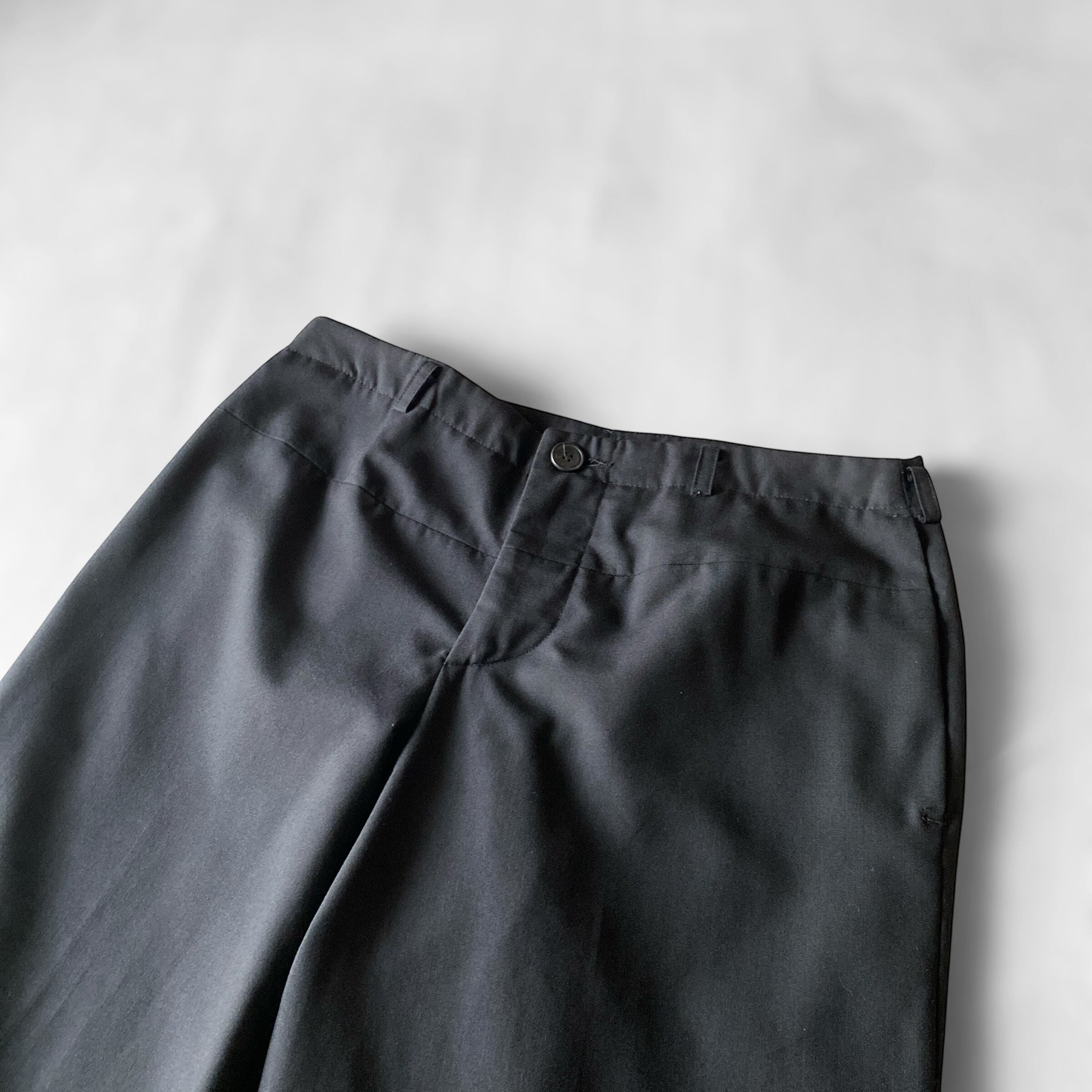 上質でサラッとしたブラックカラーのウール生地に、ストンと落ちるワイドストレートシルエットが非常に素晴らしい一着。