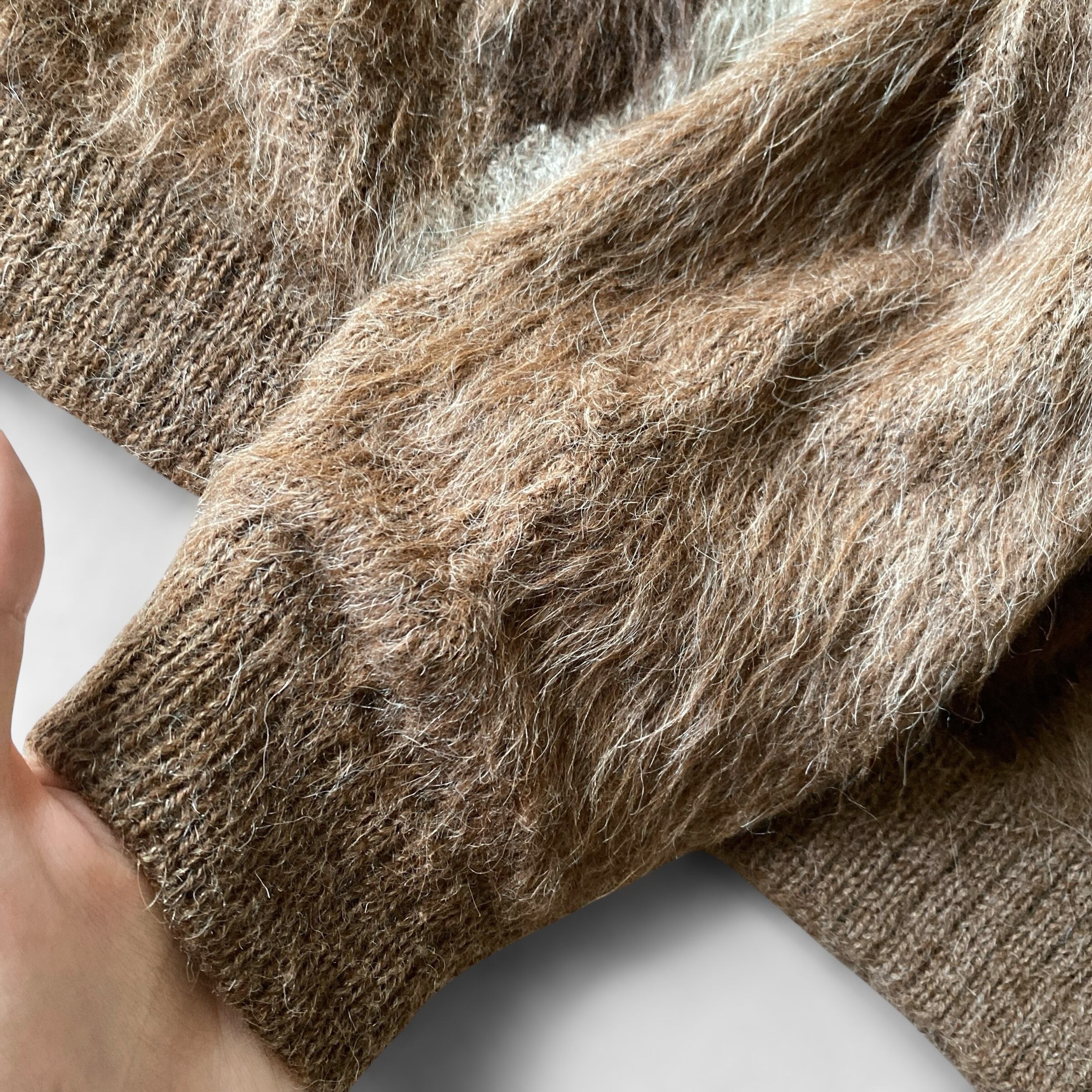毛足の長いヴィンテージモヘアのようなルックスに、アルパカ特有の柔らかくふわっとした極上の質感、肩周りがシームレスで肌馴染みの良い作りが大変素晴らしい一着。