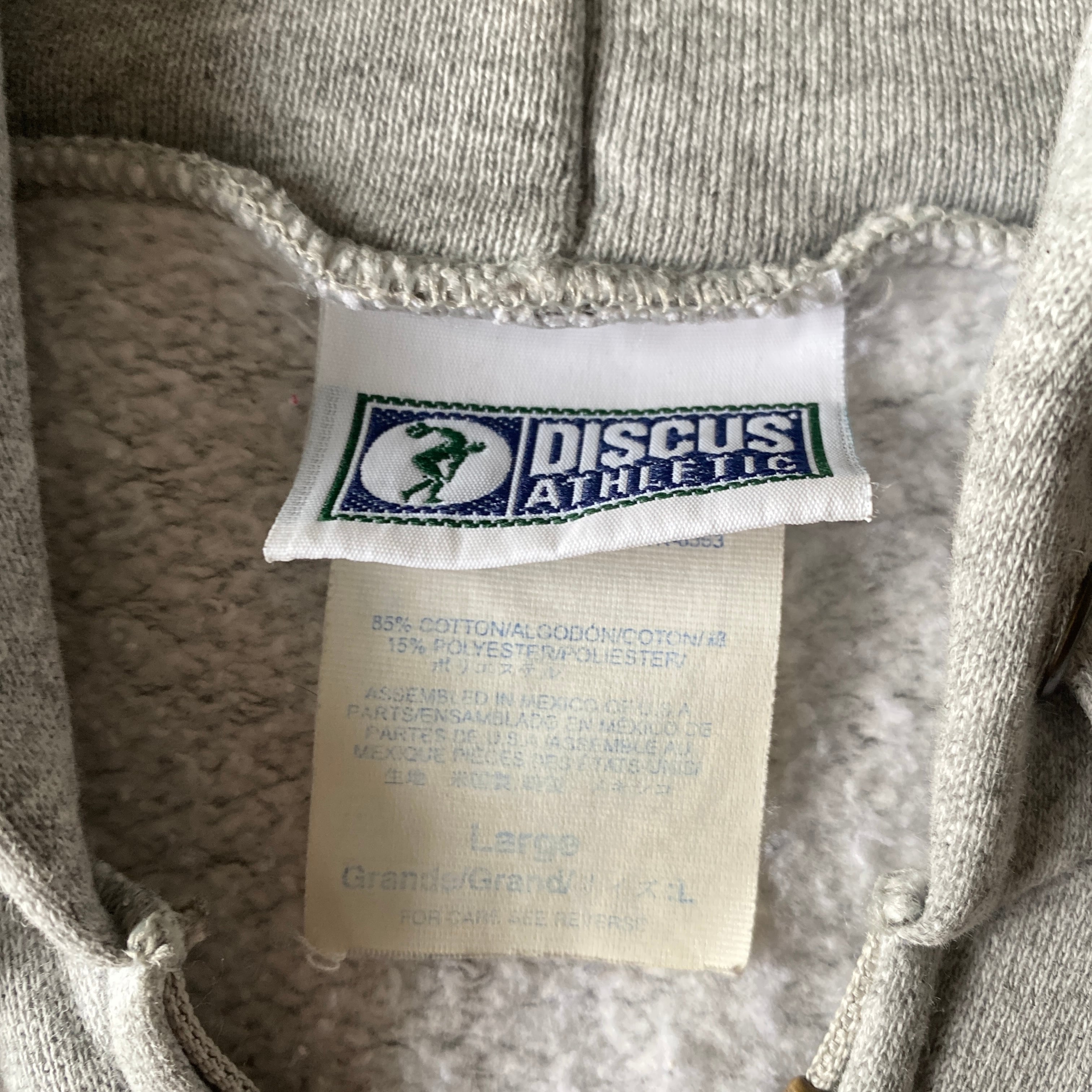1990年代ごろのメキシコ製「ディスカスアスレチック」ブランクスウェットジップアップパーカーになります。(生地はアメリカ製)