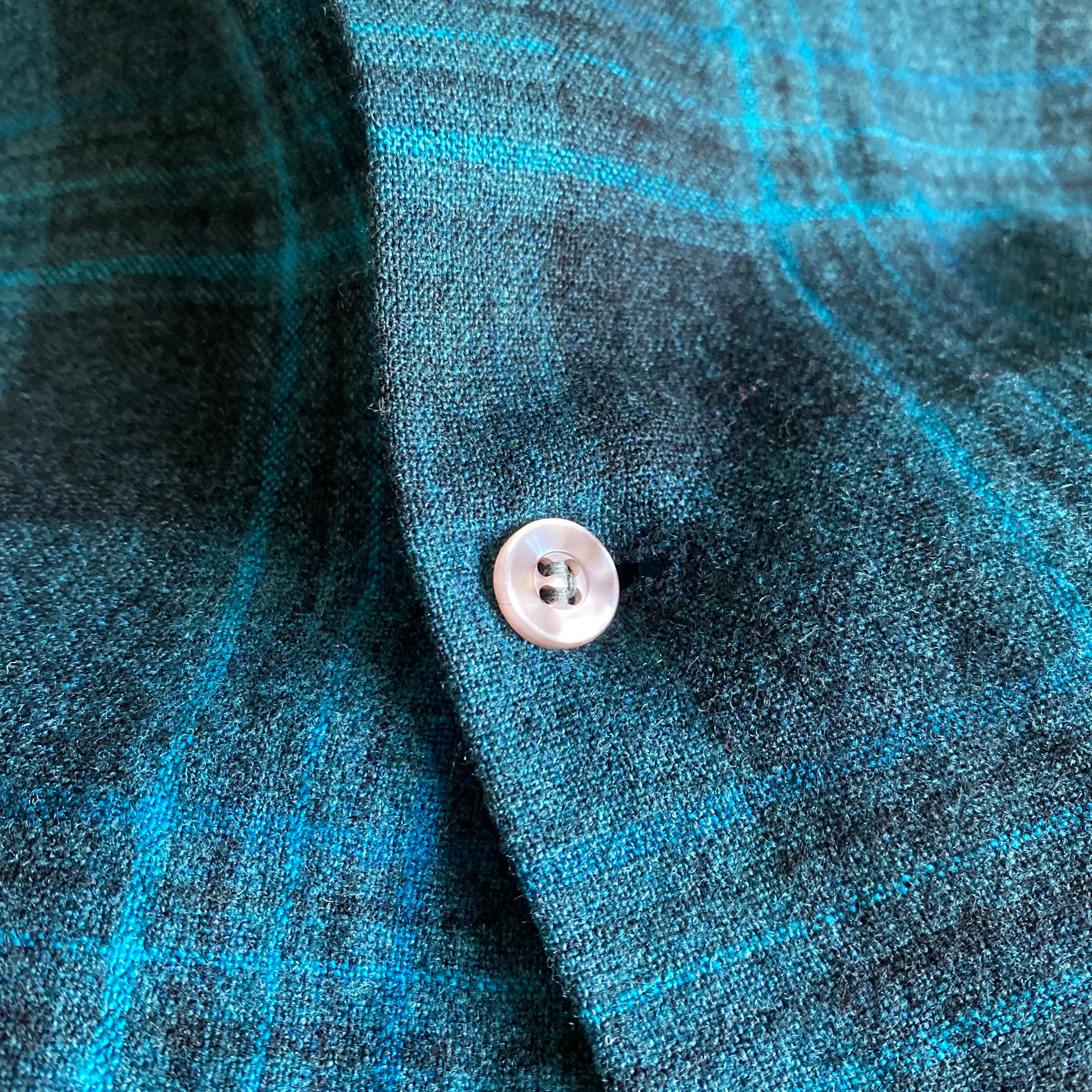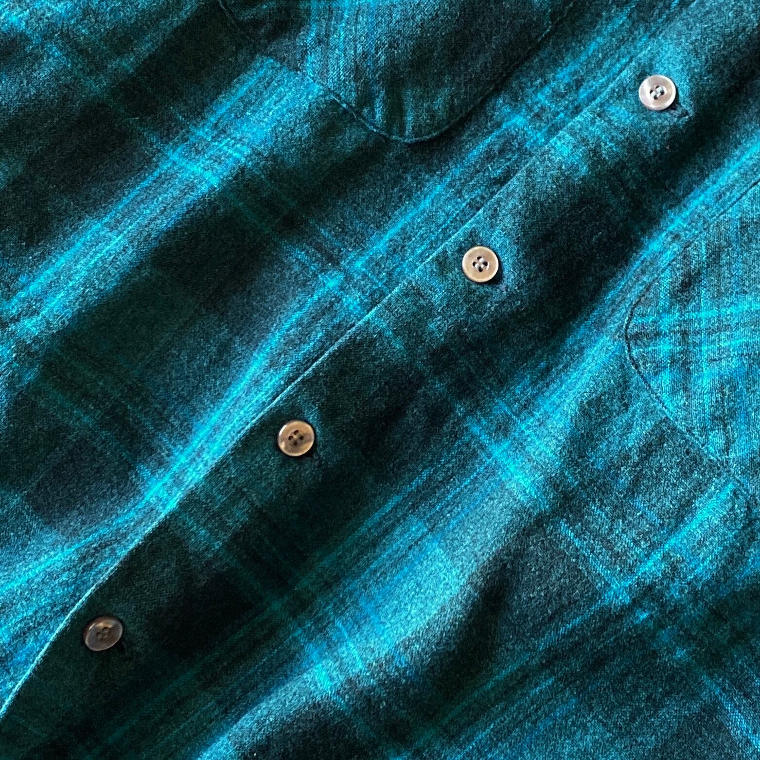 オンブレとは言えませんが、かなり珍しいブラック×くすんだターコイズブルーの上品なカラーリングのチェック柄に(実物の方がメリハリがあって美しいです)、ペンドルトンらしいサクッとした上質なウールの質感が素晴らしい一着。