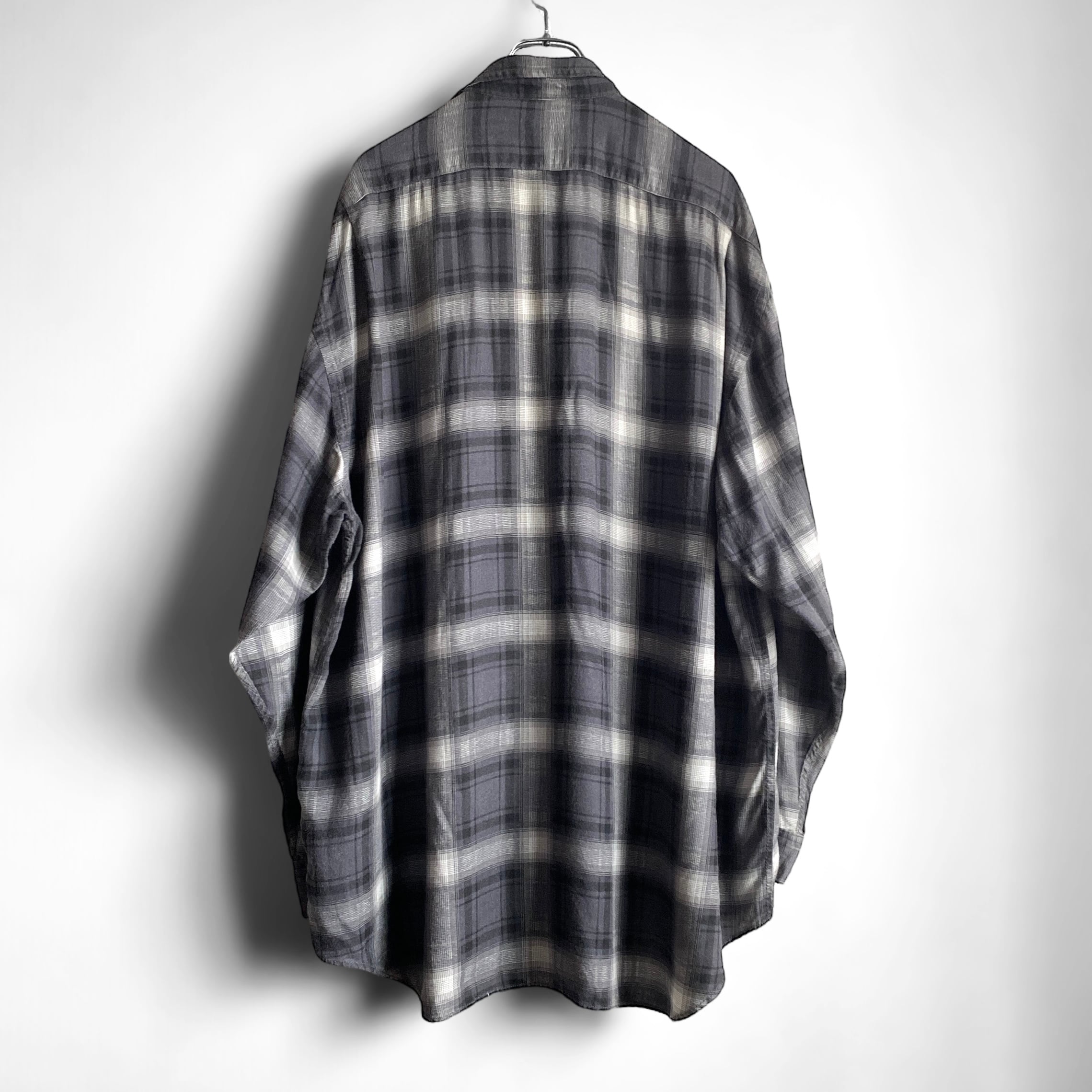 程よく肉厚でとろみのあるレーヨン生地に、ブラック×グレー×ホワイトの好配色なオンブレチェック、ゆったりとしたオーバーサイズシルエットが非常に格好良い一着。