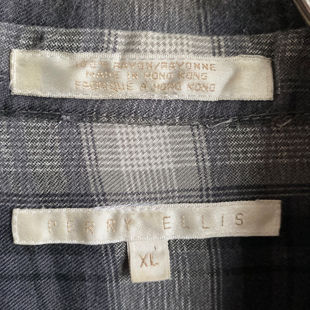 1990年代ごろ〜の「ペリーエリス」オンブレチェックレーヨンオープンカラーシャツになります。
