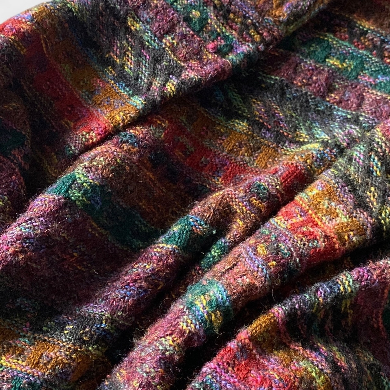 幾多の色目が混じり合ったアートのような美しい表情、ウール×モヘアをベースとしたモチっとした上質な生地感、丸みのあるゆったりとしたボックスシルエットが非常に素晴らしい一着。