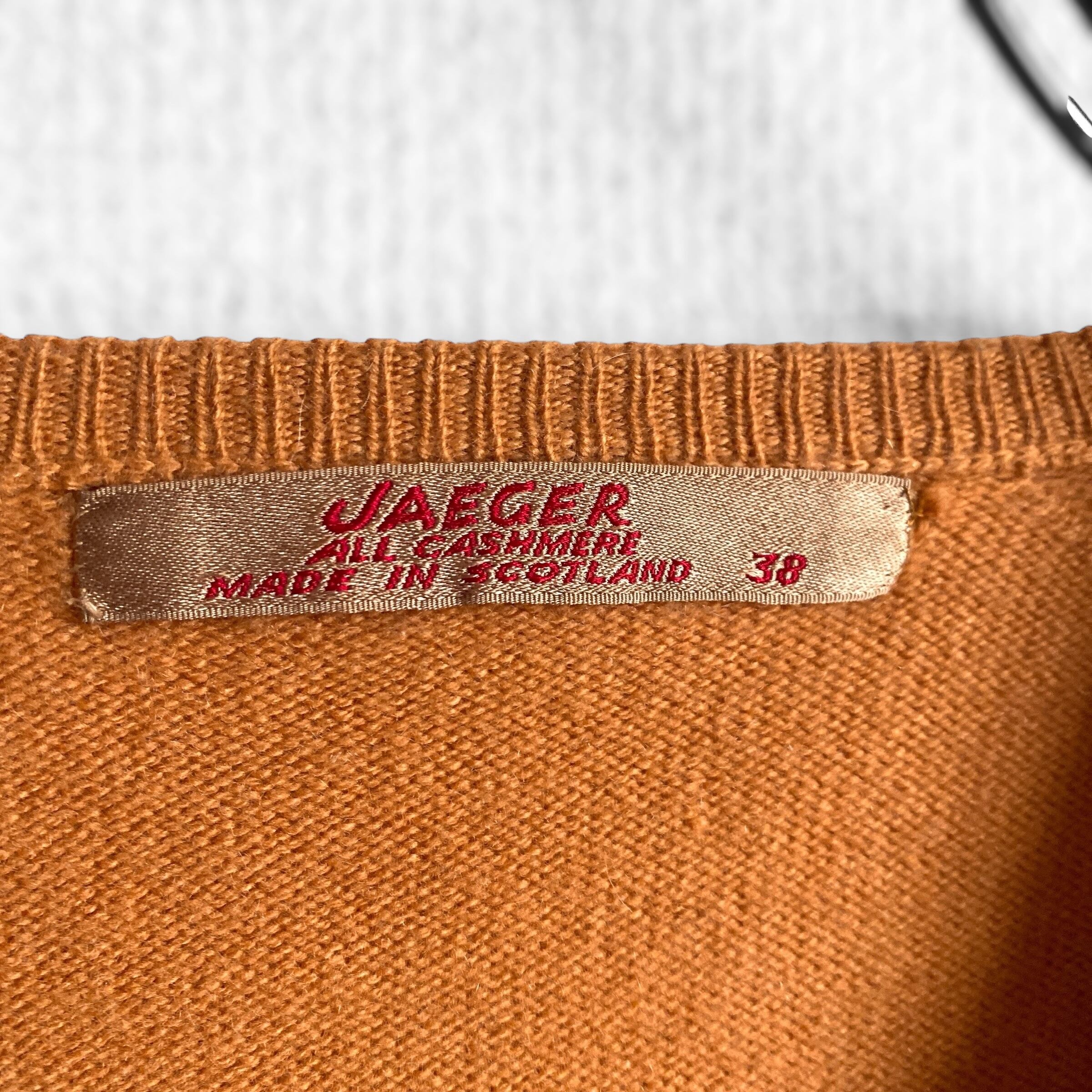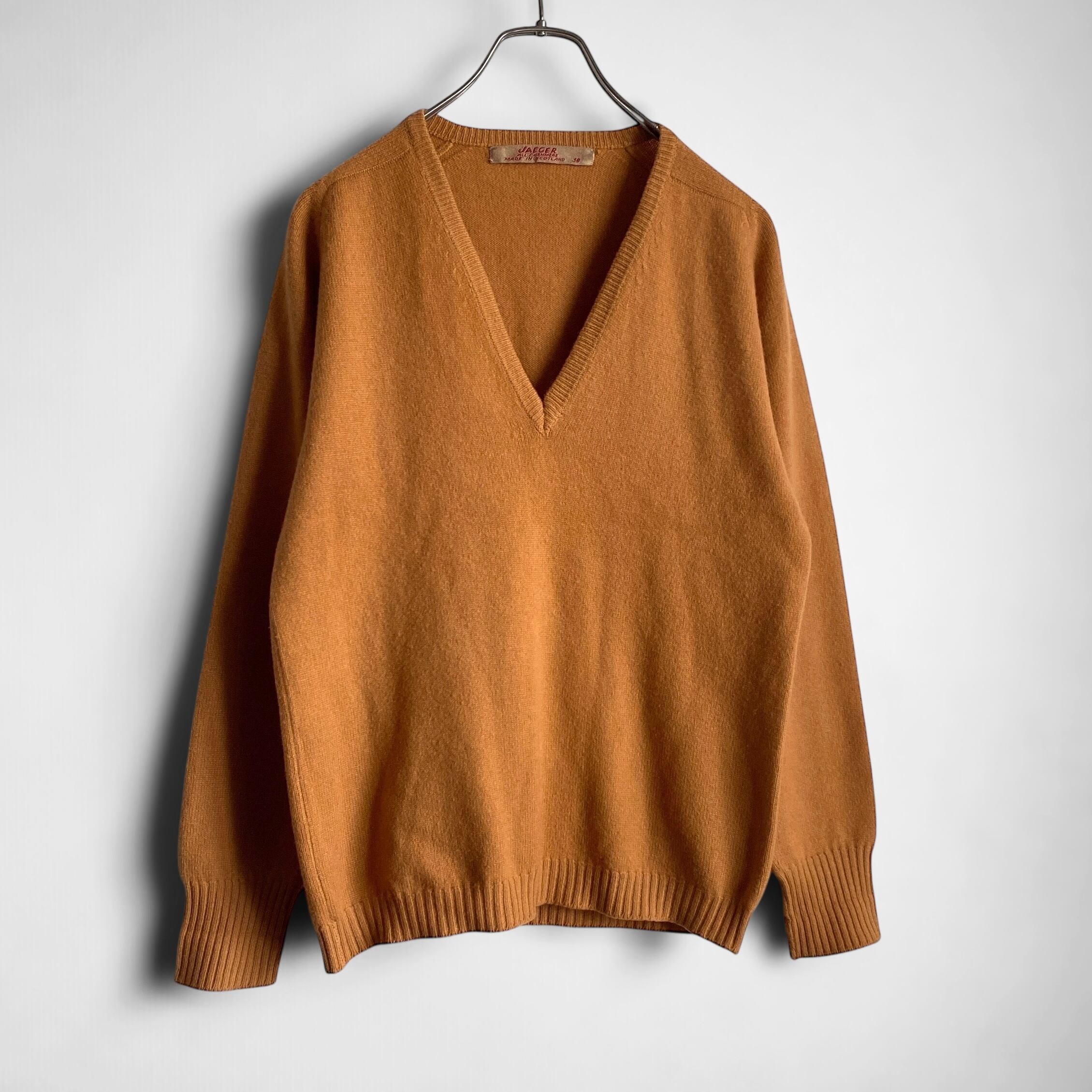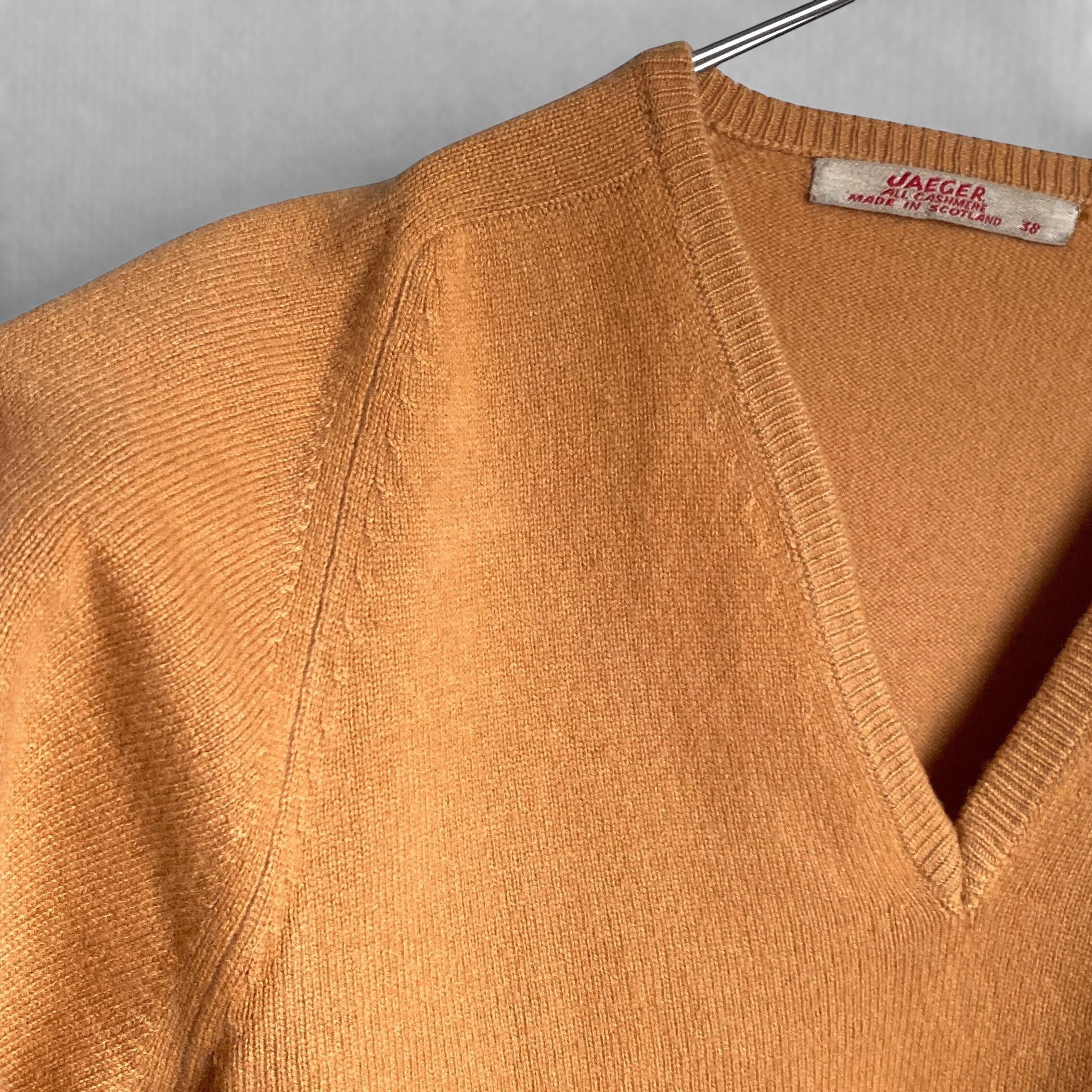 1980年代頃のスコットランド製イエーガーカシミアVネックセーターになります。(1884年創業イギリスの老舗ニットメーカー)