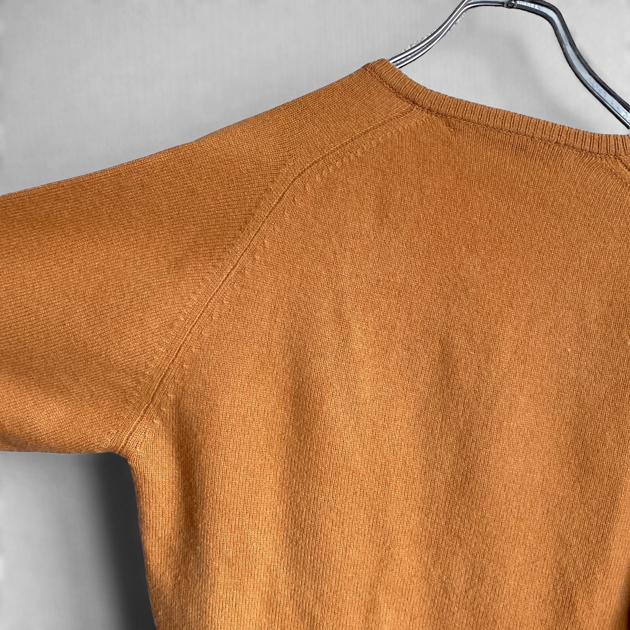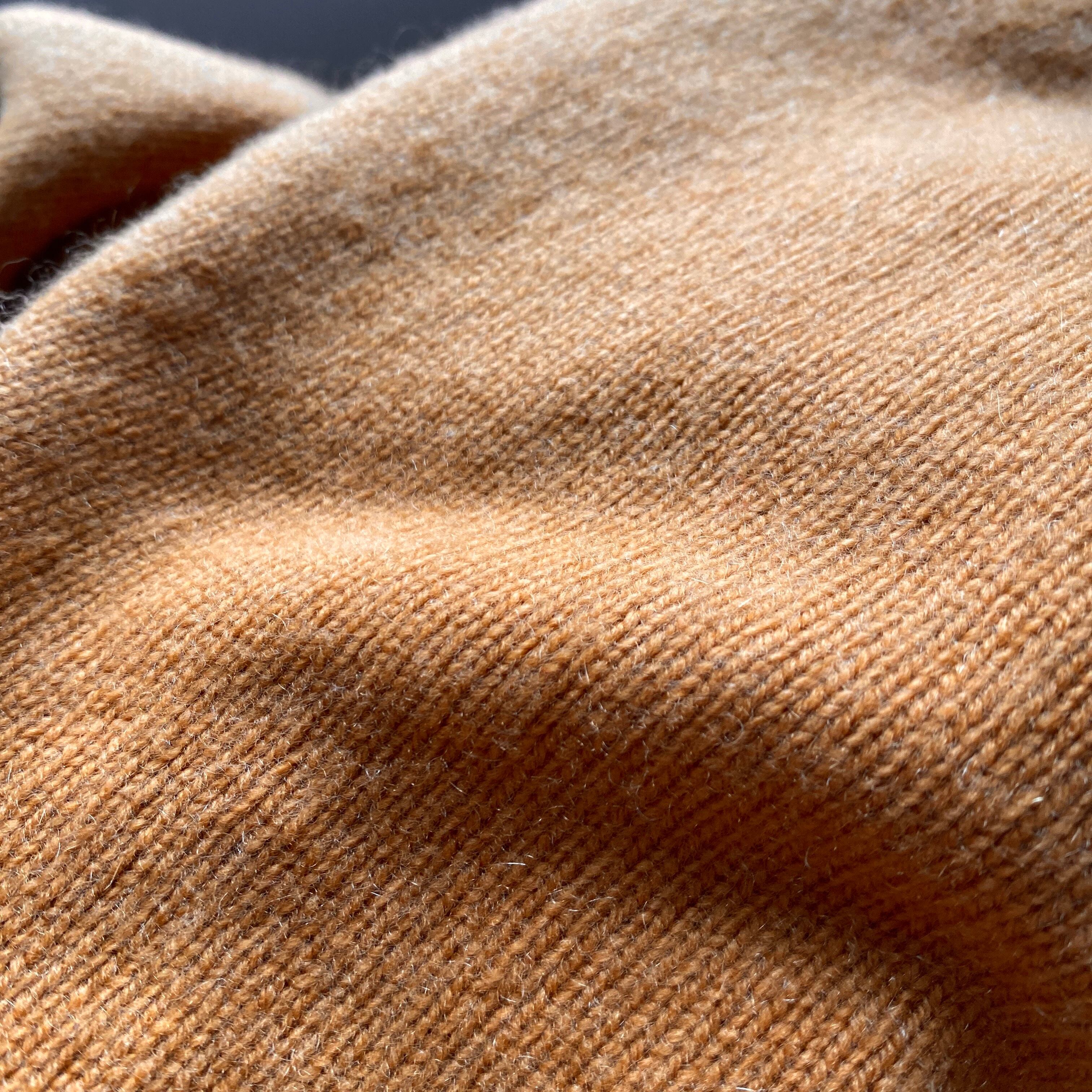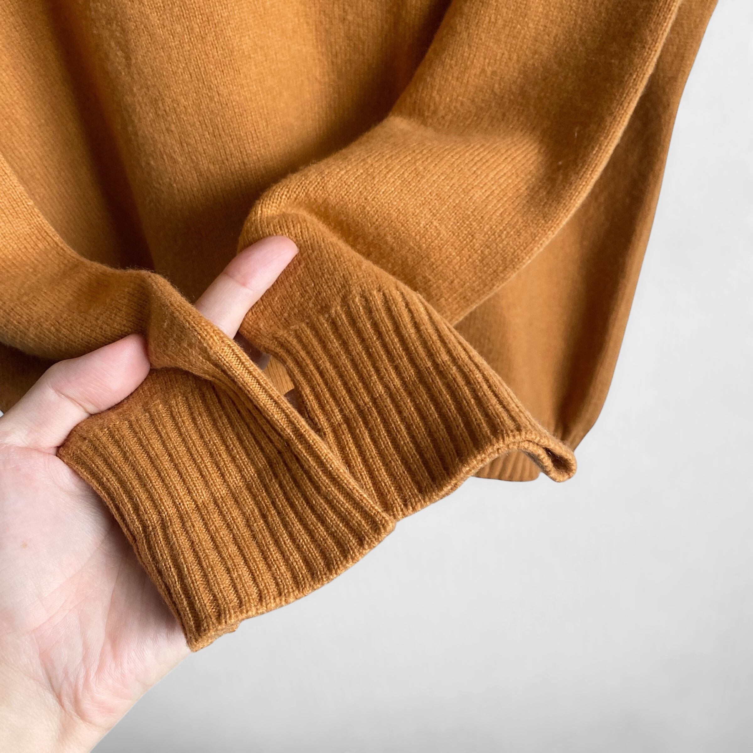 古いイギリス製カシミヤ特有の目の詰まった肉厚でふわっと柔らかい極上の質感に、綺麗な柿色が素晴らしい一着。
