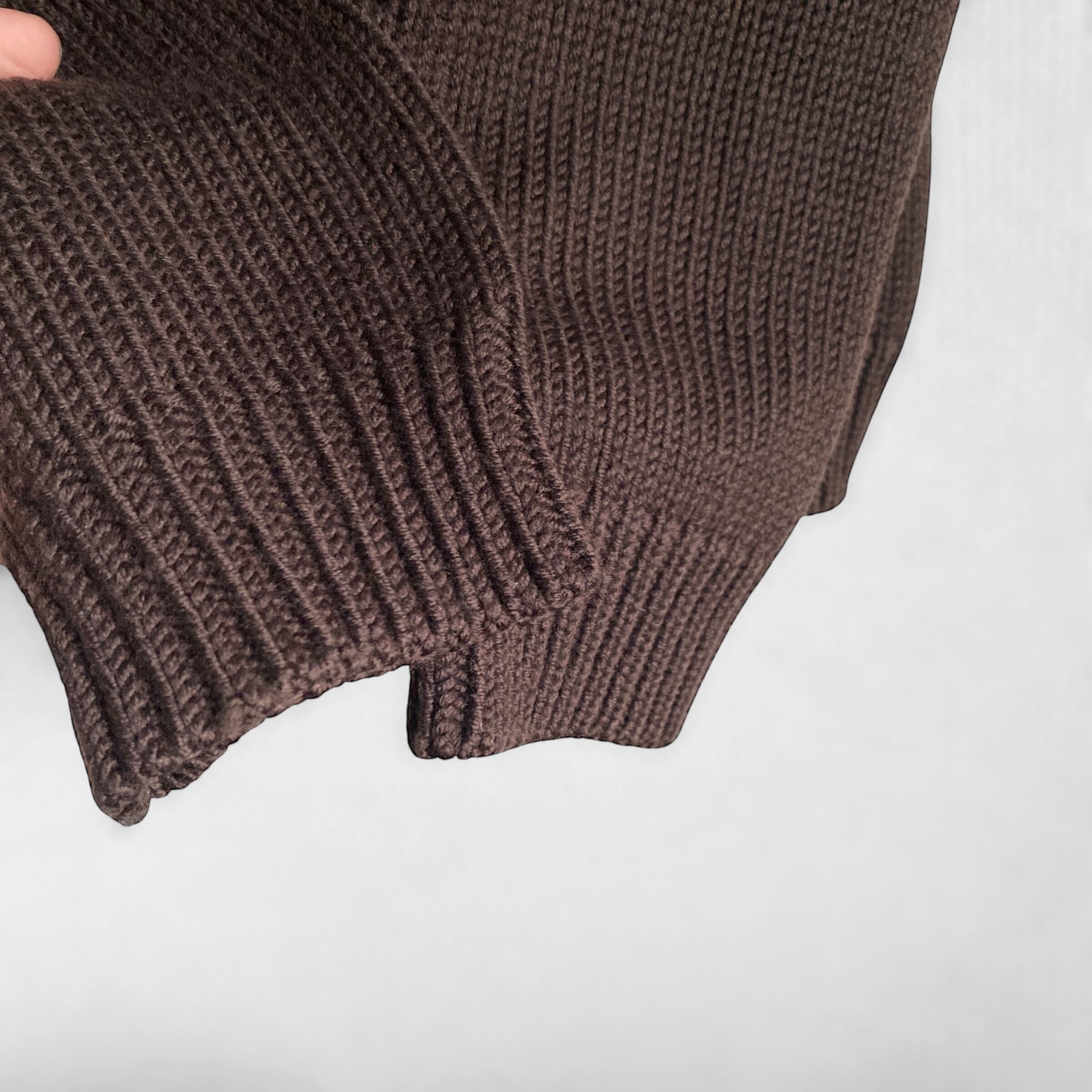 肉厚でモチモチの上質なメリノウールニットに、上品なダークブラウンカラー、細すぎず太すぎベーシックなシルエットが素晴らしい一着。