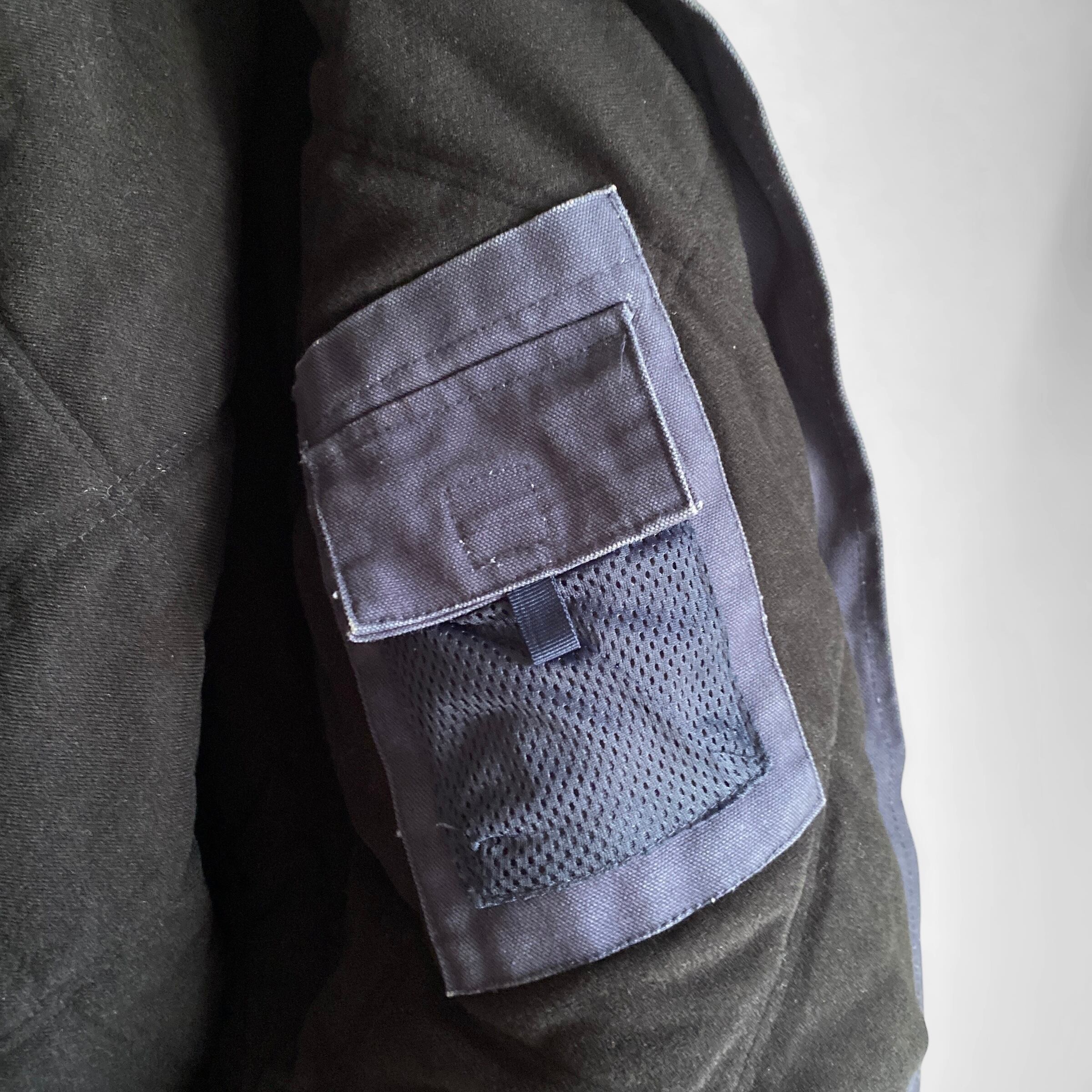 褪せたネイビーカラーのコットンダック地に、ゆったりとした短丈ボックスシルエットが非常に格好良い一着。