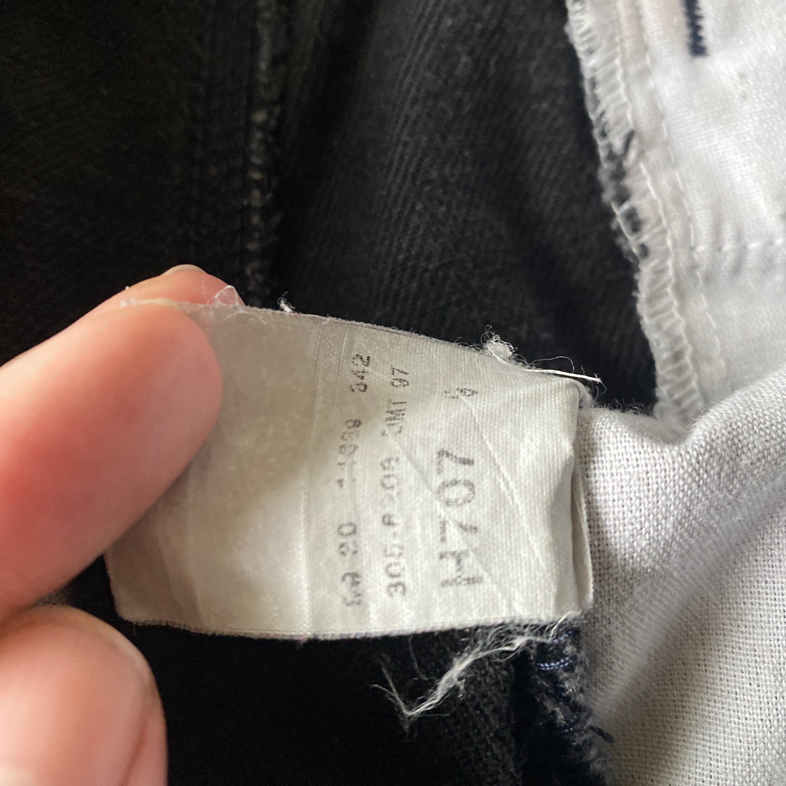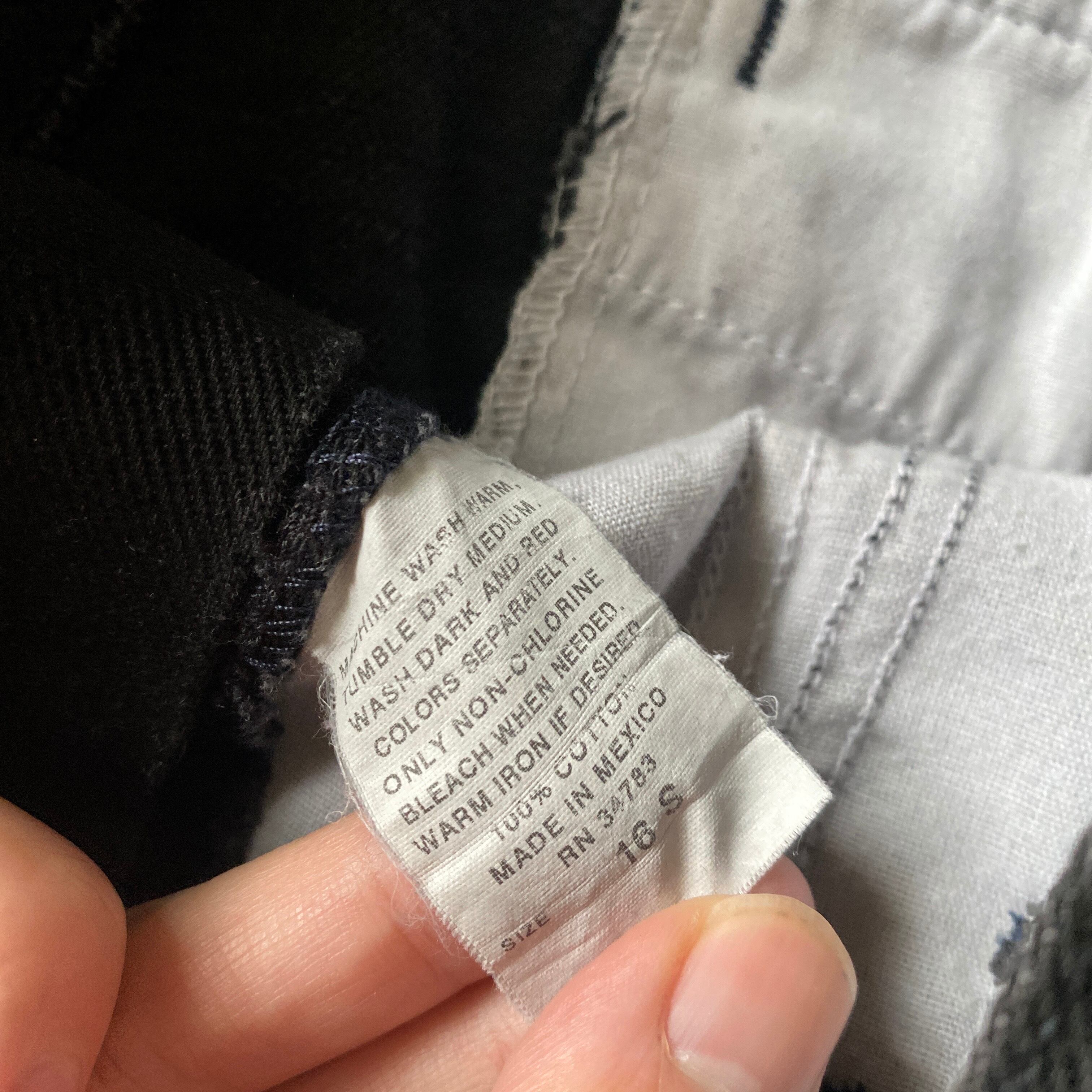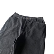 サイズが16S表記なのでおそらくレディース品番ですが、ゆったりとしたワタリからそこまできつくないテーパードのワイドシルエット、しっかりとした肉厚なブラックデニムでフリスコジーンズタイプのワークスタイルが珍しい一着。