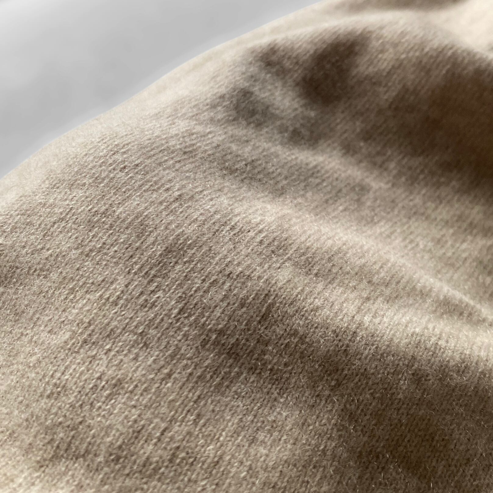 肉厚でトロフワな極上カシミヤニットに、柔らかいライトベージュ系カラー、XXLの超ビッグなサイズ感が非常に素晴らしい一着。