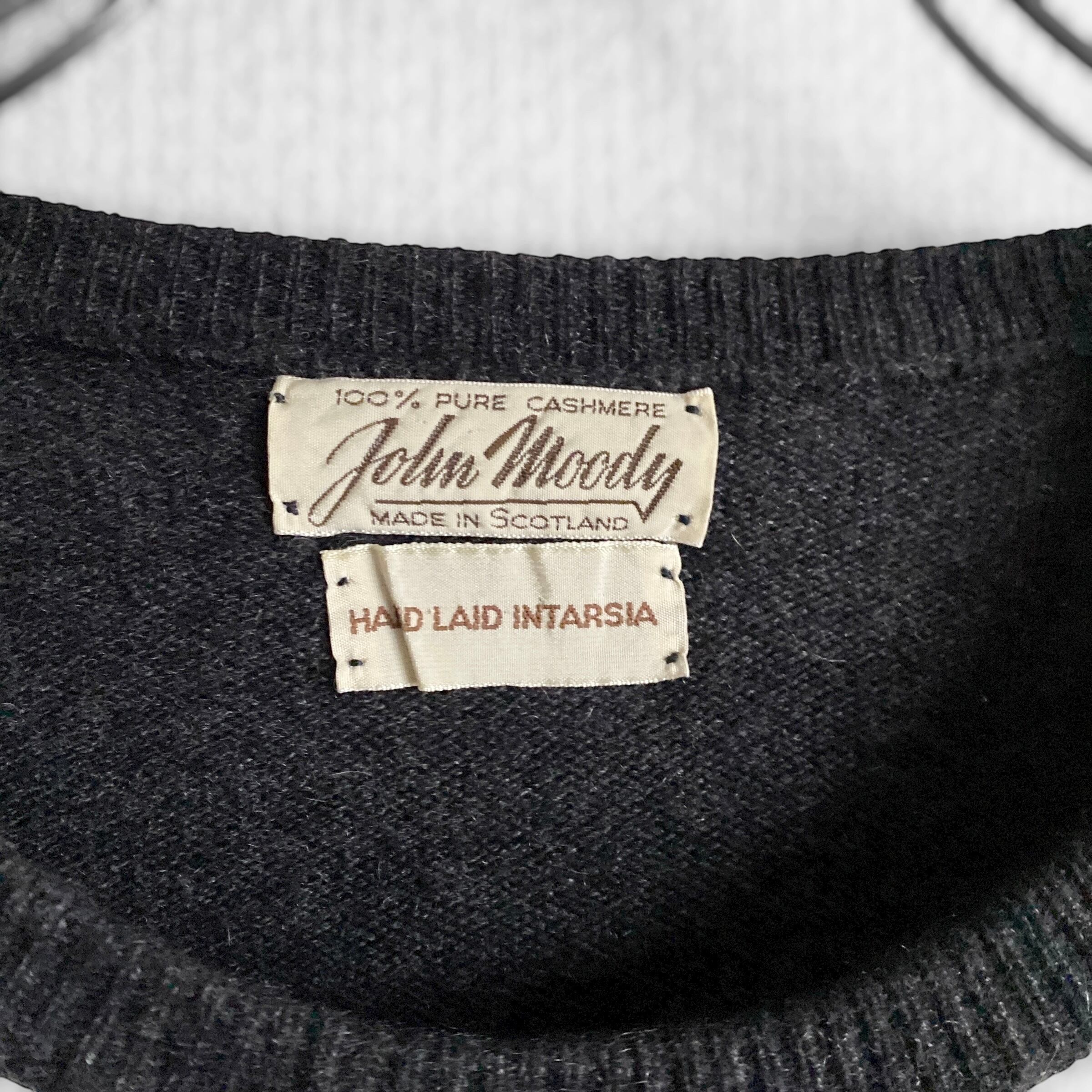 〜1970年代頃のスコットランド製「ジョンムーディ」カシミアクルーネックニットセーターになります。