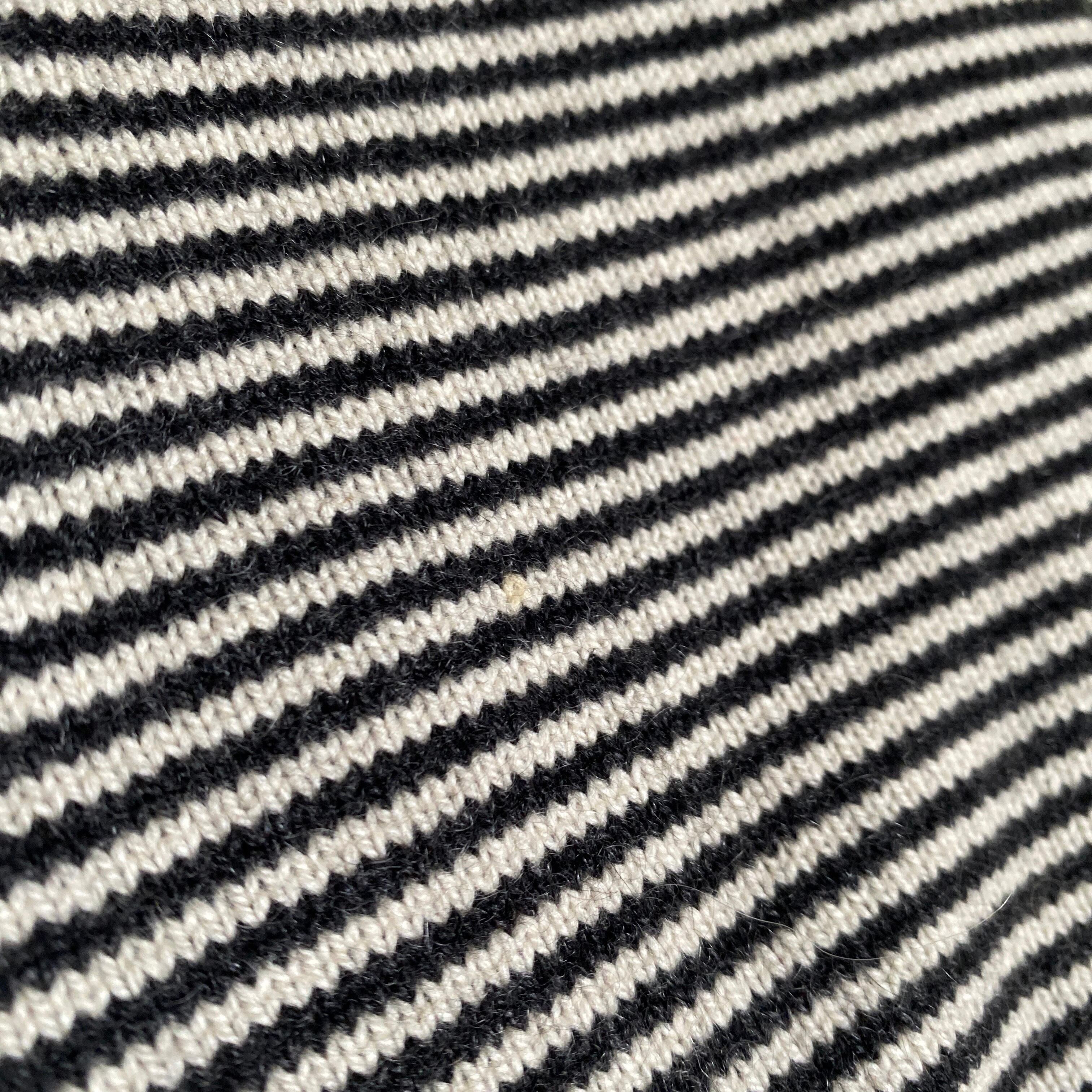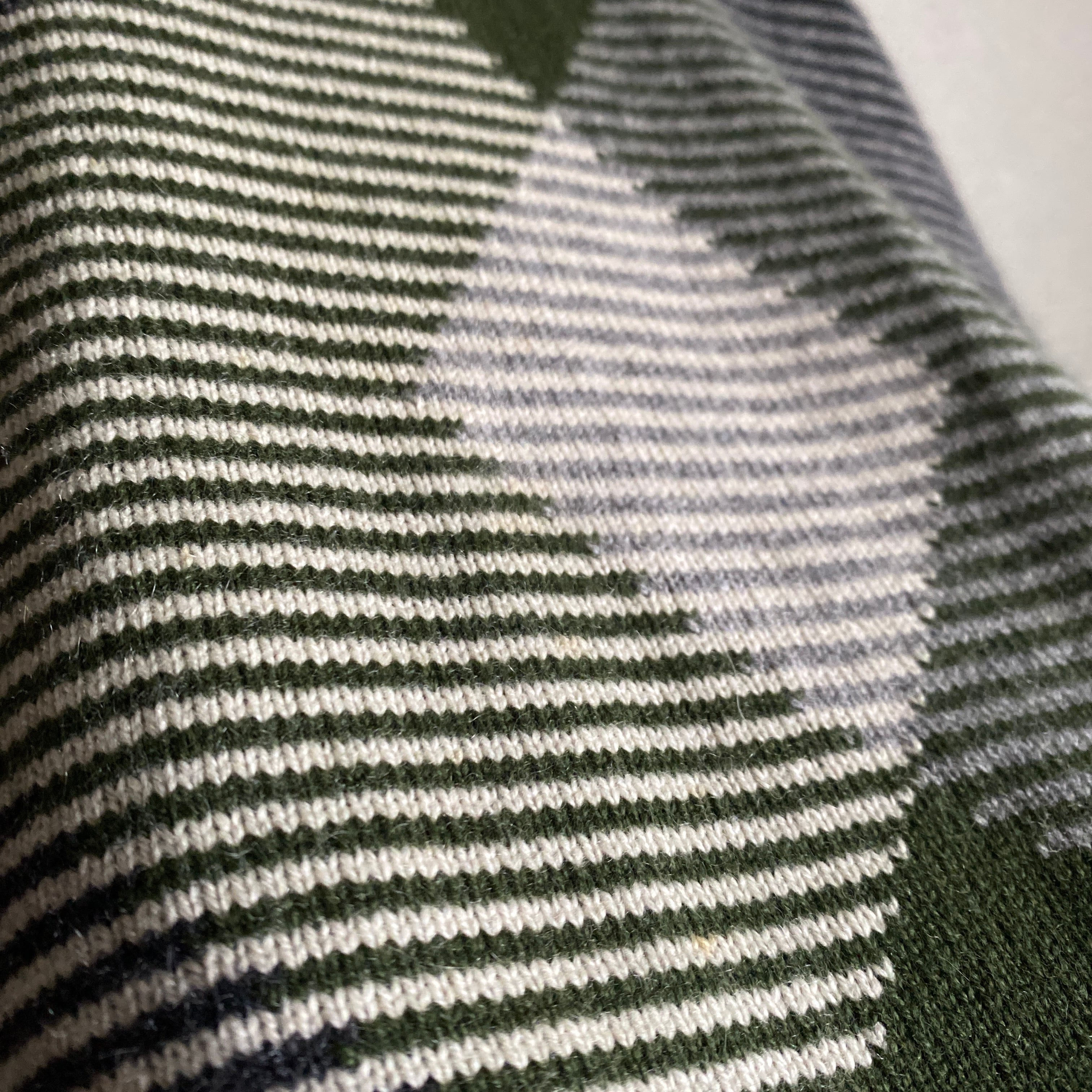 HAND LAID INTERSIAという伝統的な技法(柄の切り替えの際、裏側の繋ぎ部分を手作業で編み込む技法)が使われており、かなりの手間や時間がかかったプロダクトです。