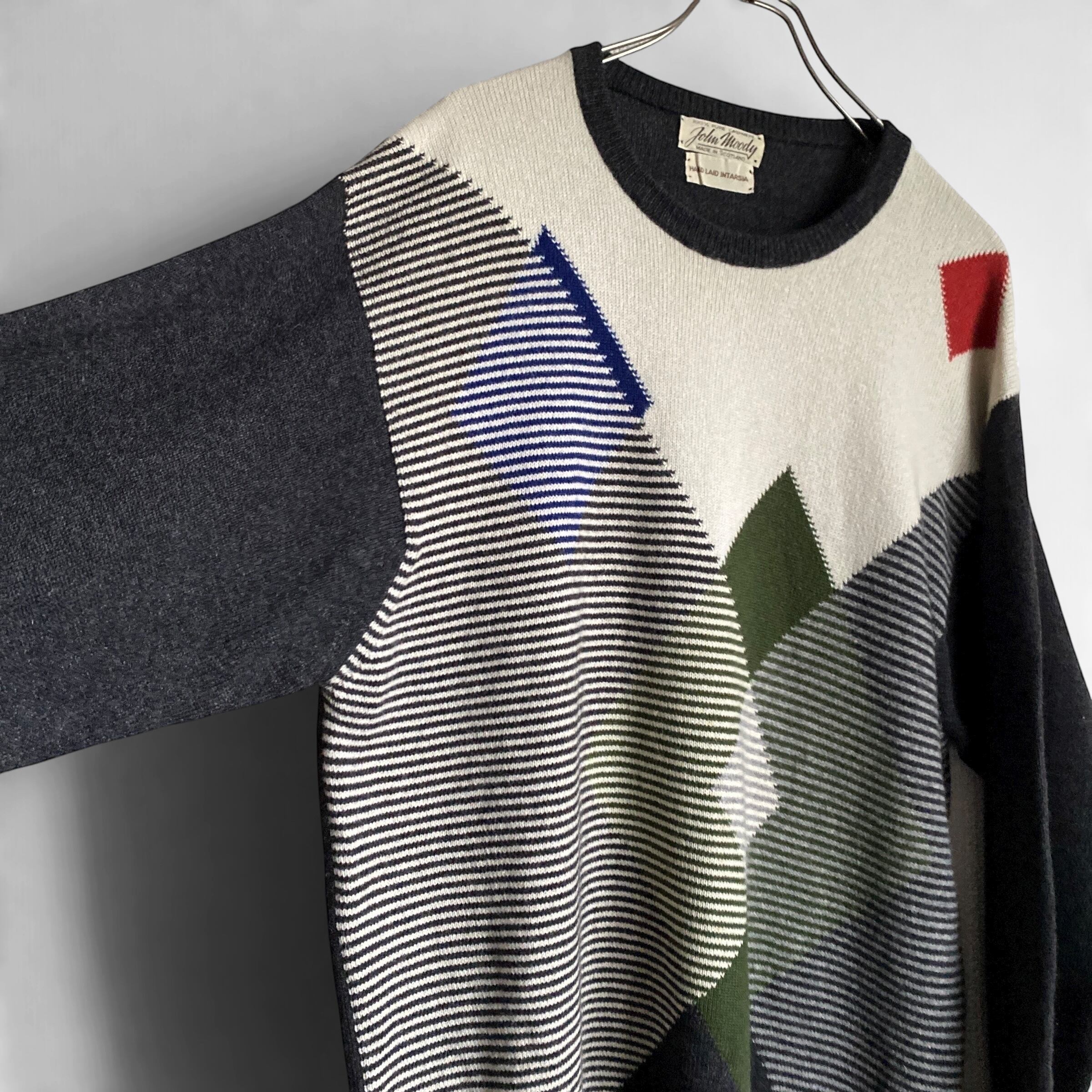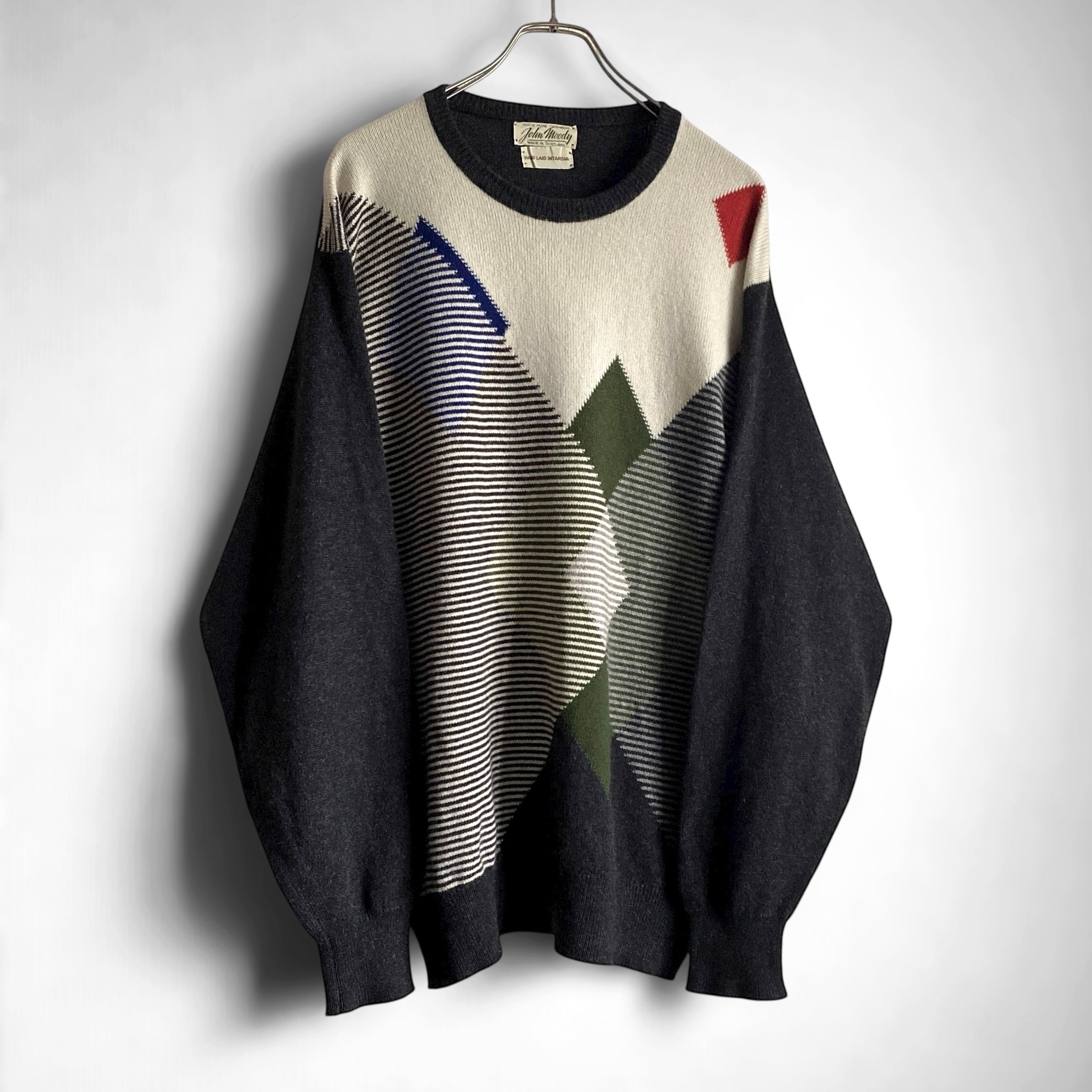 この手の物は一歩間違えると「おじいちゃんのゴルフニット」になりますが、こちらはモダンでアートな雰囲気を感じます。