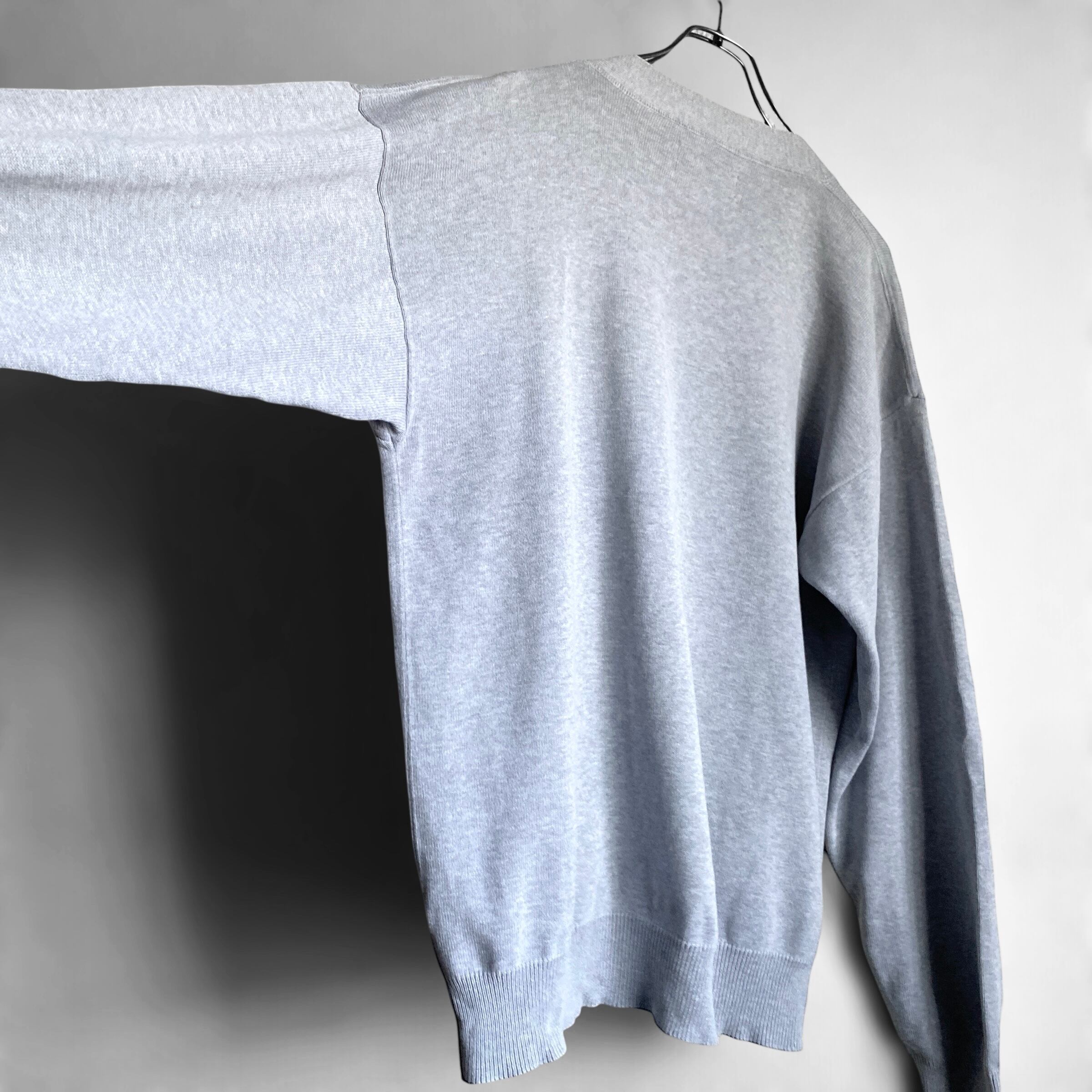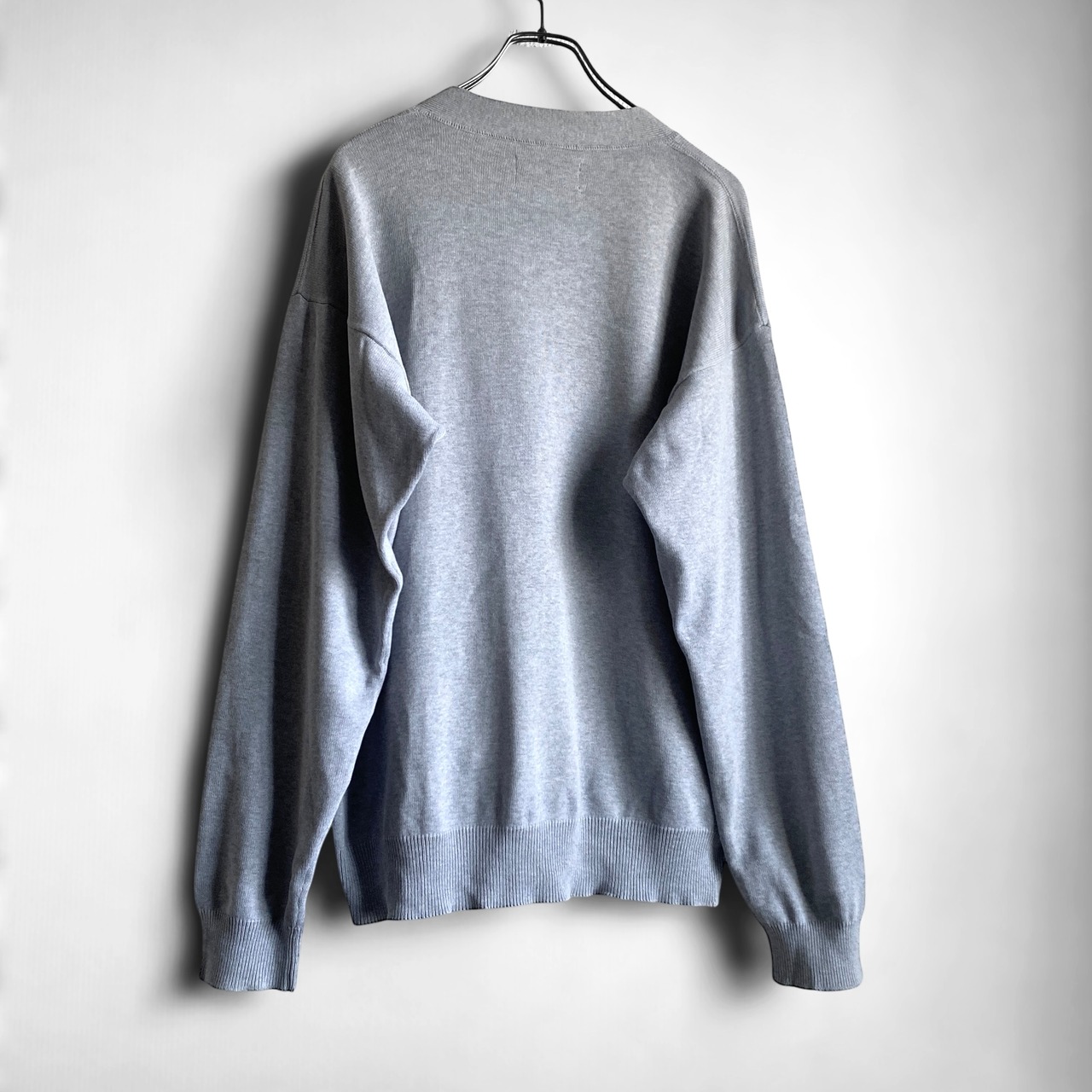 程よく肉厚で目の詰まったコットンニットに、80年代らしいローゴージでゆったりとしたボックスシルエットが非常に格好良い一着。
