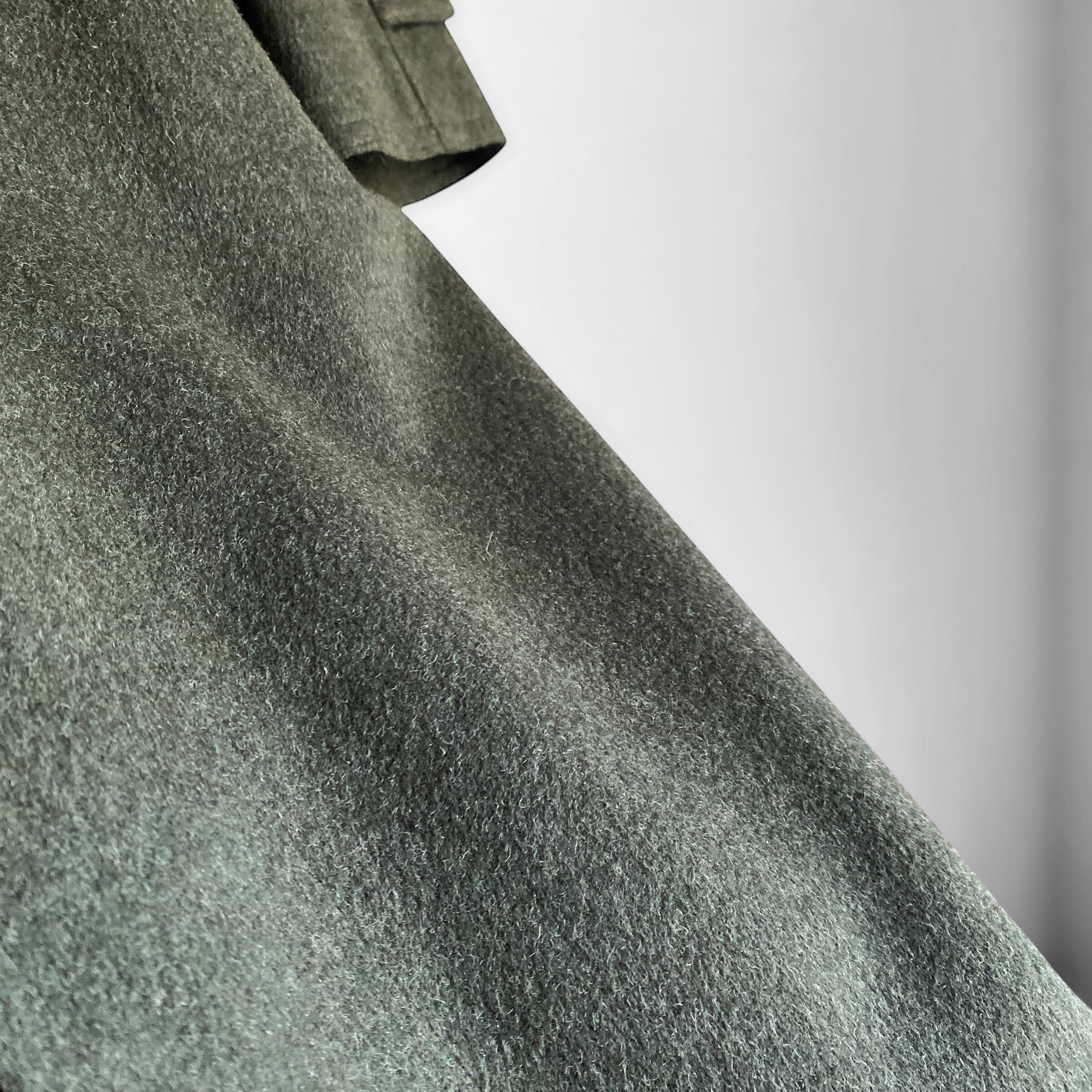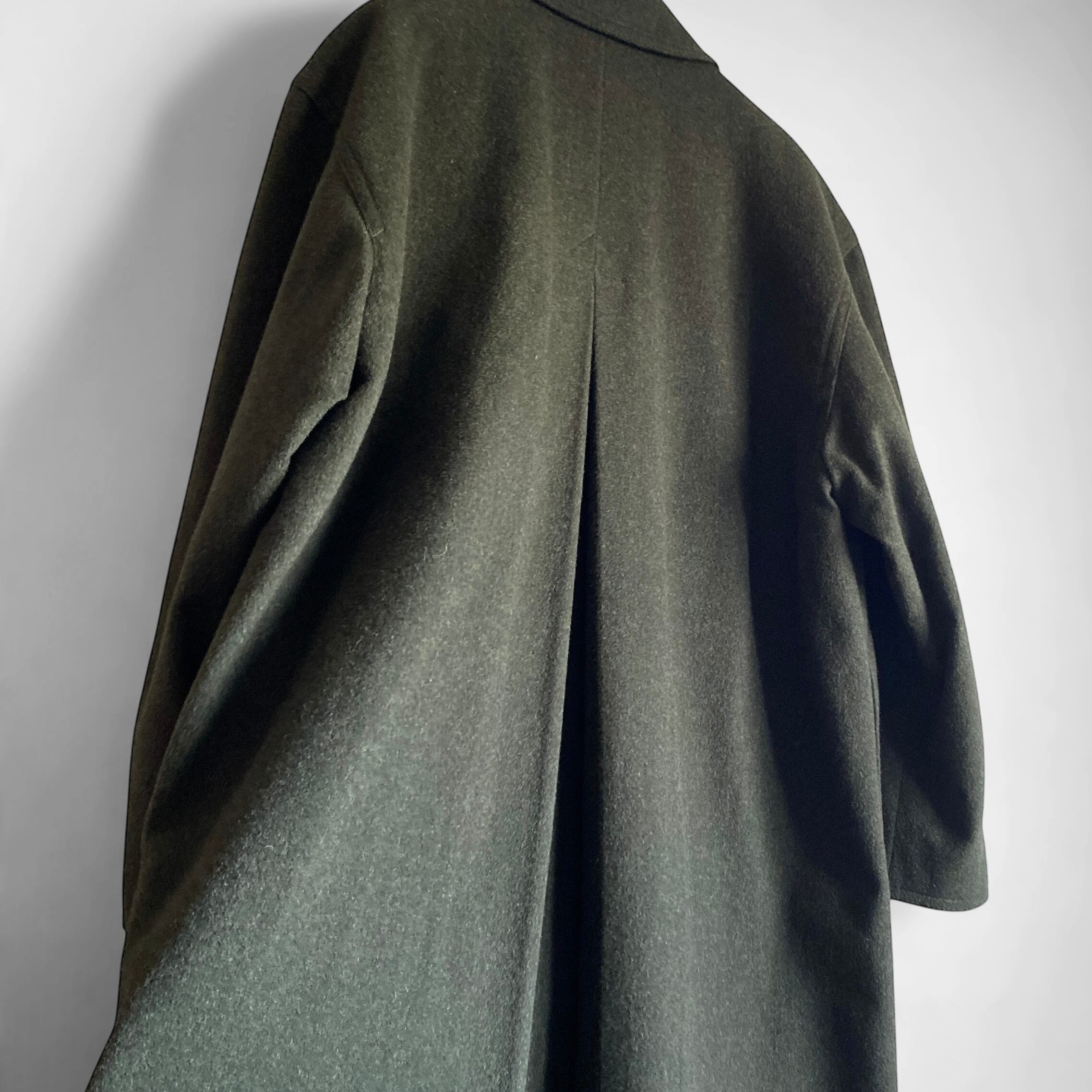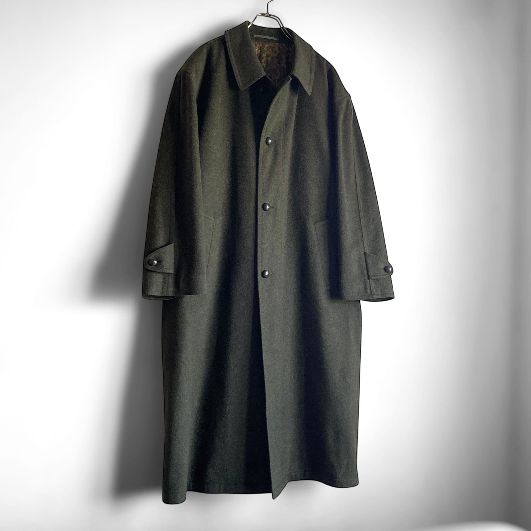 ローデンクロスでは特に有名な「HIMALAYA」の、やや毛足の長いウール×アルパカ生地に、上品なローデングリーンの色目、それからなんと言っても、この手のコートでは珍しい、ドロップショルダーのオーバーサイズシルエットが大変素晴らしい一着。
