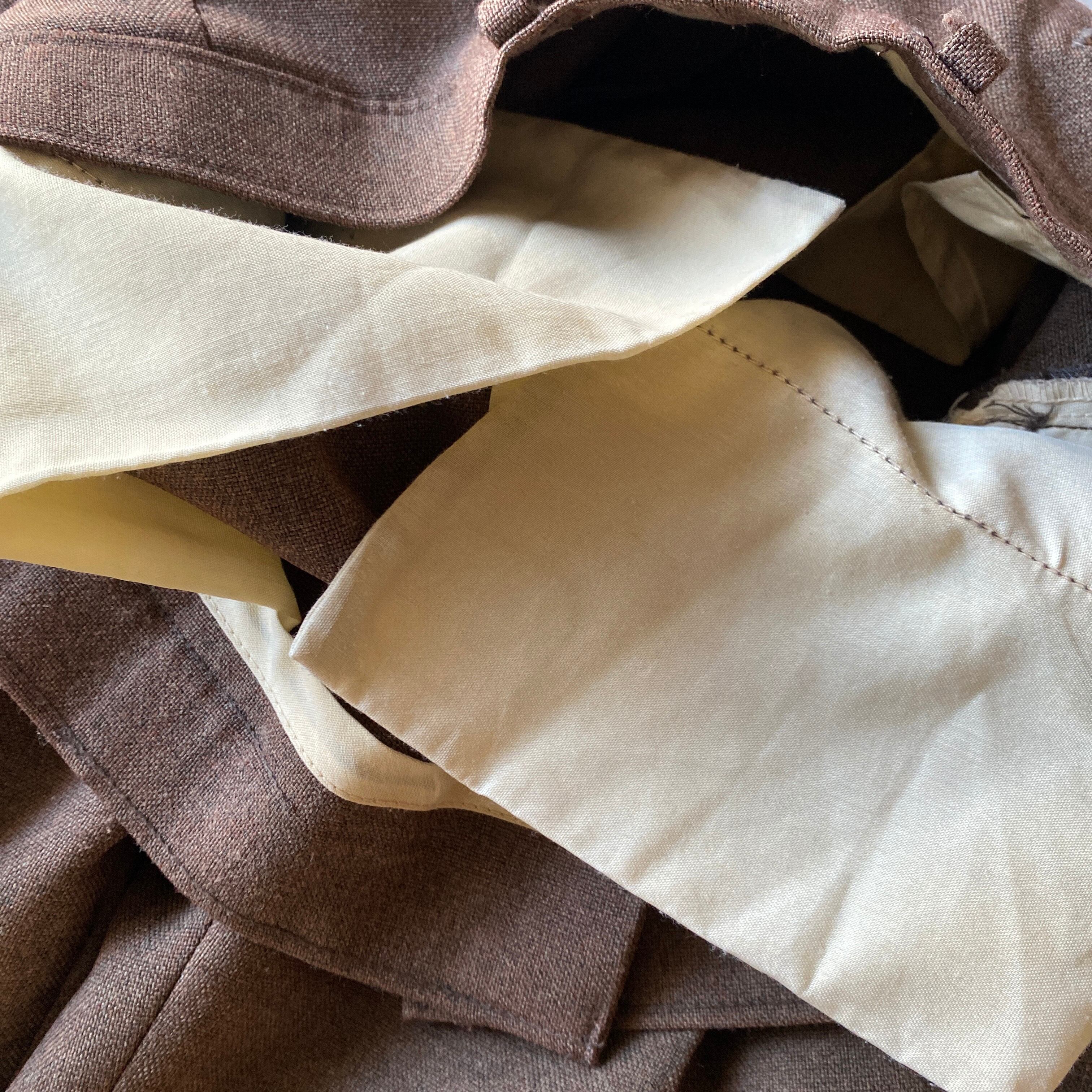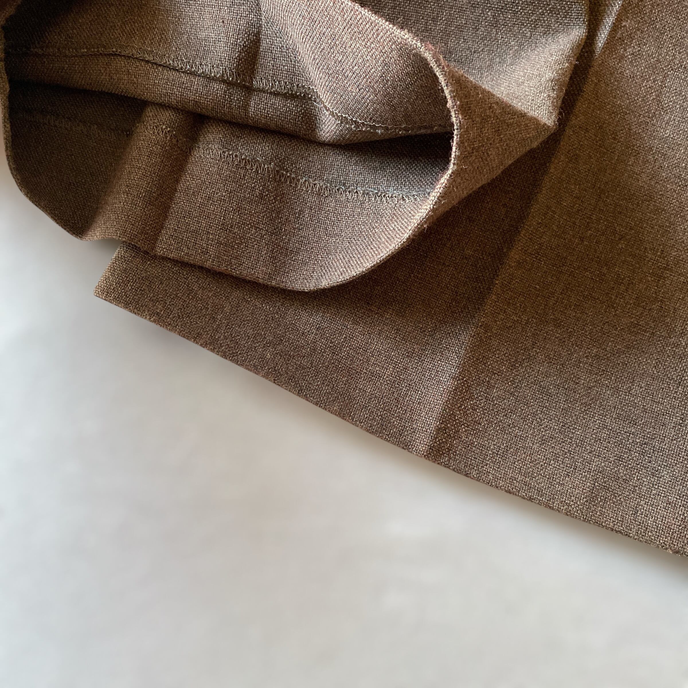 混ざりけのある秋らしい上品なヘザーグレーグレーに、平織りでハリコシのあるサラッとした生地感、ストンと落ちるセミワイドストレートシルエットが大変素晴らしい一着。