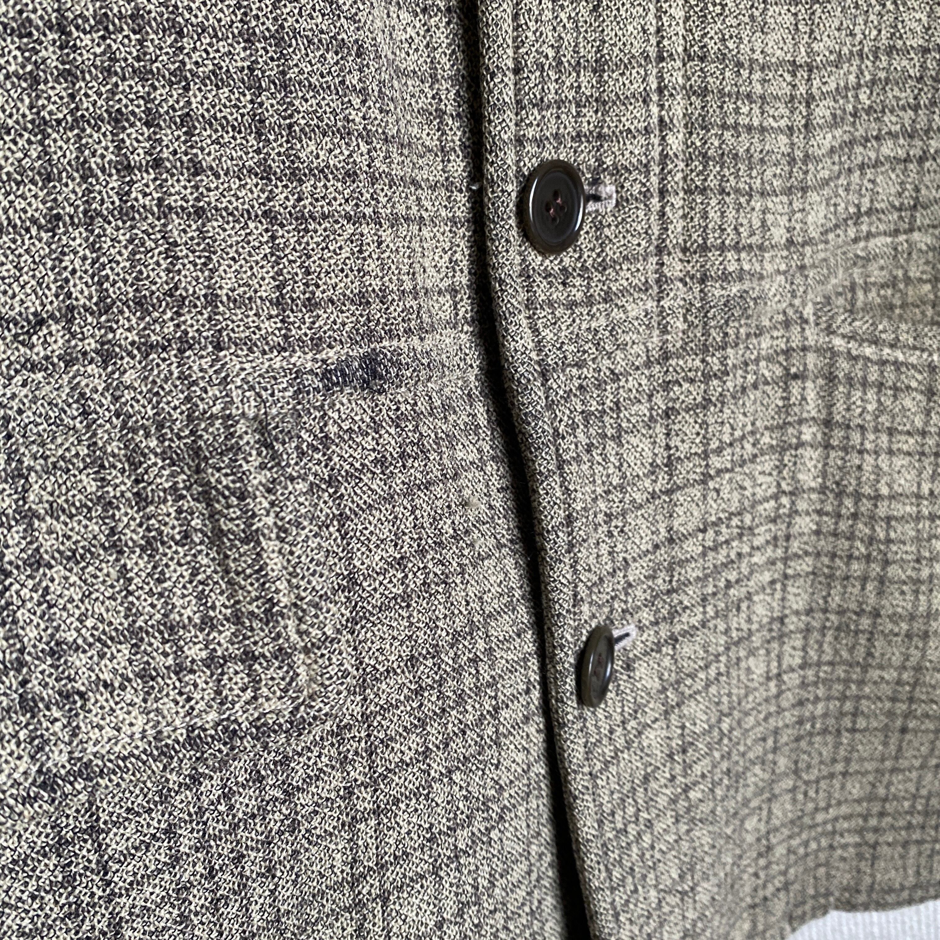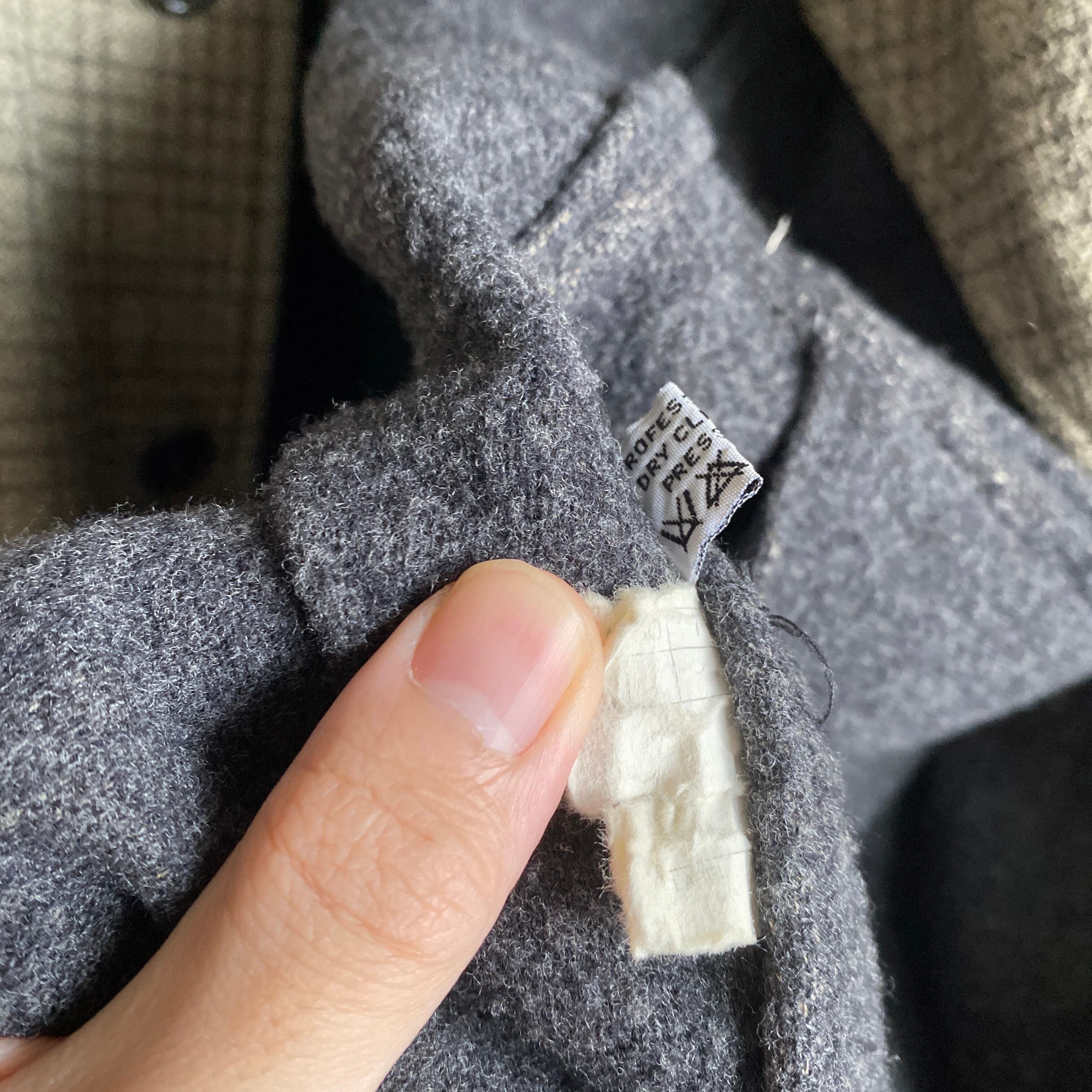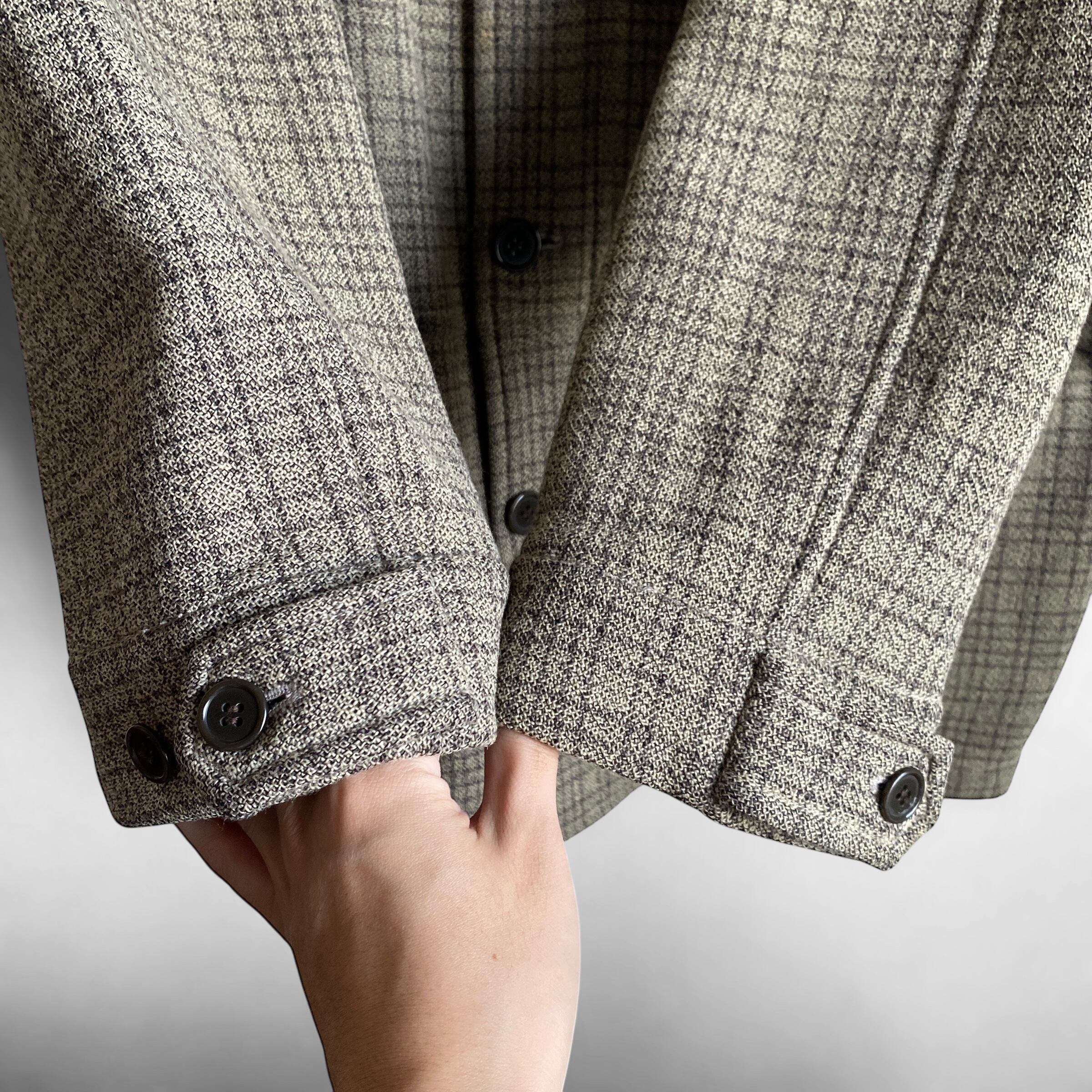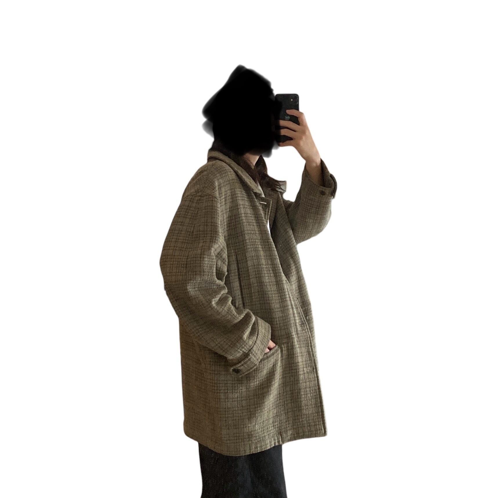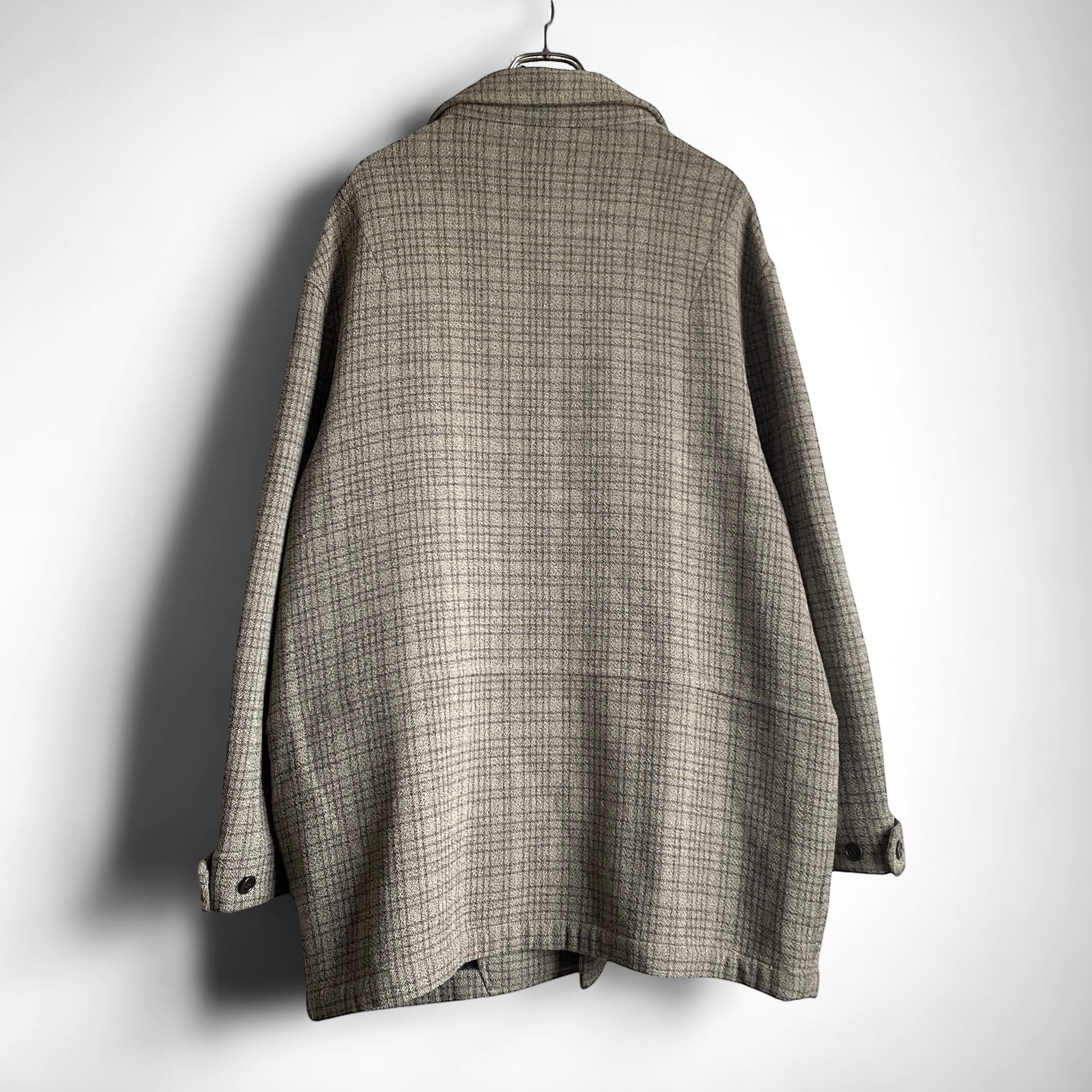 肉厚でモチっとしたニットのような平織りのウール地に、グレー系ベースで枯れた雰囲気の綺麗な格子柄、ゆったりと丸みのあるオーバーサイズシルエットが非常に格好良い一着。