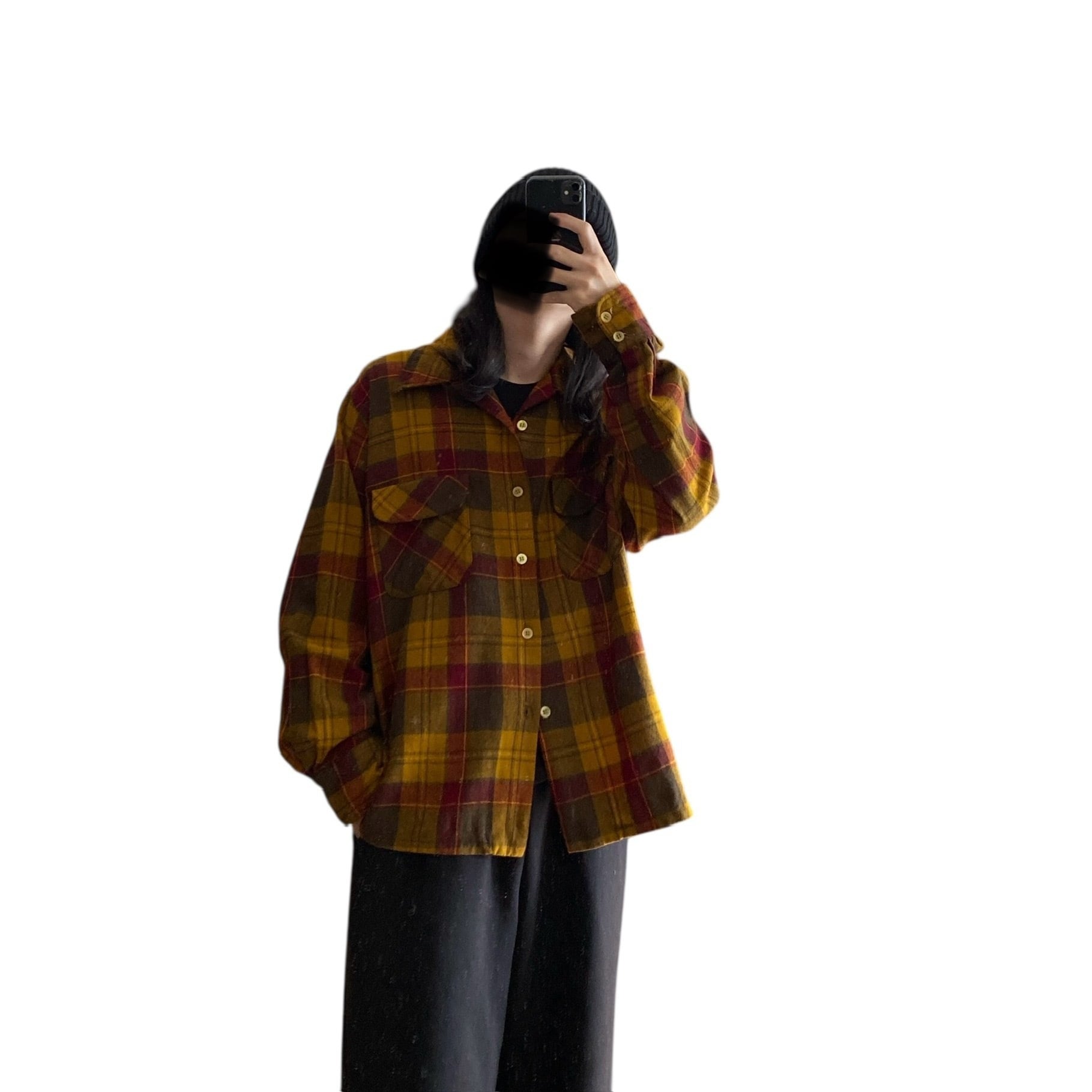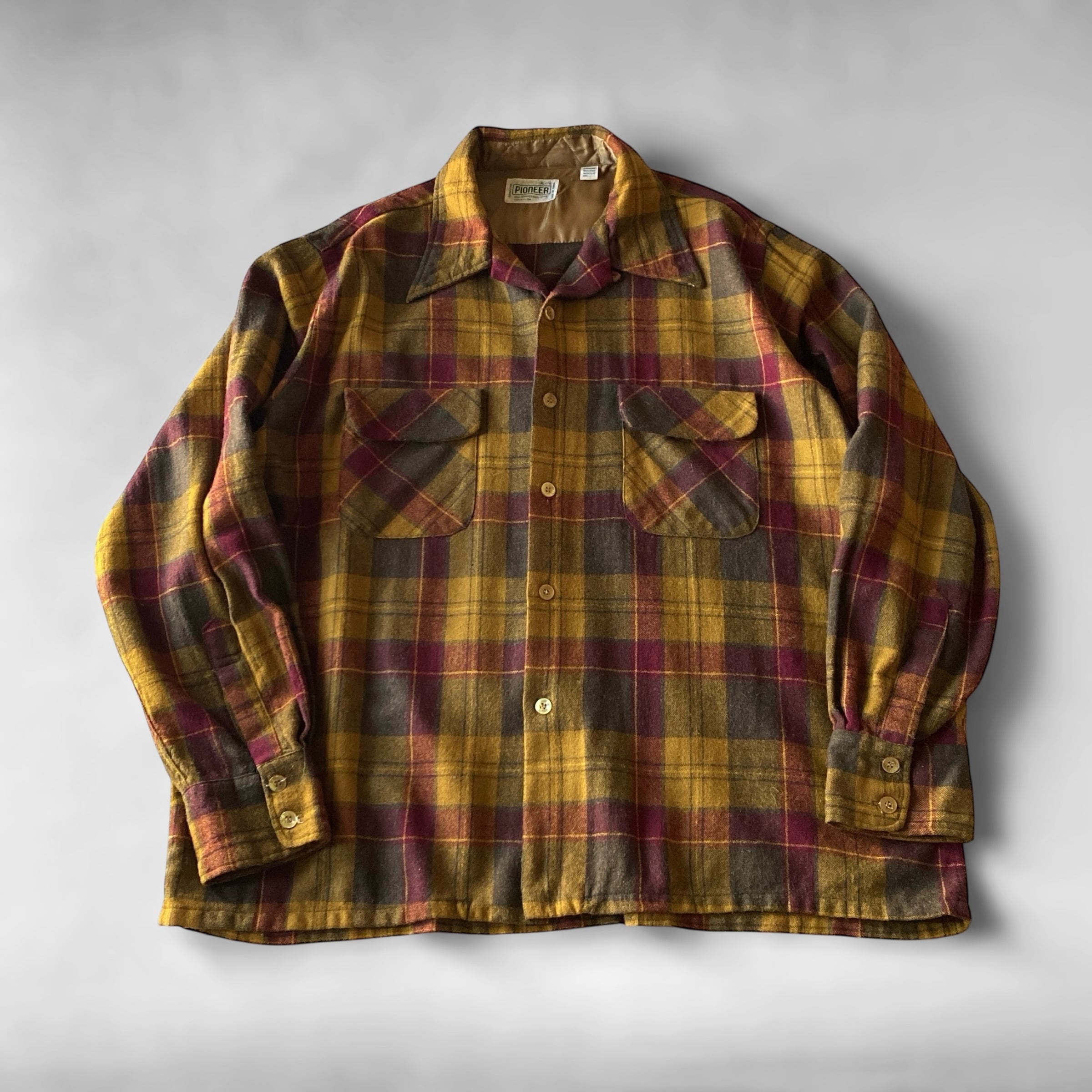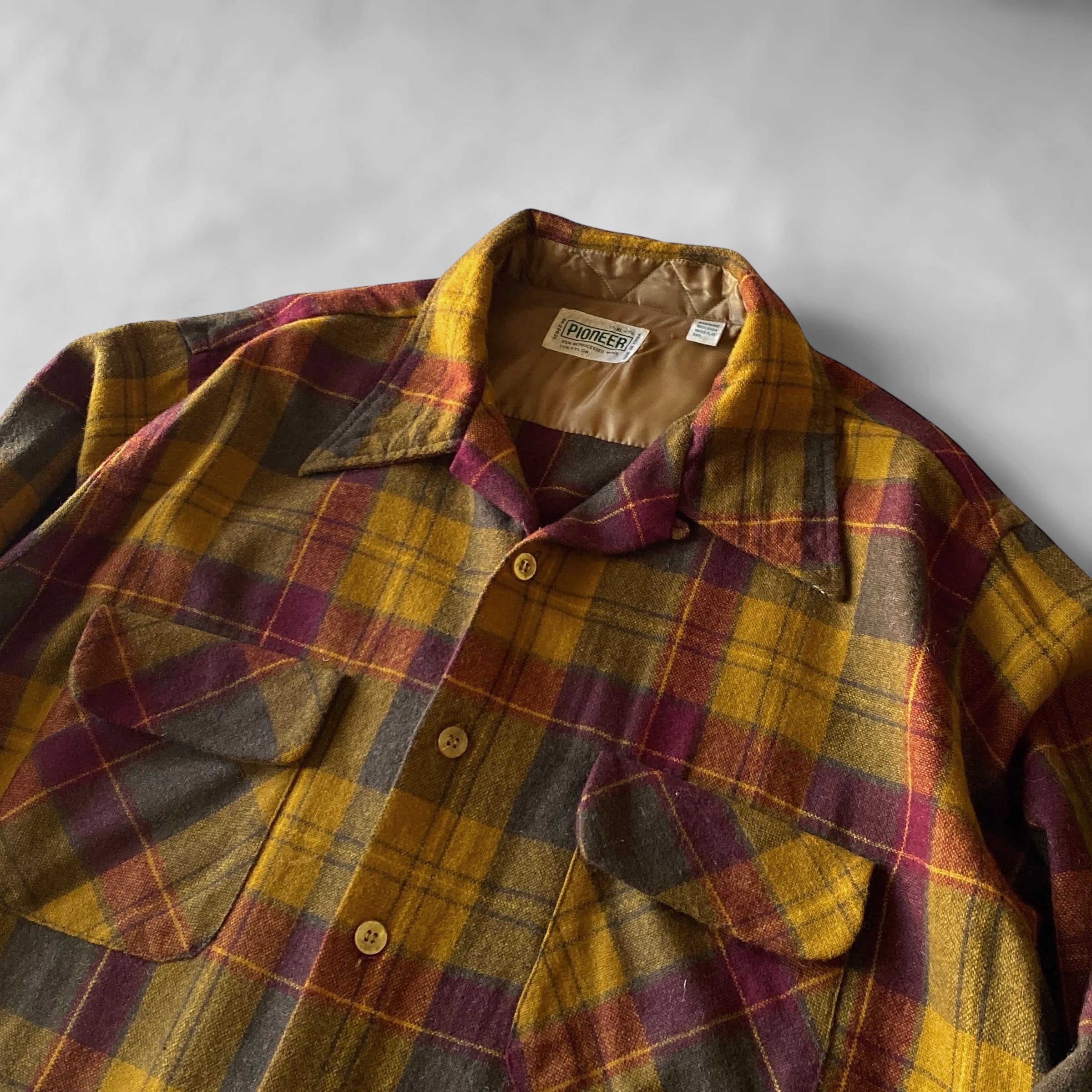 70s〜 Pioneer plaid wool open collar shirt