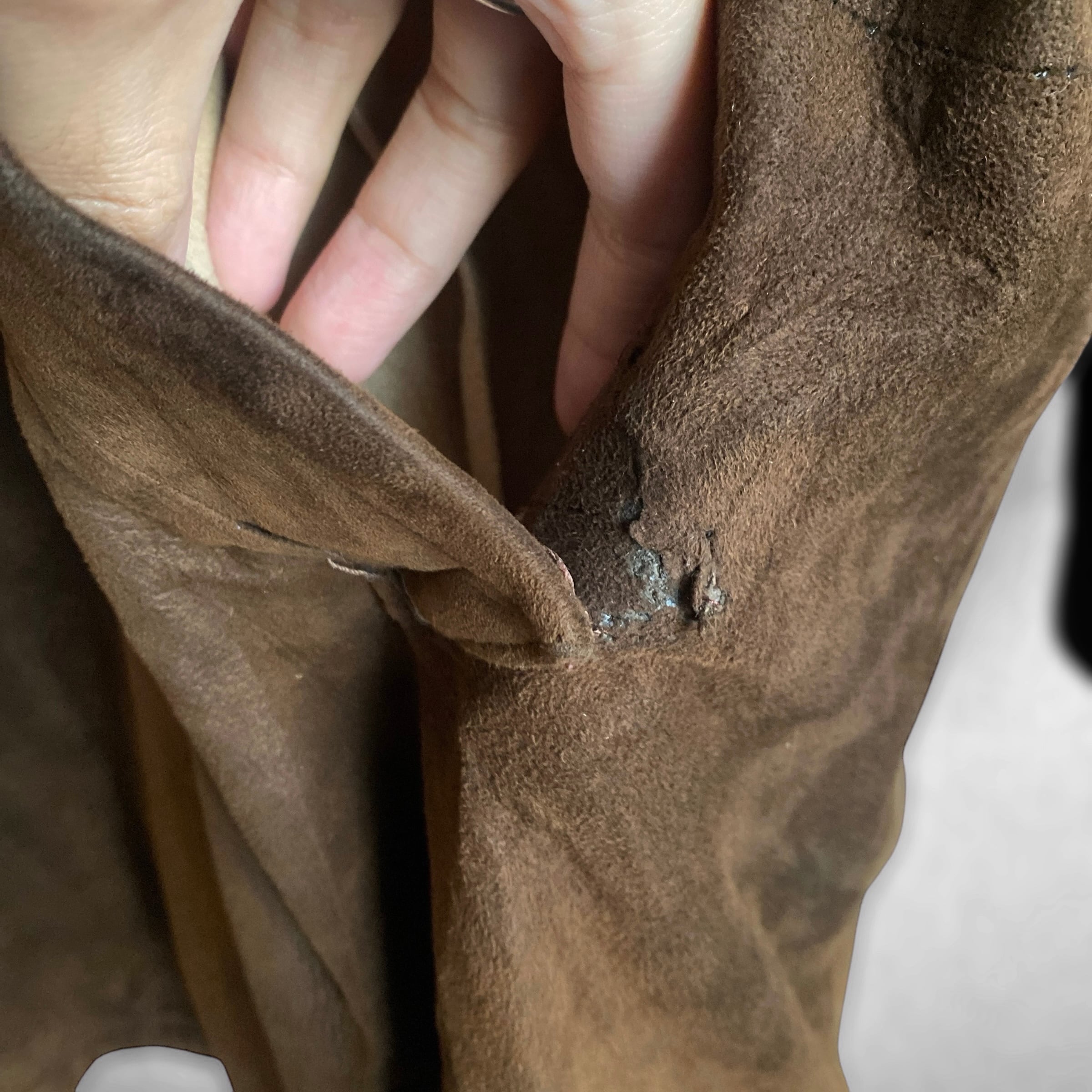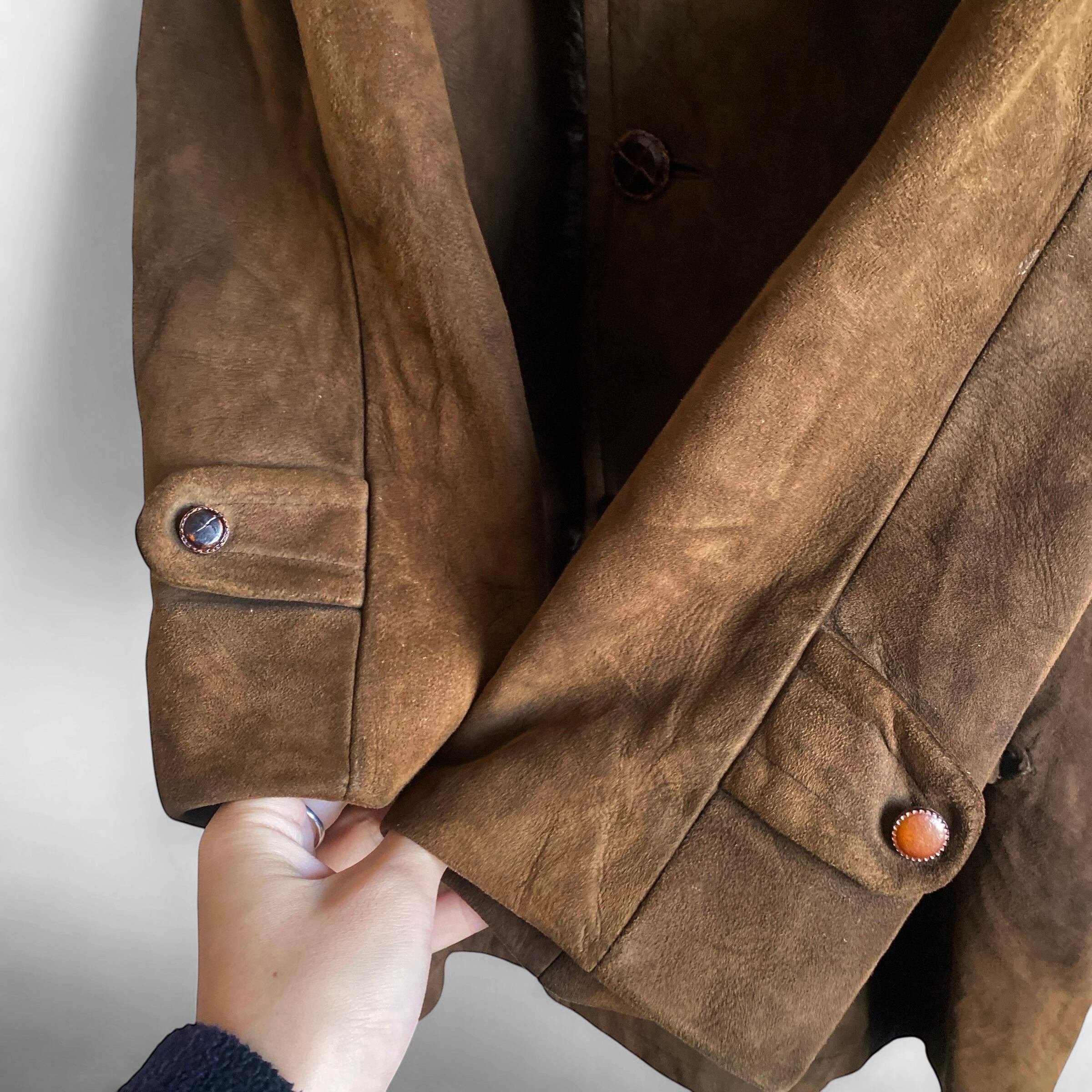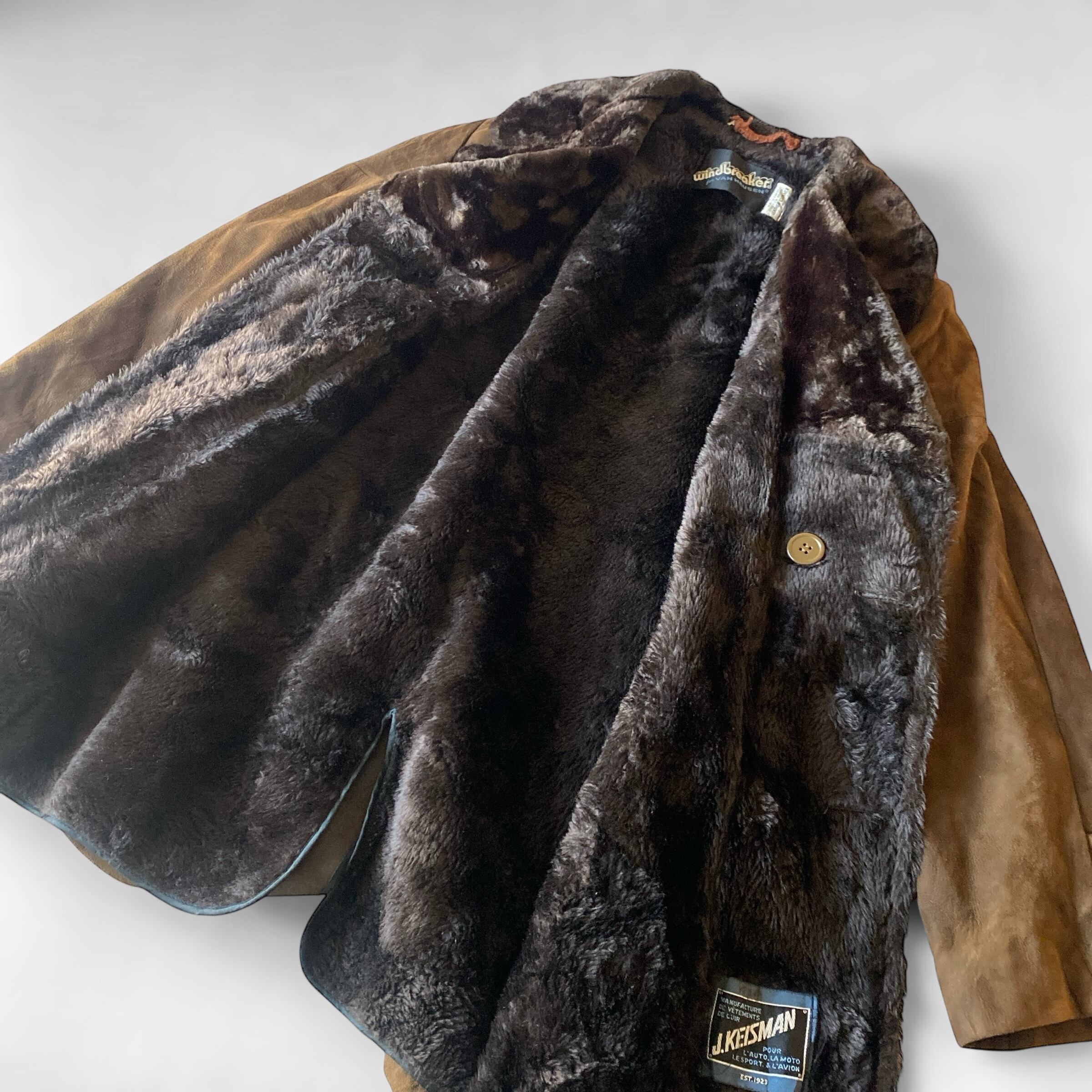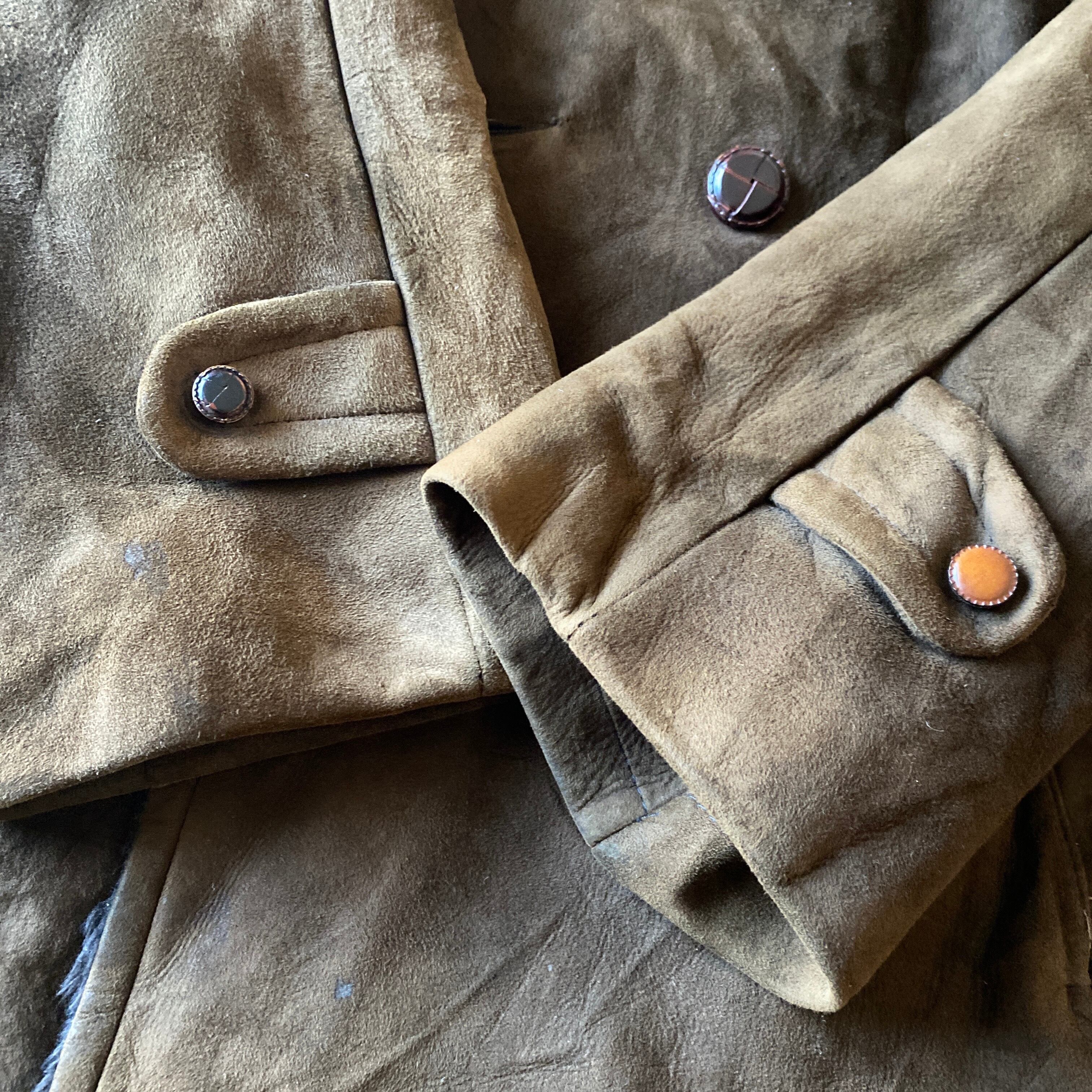 基本的にコーデュロイやウール生地の物を多く見かけますが、こちらは非常に珍しいリアルスウェードレザー(ボアは化繊だと思われます)が使用された一着。