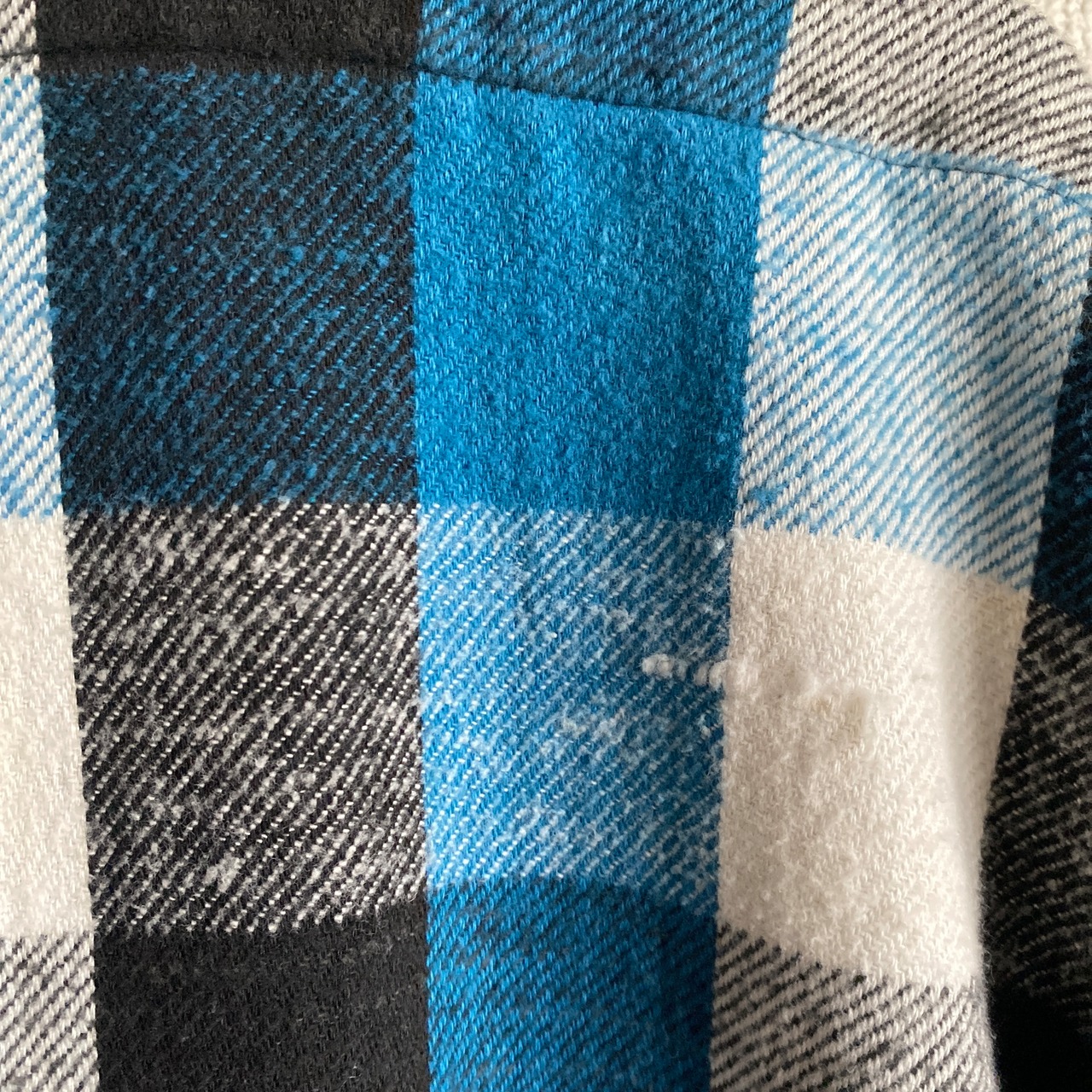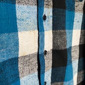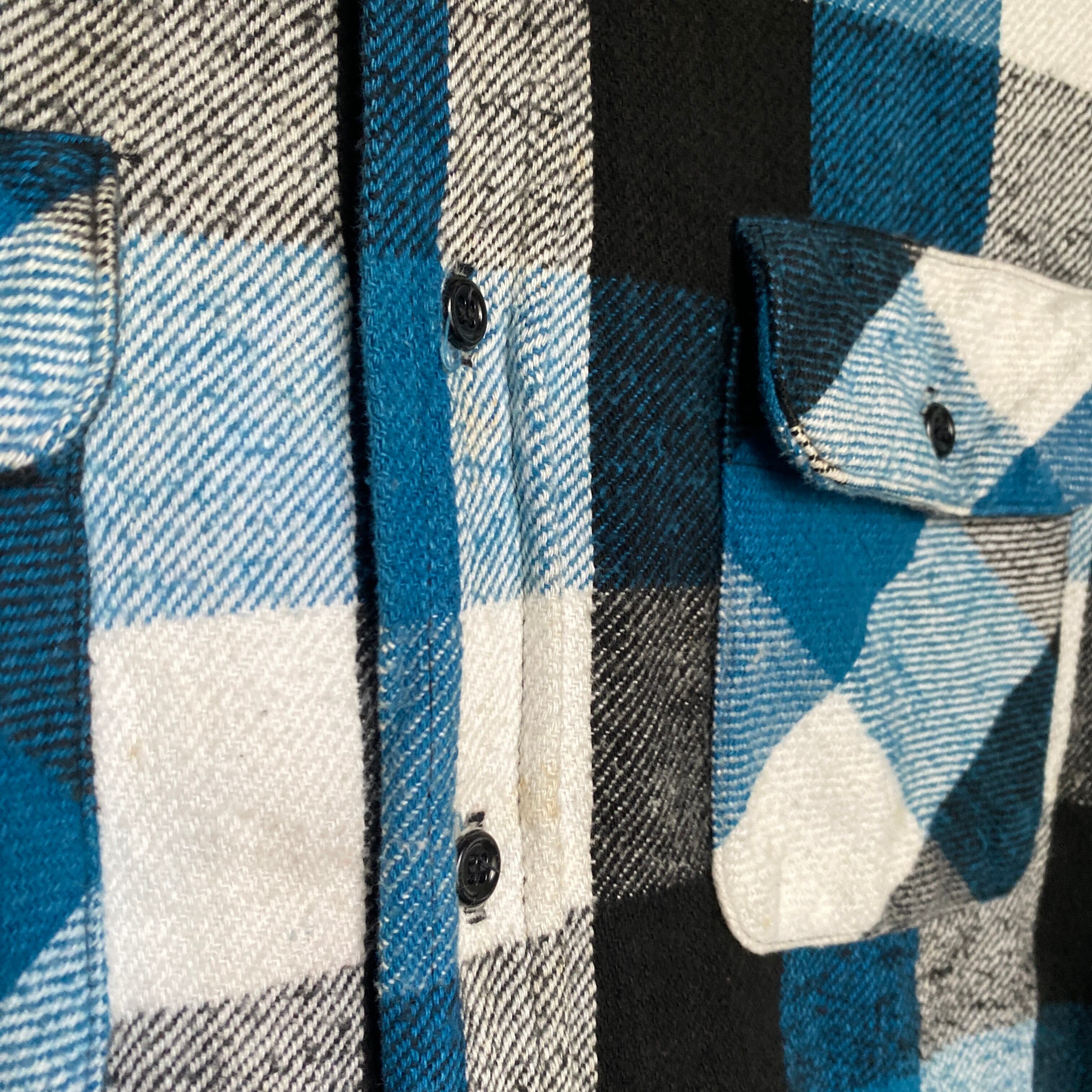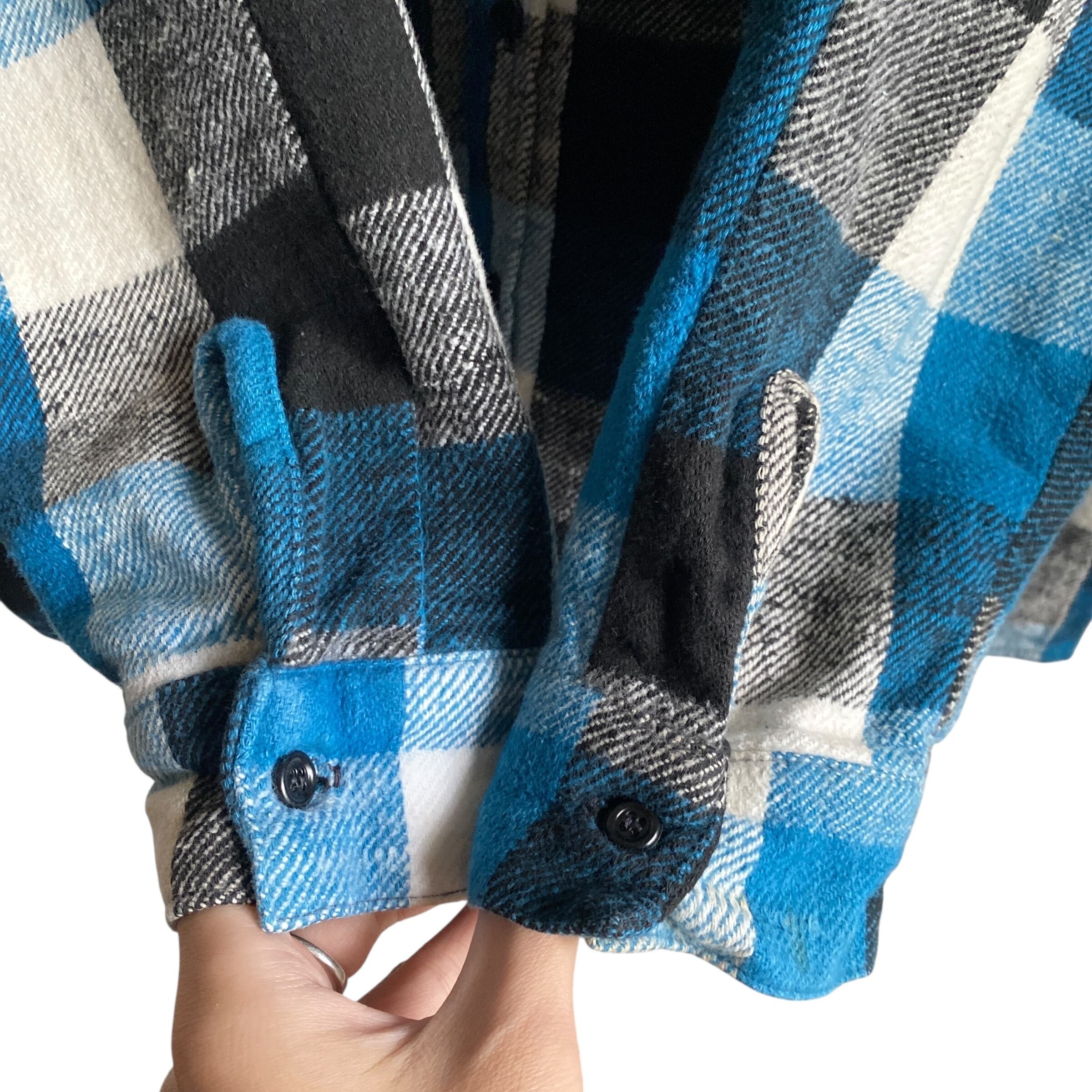 肉厚でモチっとしたコットンネル素材に、ブラック×ブルー×ホワイトの好配色なチェックパターンが非常に格好良い一着。