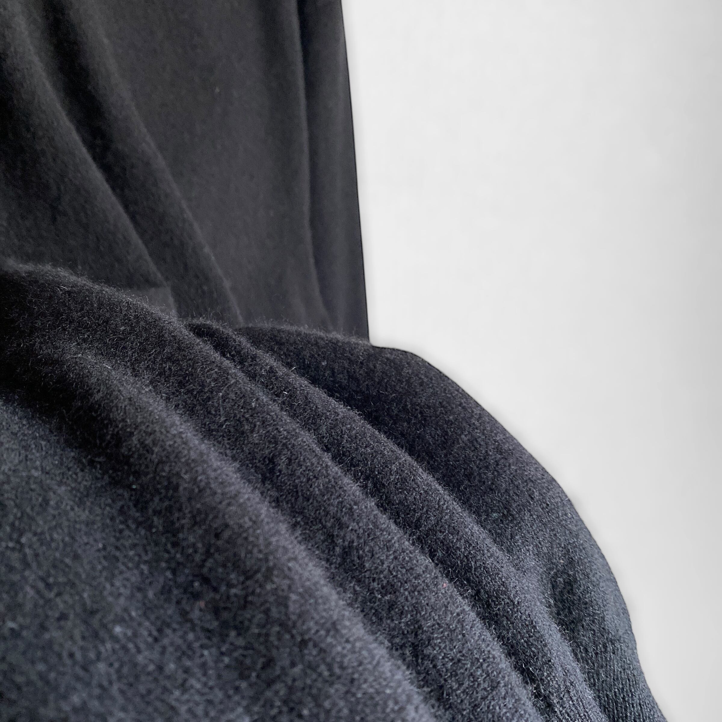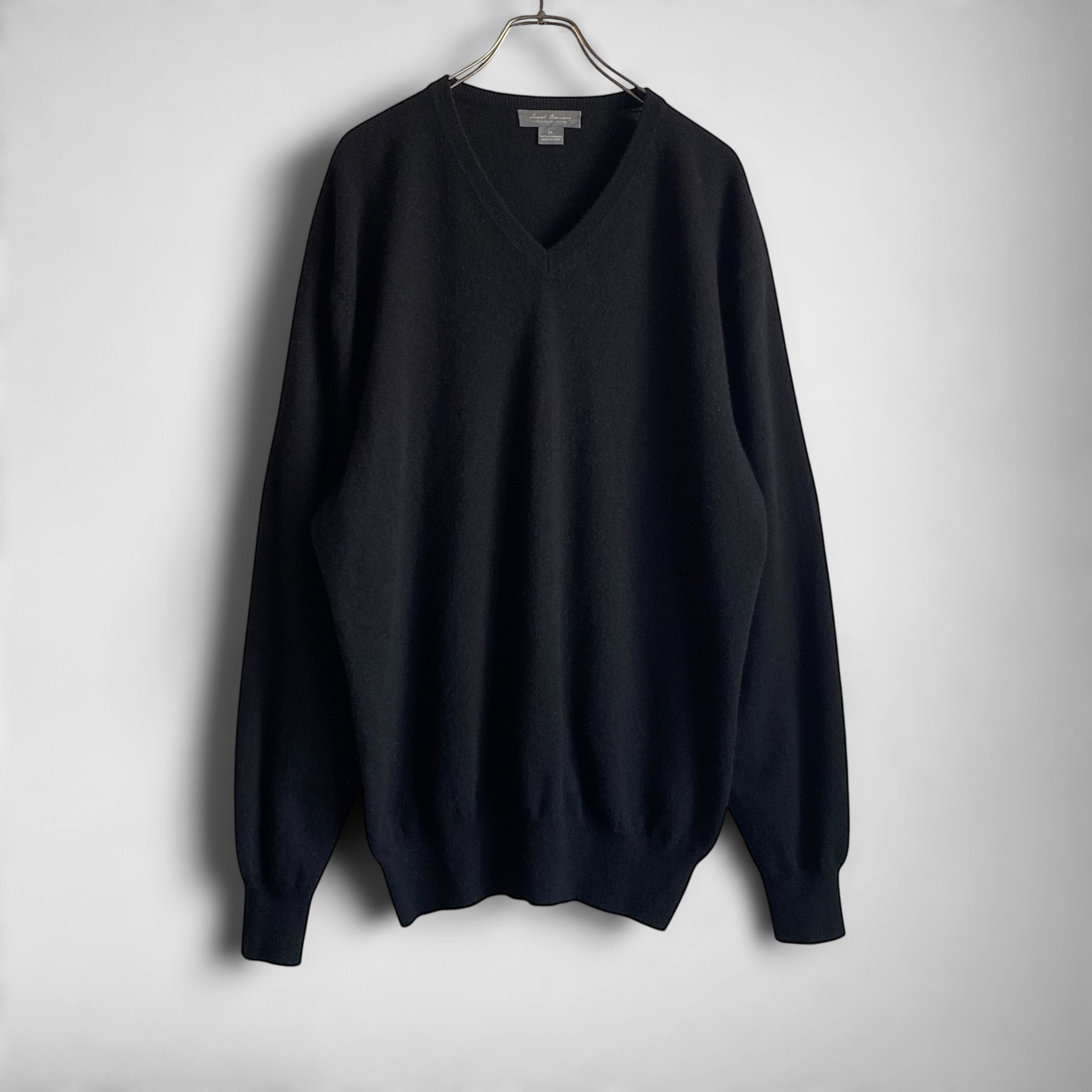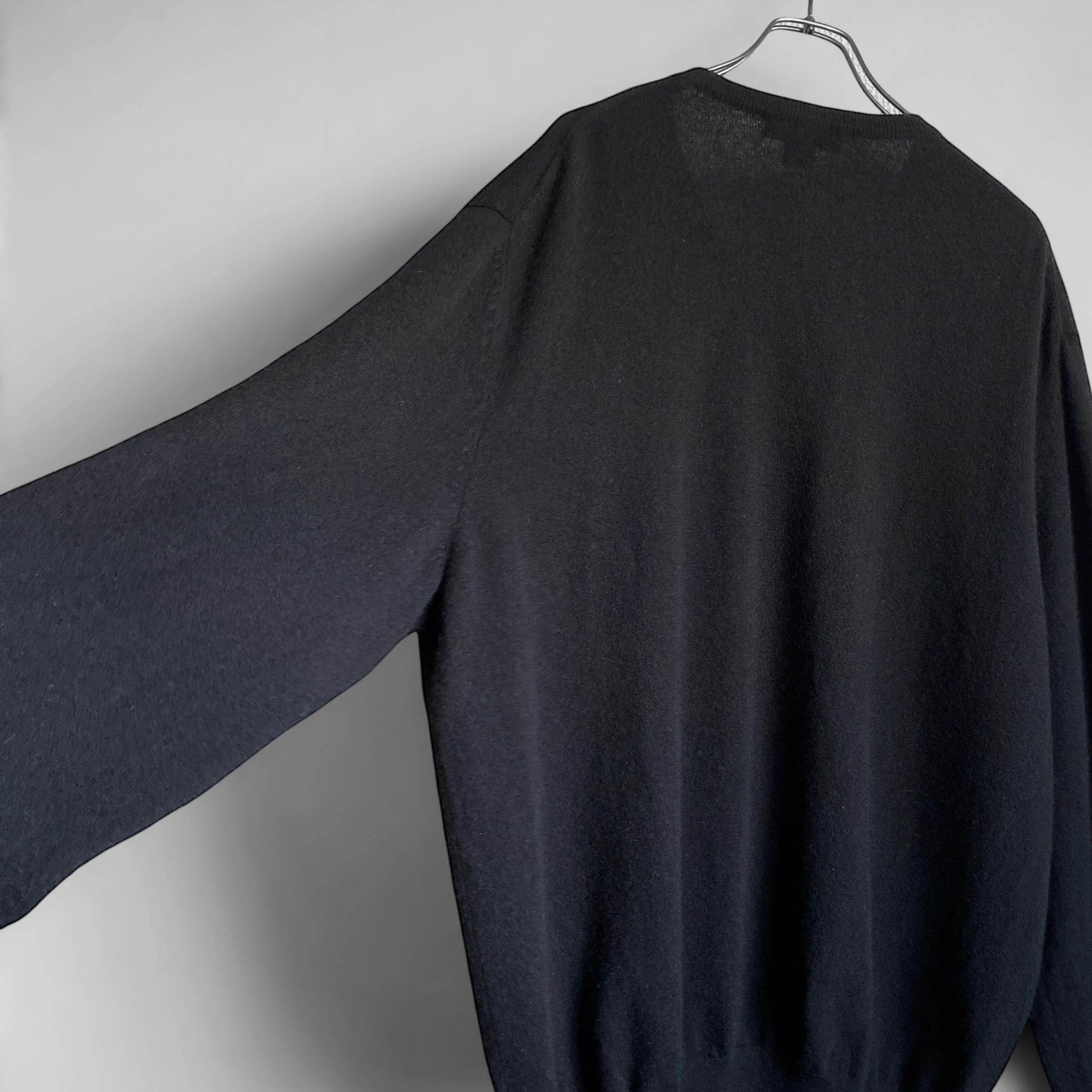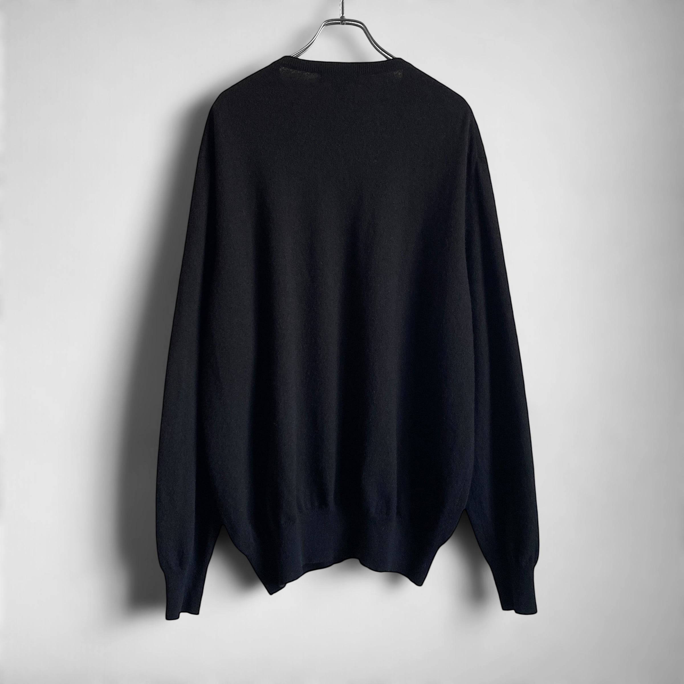 程よく肉厚でふわっと柔らかいカシミヤニットに、希少なブラックカラー、ゆったりとしたシルエットに浅めのVネックデザインが非常に素晴らしい一着。