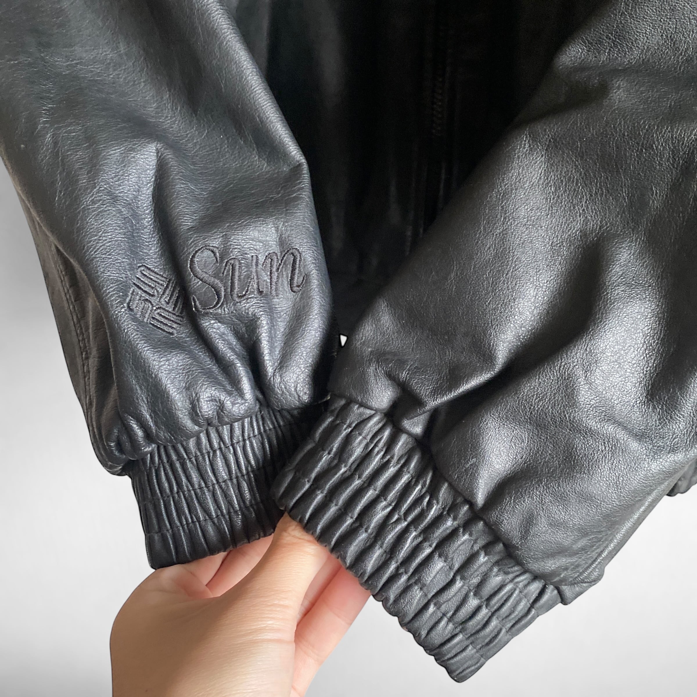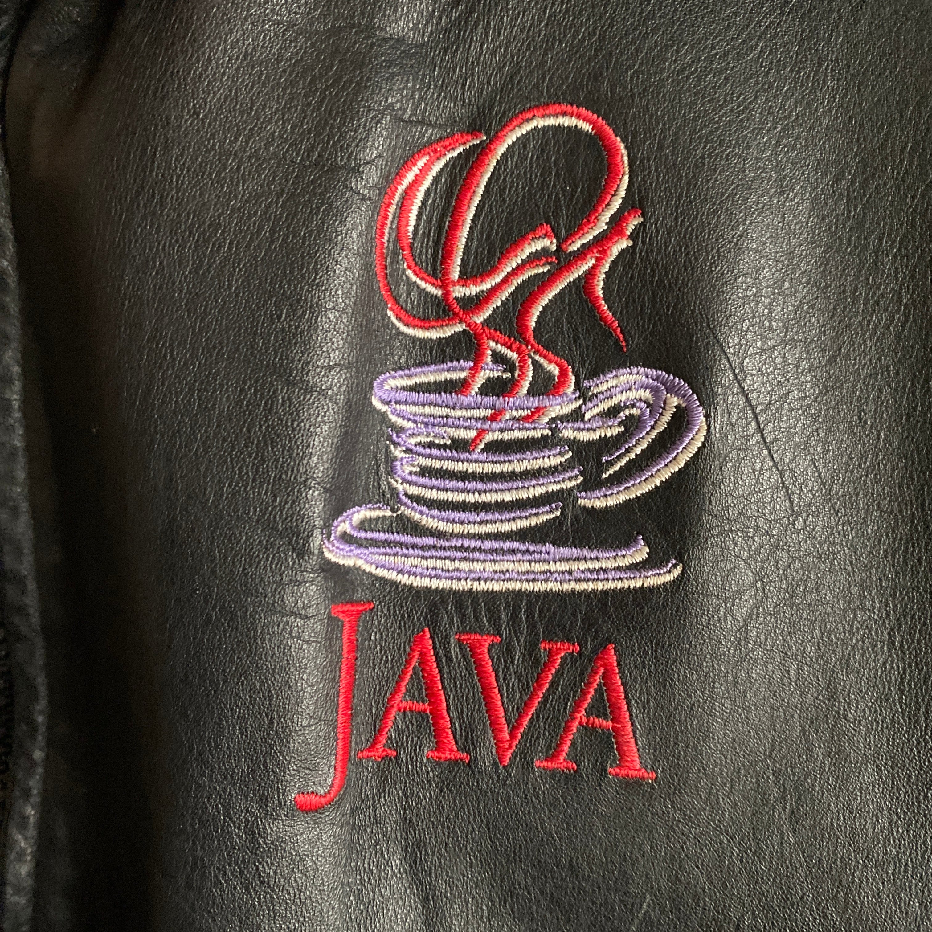 1990年代頃のアメリカ製「Sun Microsystems"JAVA"」刺繍ロゴレザージャケットになります。(1995年〜プログラミング言語JAVAを開発、発表した企業)