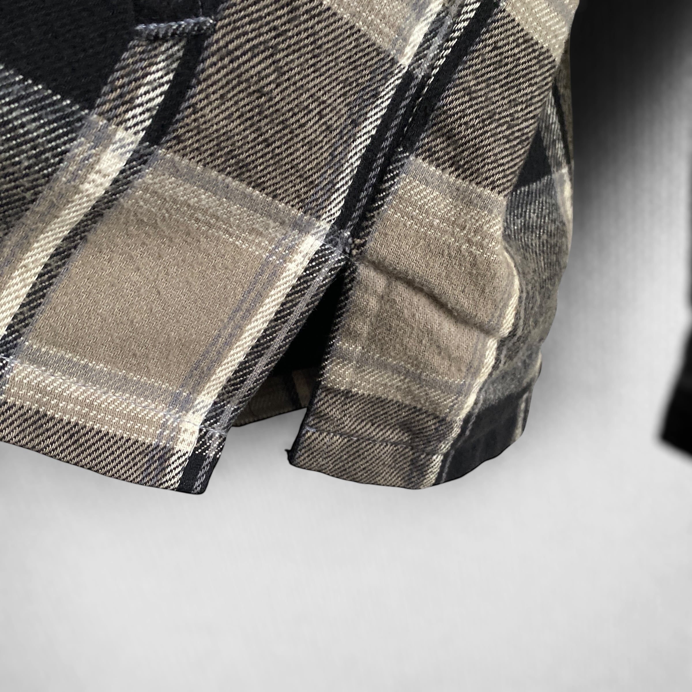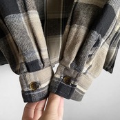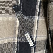 ブラウン系×ブラックの好配色チェックカラーに、風合いの良いコットンヘビーネル、短丈ボックスなシルエットが非常に格好良い一着。