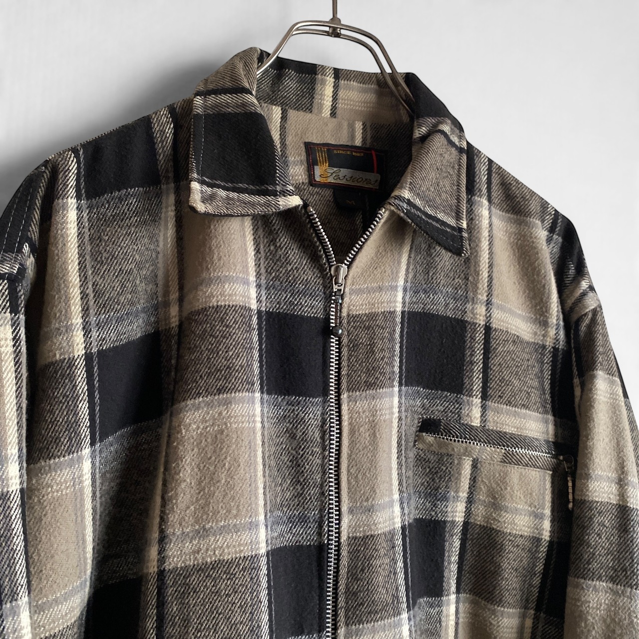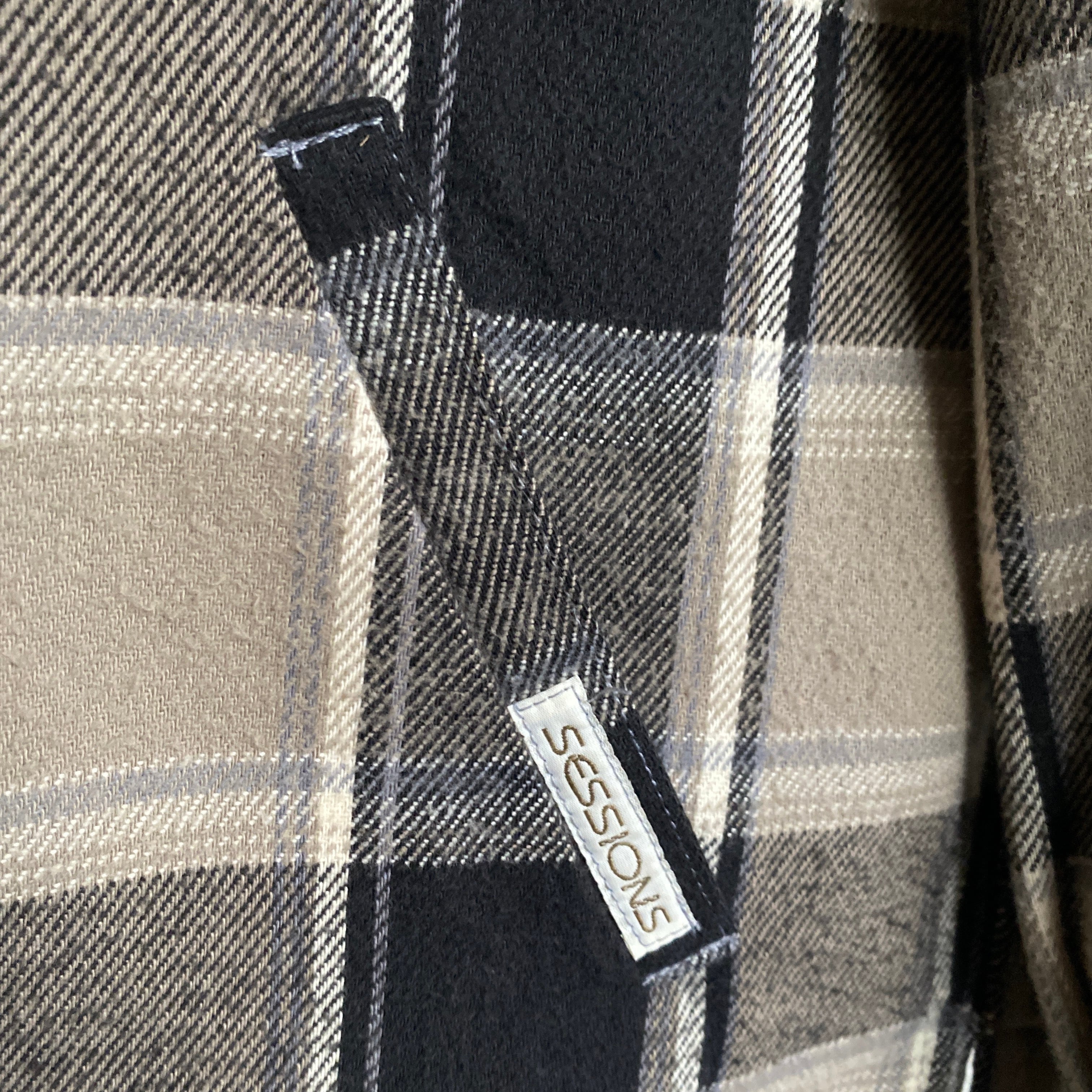 1990年代頃のアメリカ製「セッションズ」コットンヘビーネルジップアップシャツジャケットになります。