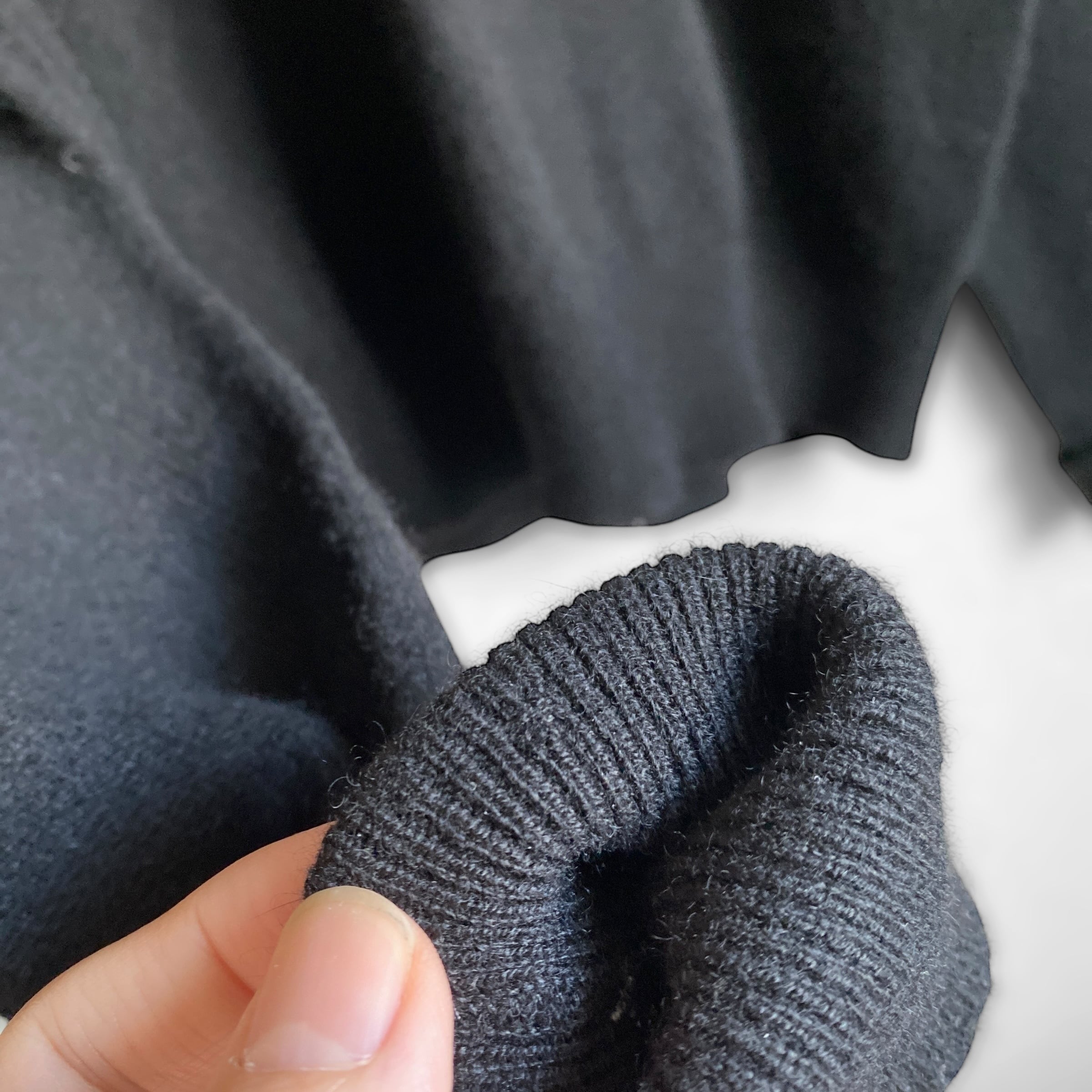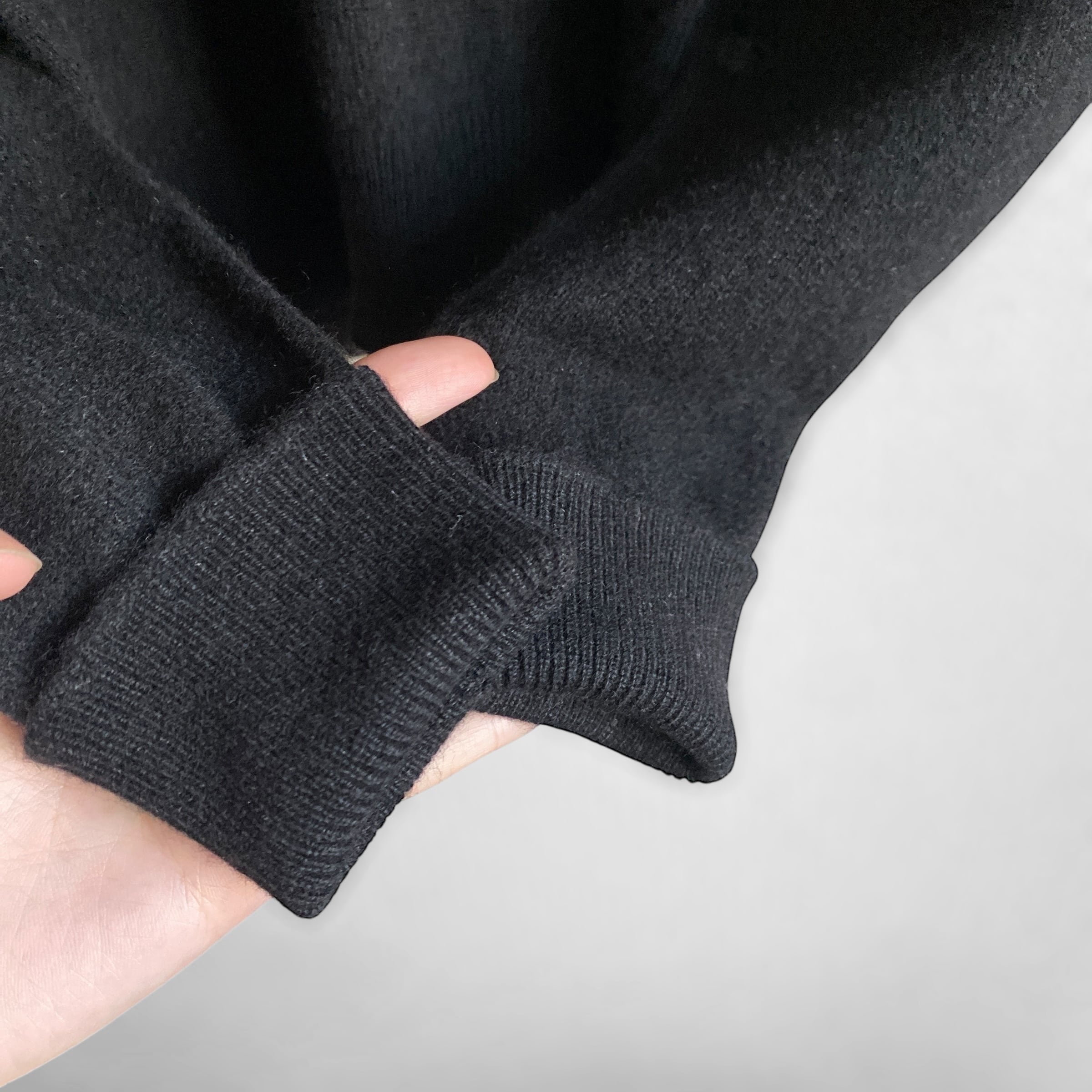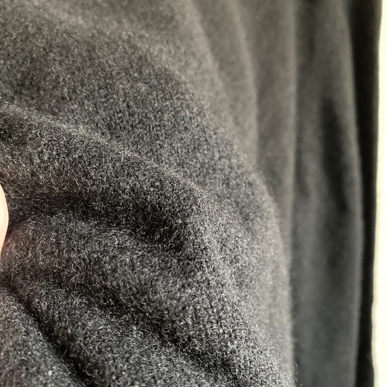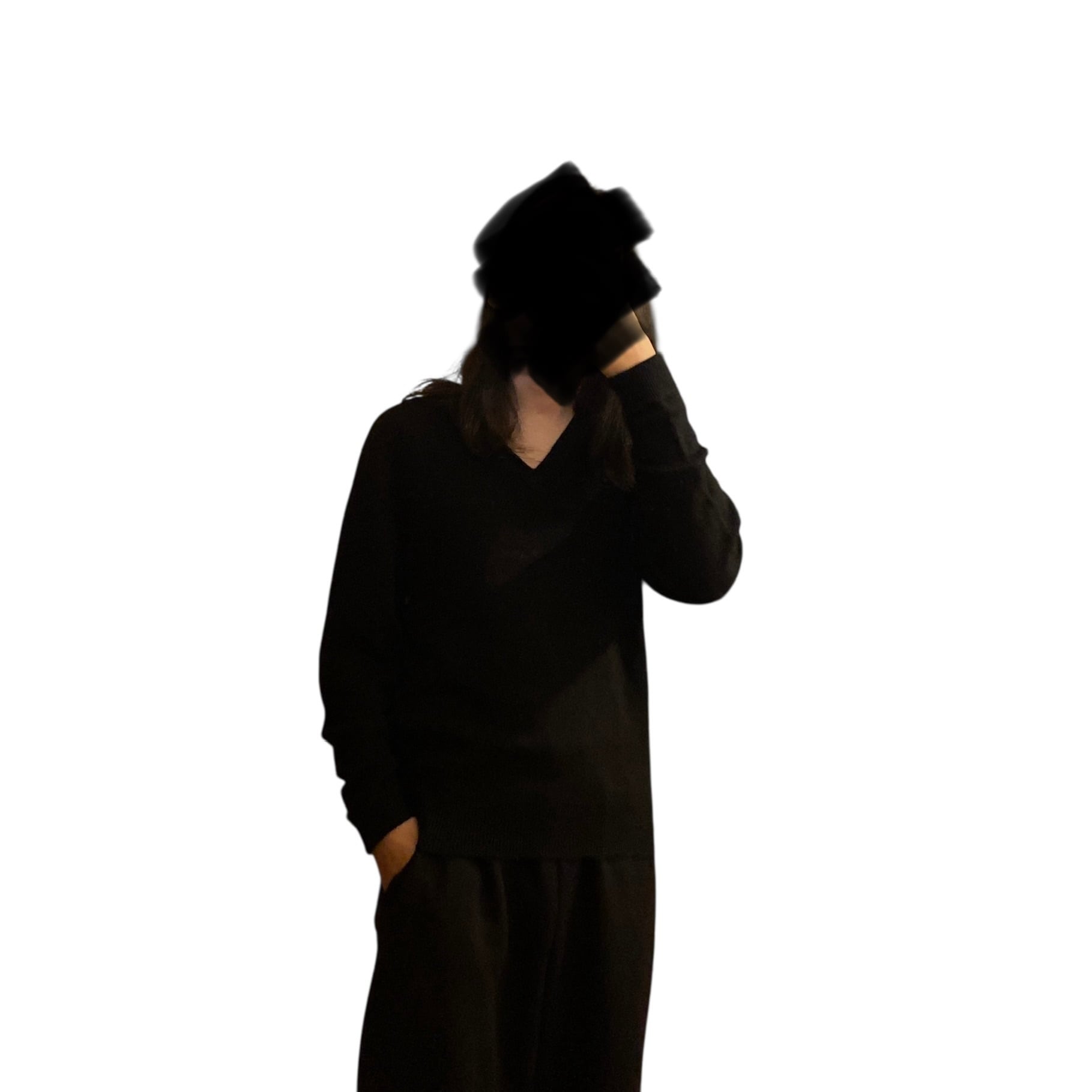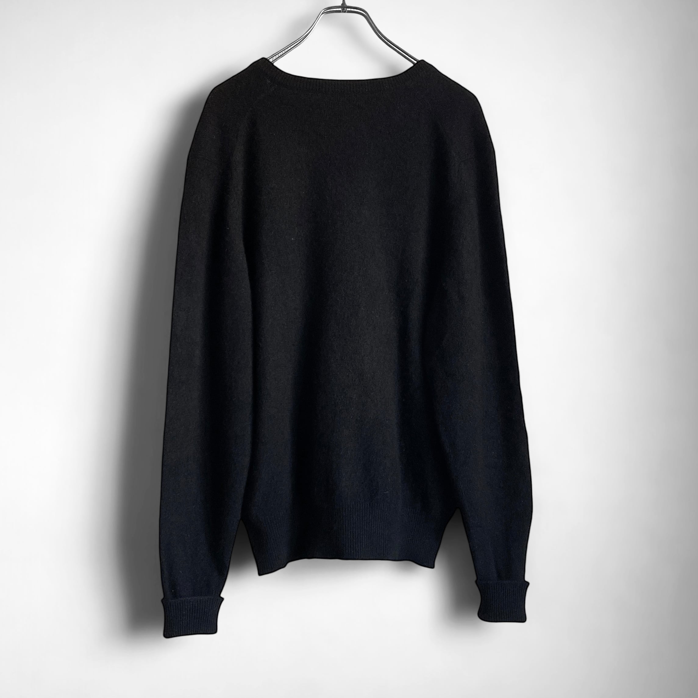 希少なブラックカラーに、肉厚でトロフワな極上のカシミヤ素材、深すぎない良い塩梅のvネックにベーシックなシルエットが大変素晴らしい一着。
