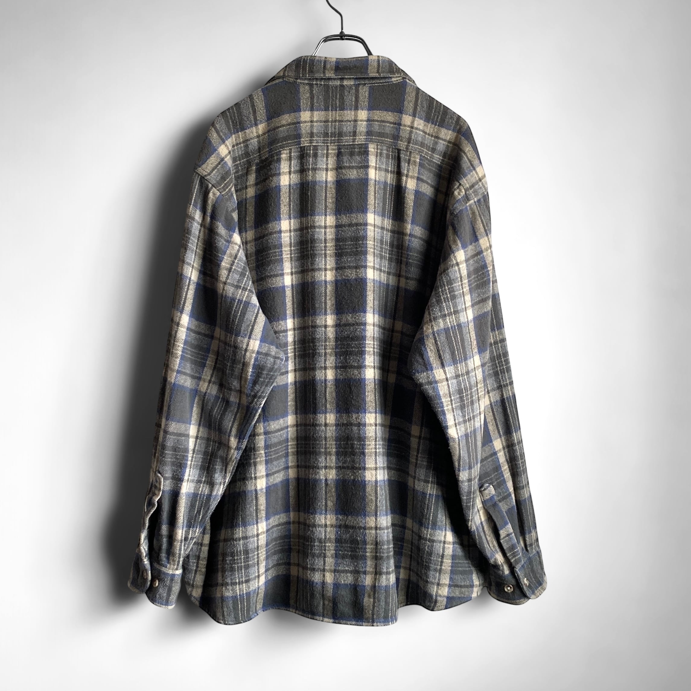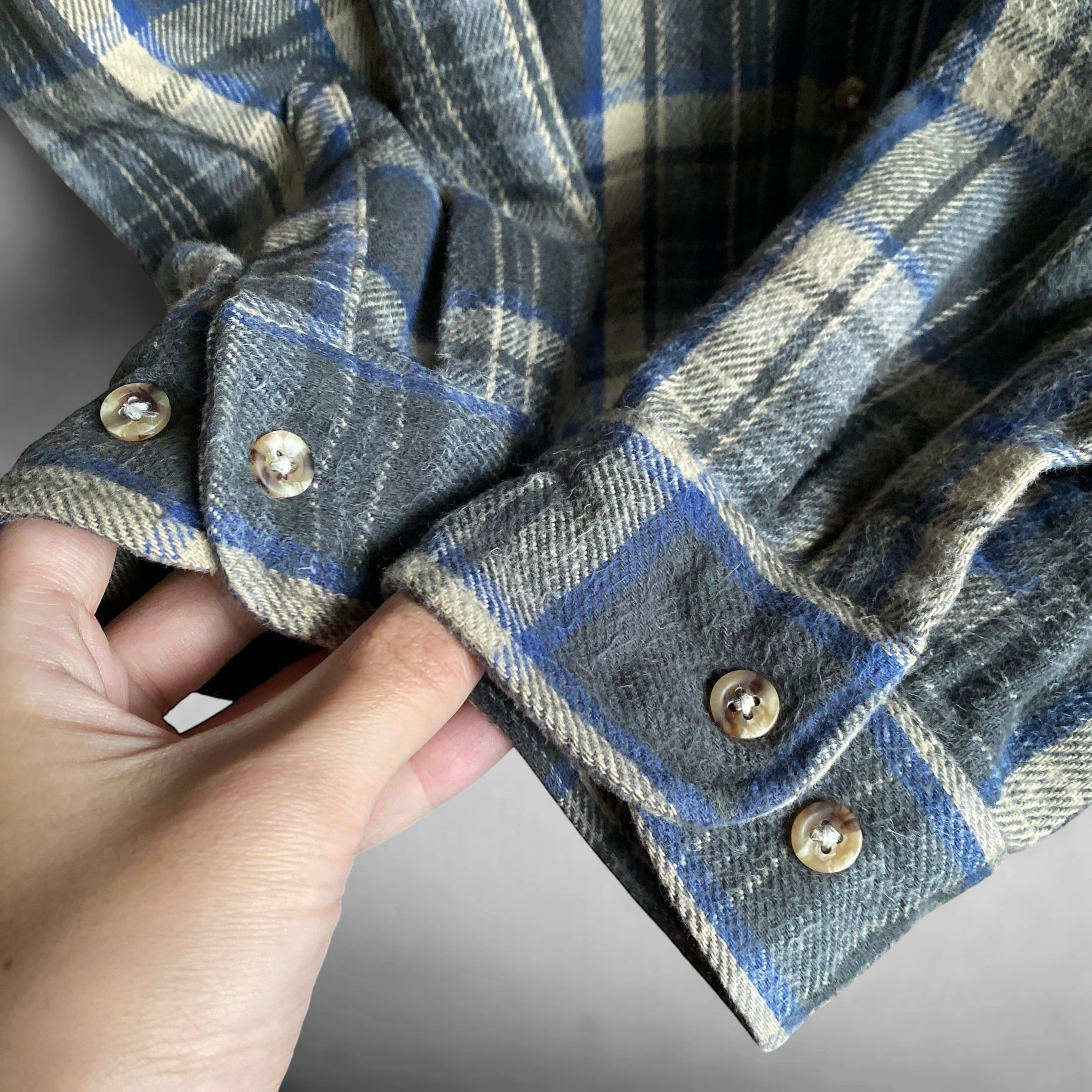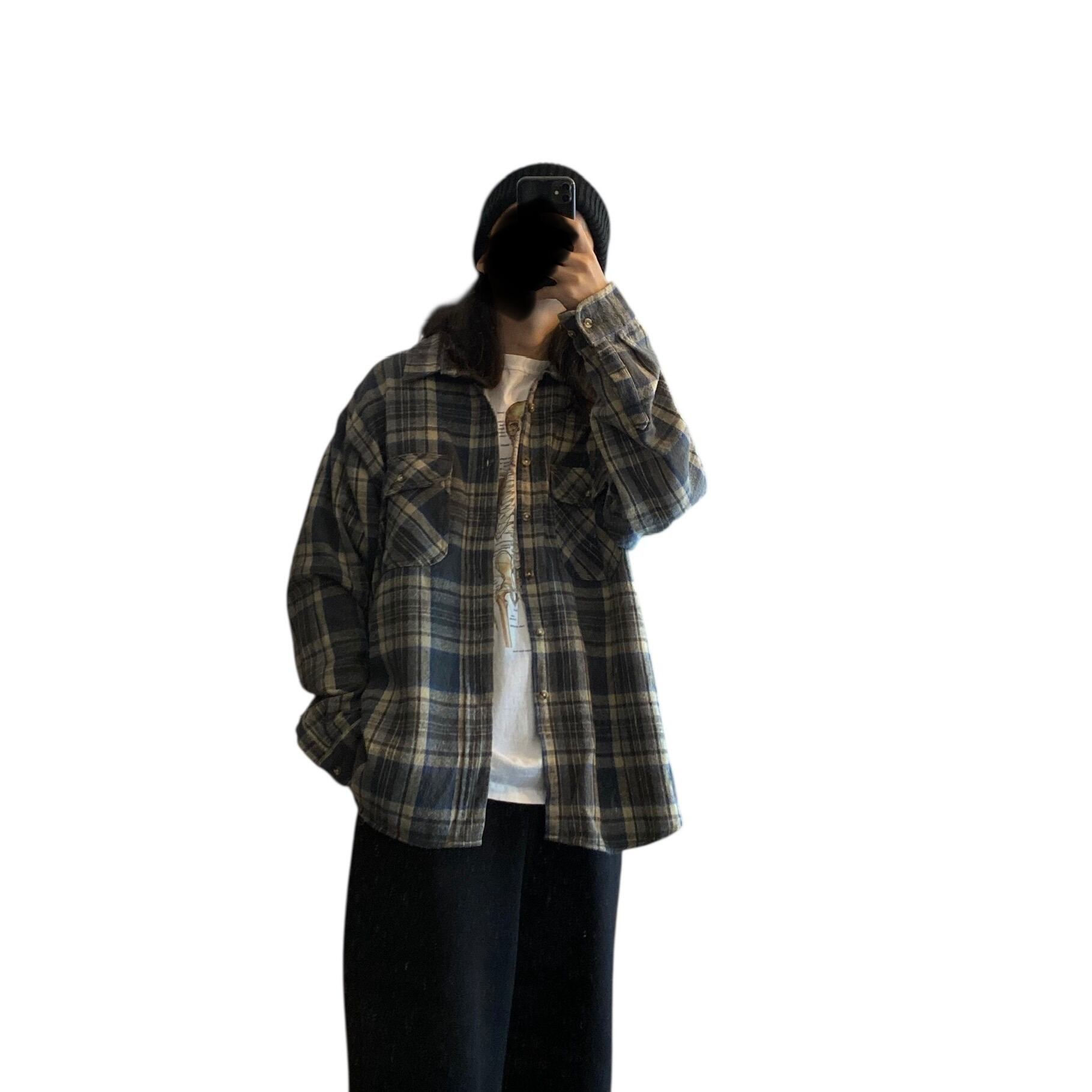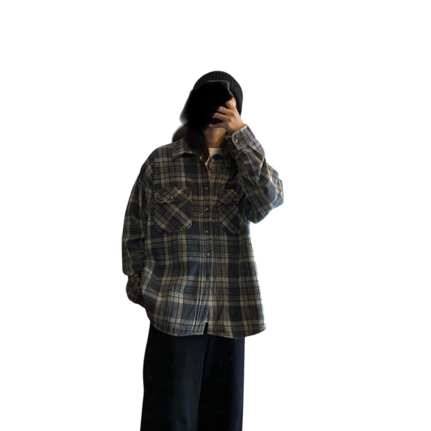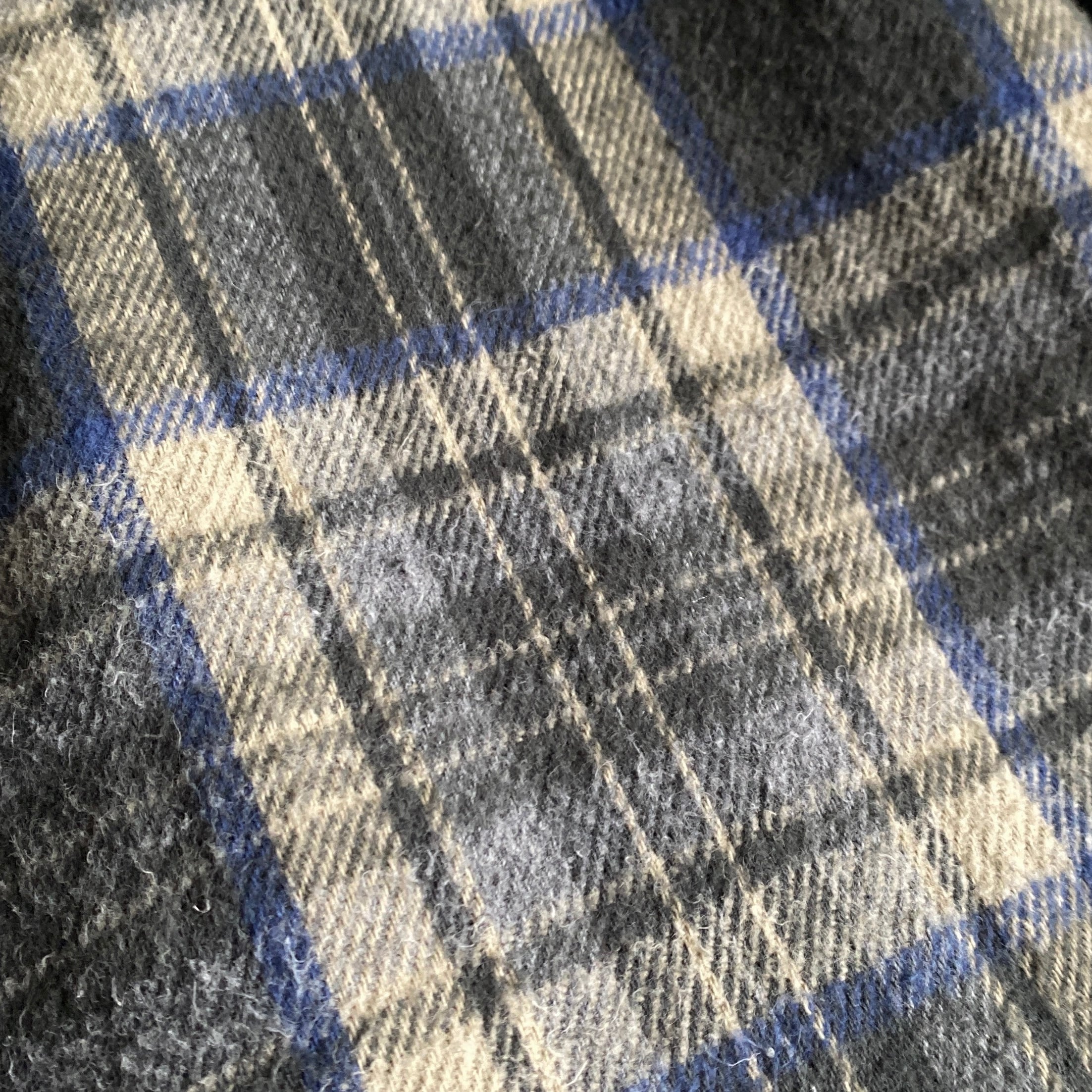 肉厚でモチっとしたコットンフランネル素材に、ブラック×グレー×ベージュ×ブルーの好配色なチェック柄、ゆったりとした丸みのあるシルエットが抜群に格好良い一着。