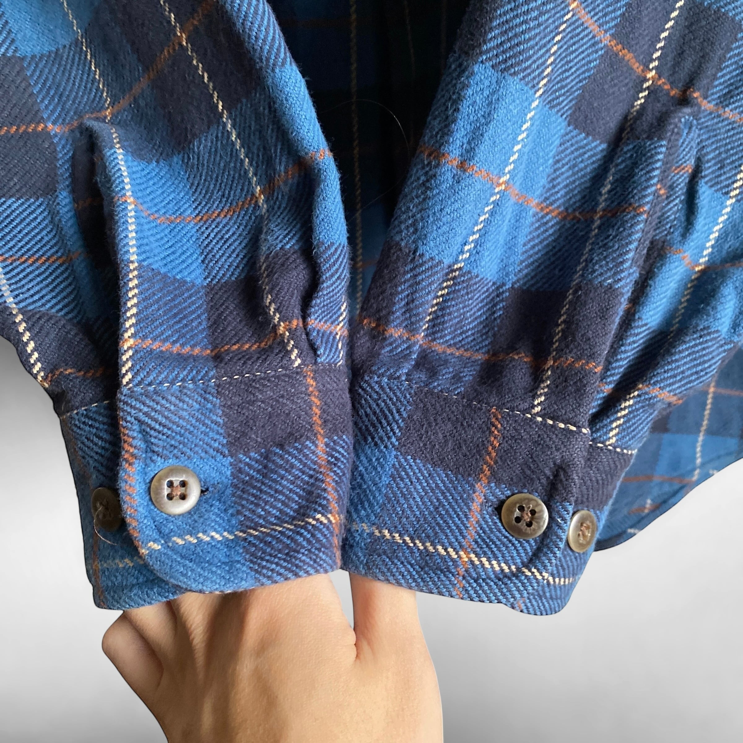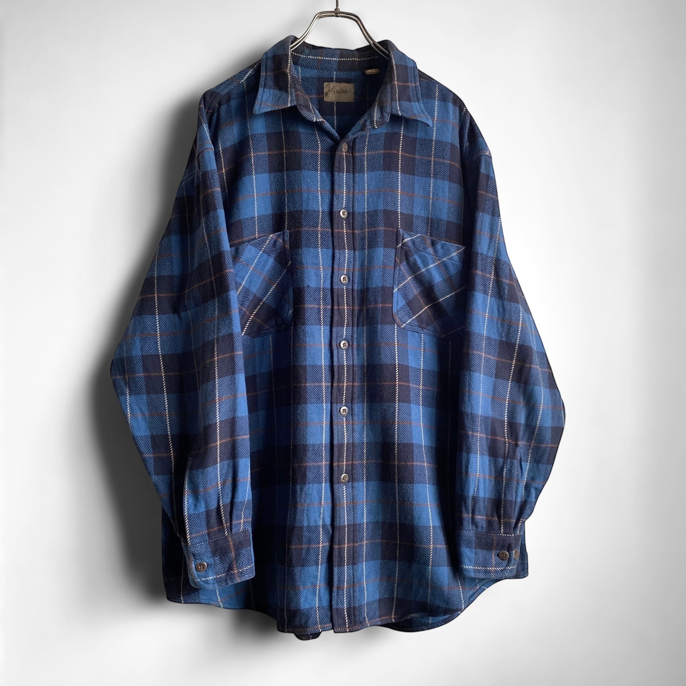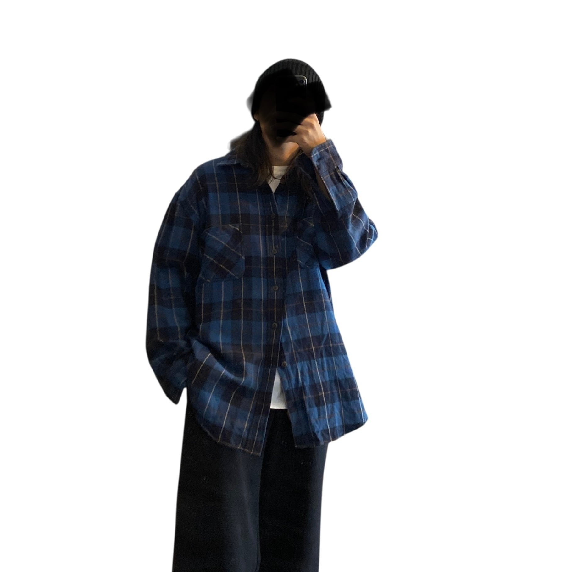 肉厚でモチっとしたコットンフランネル素材に、枯れたネイビー×ブルーベースの絶妙な配色のチェック柄、ゆったりとした丸みのあるシルエットが抜群に格好良い一着。