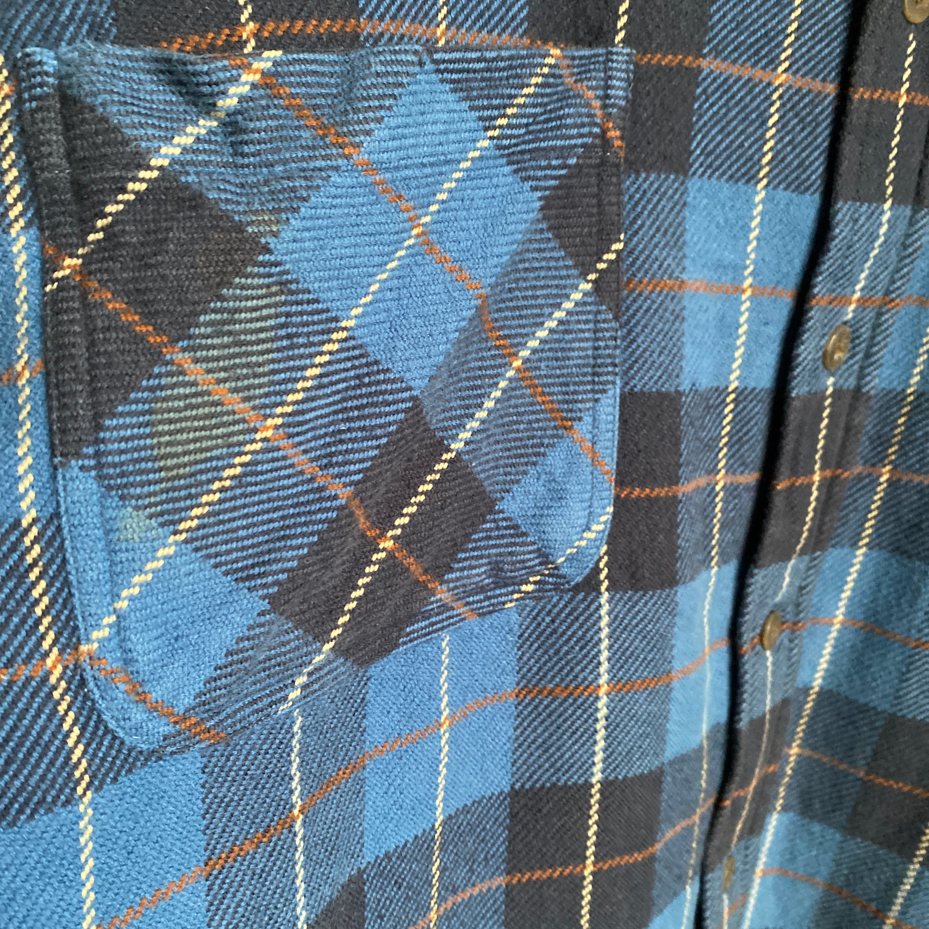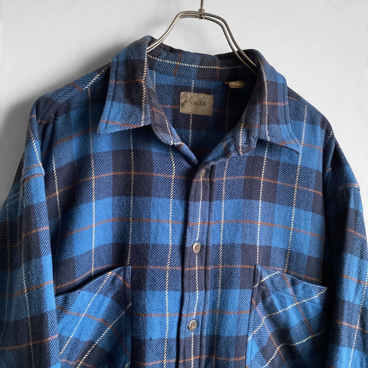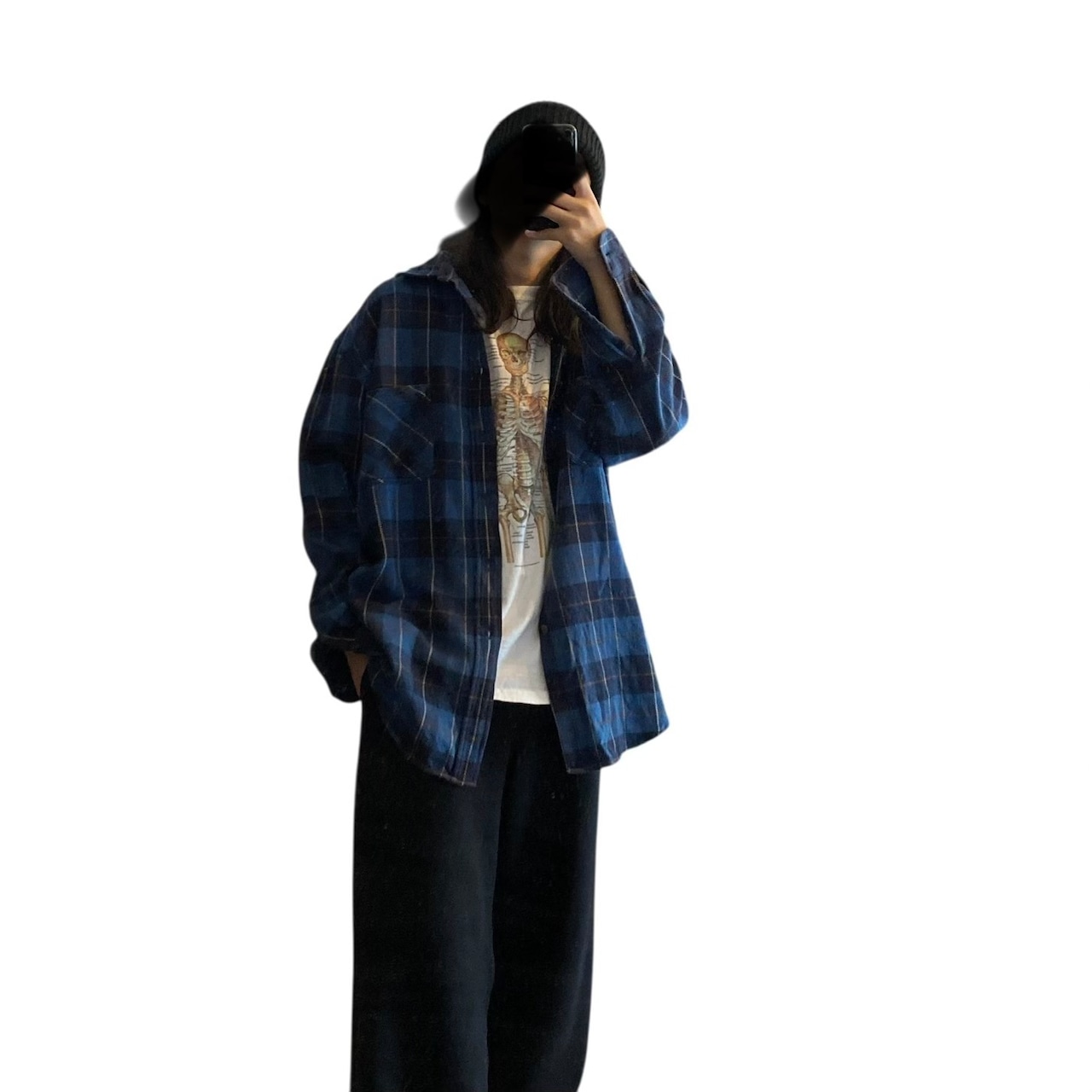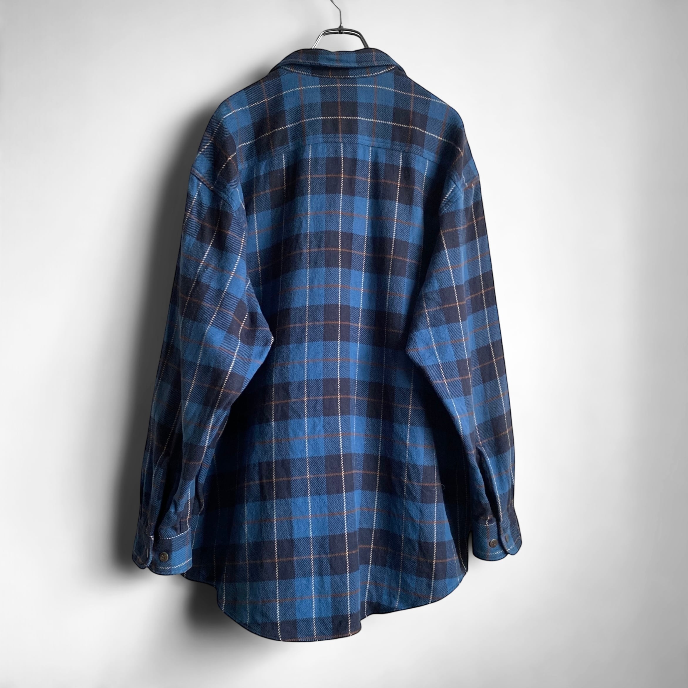肉厚でモチっとしたコットンフランネル素材に、枯れたネイビー×ブルーベースの絶妙な配色のチェック柄、ゆったりとした丸みのあるシルエットが抜群に格好良い一着。