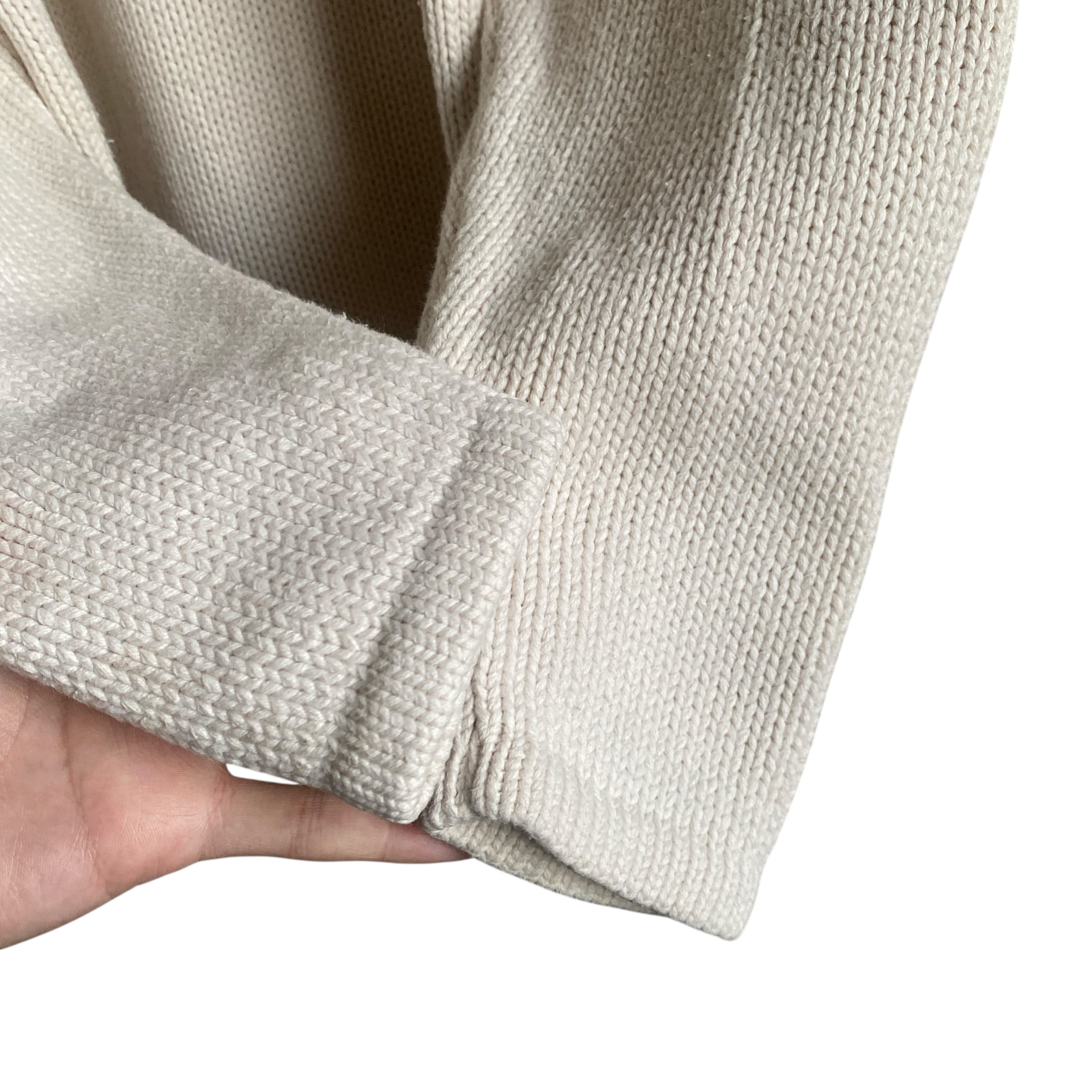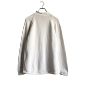 肉厚で柔らかいコットン100のニット生地に、ホワイト〜エクリュぐらいの上品な色目、バランスの良いベーシックなシルエットが非常に格好良い一着。