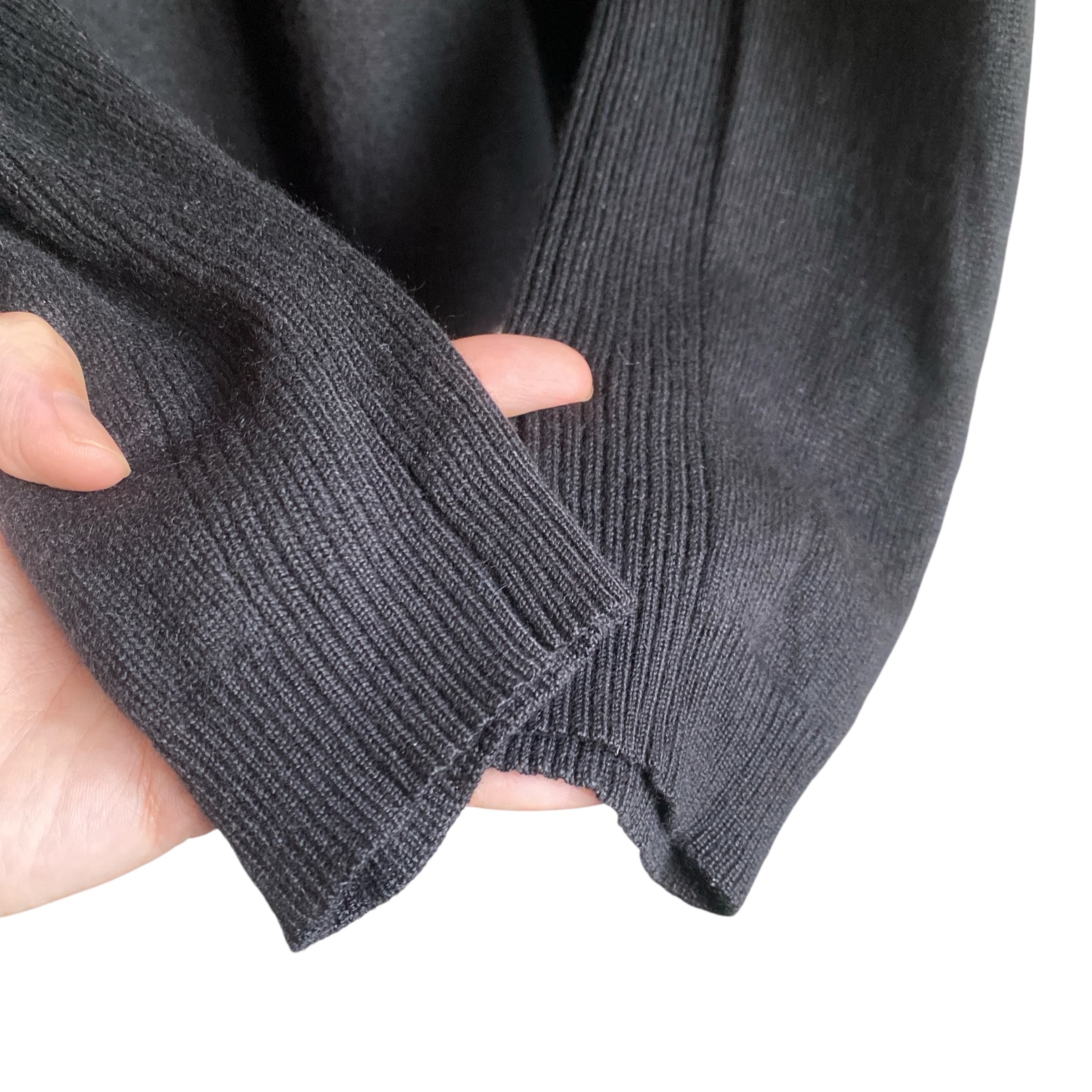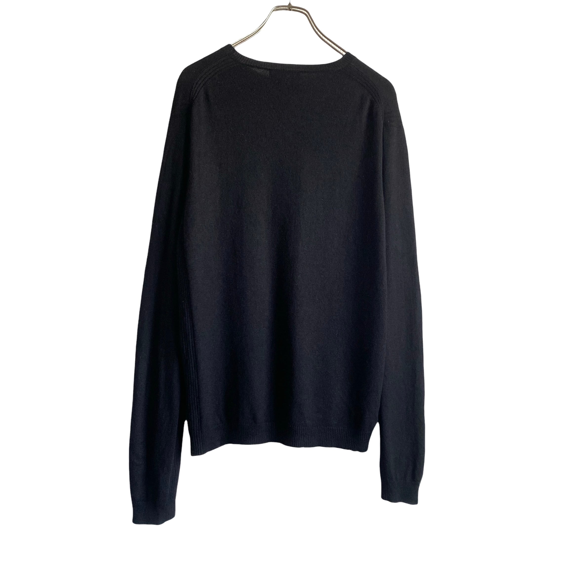 程よく肉厚で、非常に滑らかで柔らかいカシミヤシルクのハイゲージニットに、ブラックカラー、細すぎジャスト目で着られるサイズ感が非常に格好良い一着。