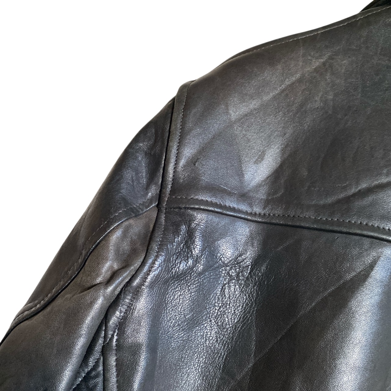 状態/ダメージ、スレなど着用感はありますが、革もしなやかで(襟のみステッチが入るため硬め)まだまだ末長く着られると思います。ボタンはおそらく全部換装されております。