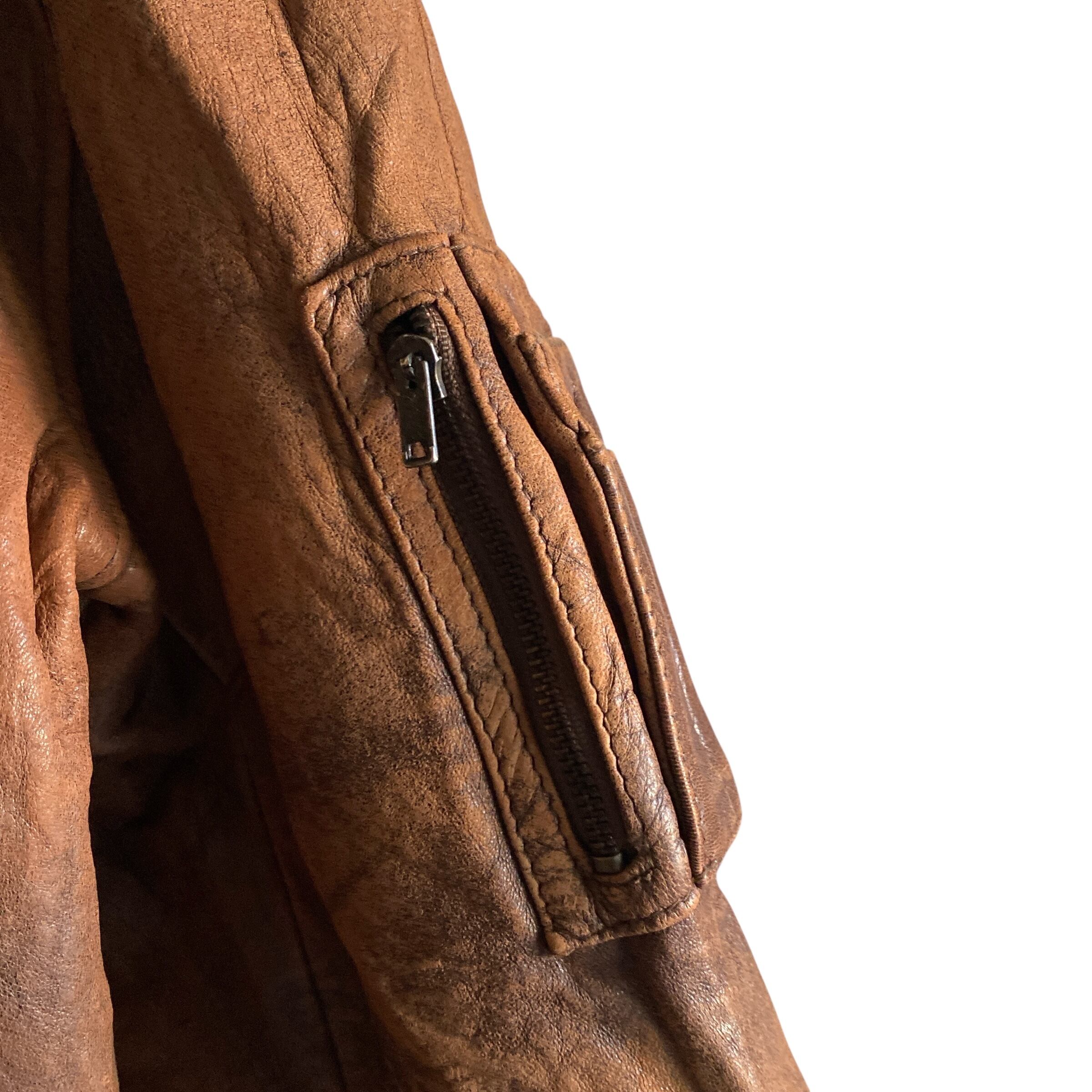 内タグの表記的にユーロ物だと思いますが、肉厚でモチっと柔らかいレザー(おそらくラム)に、丸みのあるボックスシルエット、雰囲気の良いムラ感のあるブラウンが非常に格好良い一着。