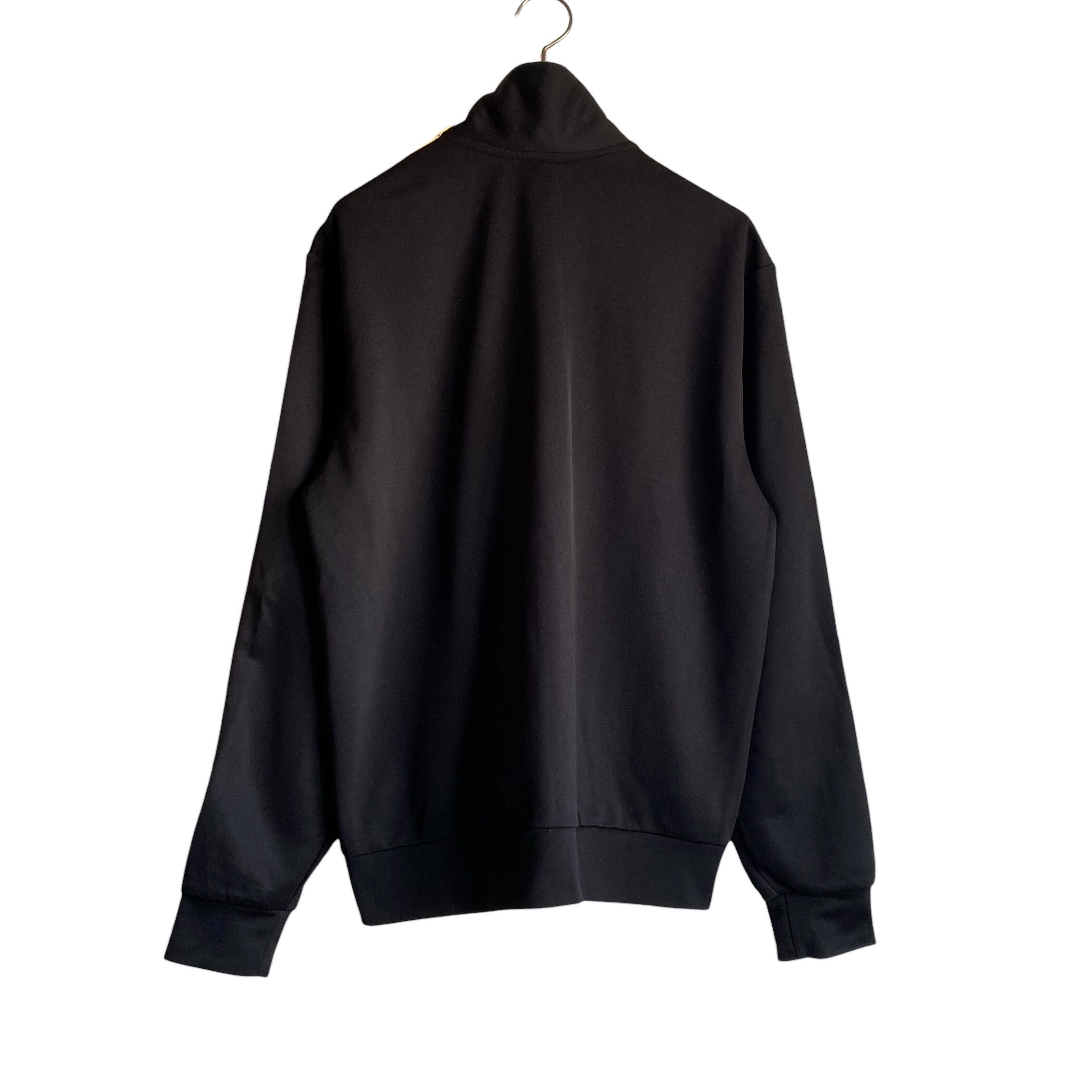 ブラック×イエローのカラーリングに、トレフォイルロゴ、ハイネックと、ここまでは特に珍しくもない定番な一着ですが、こちらは3ラインがネックまでついている変態仕様。