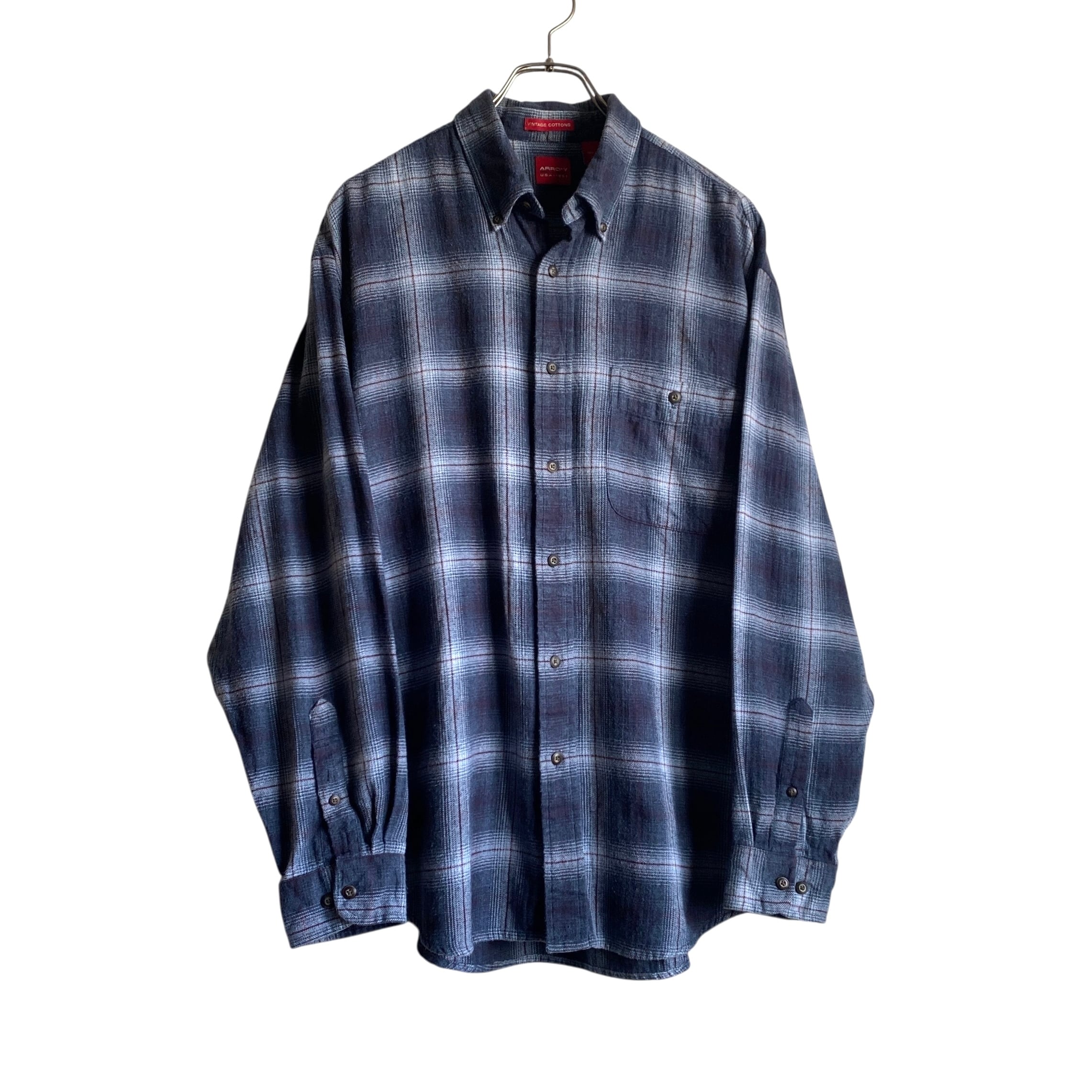 90s〜 ARROW shadow plaid cotton flannel BD shirt