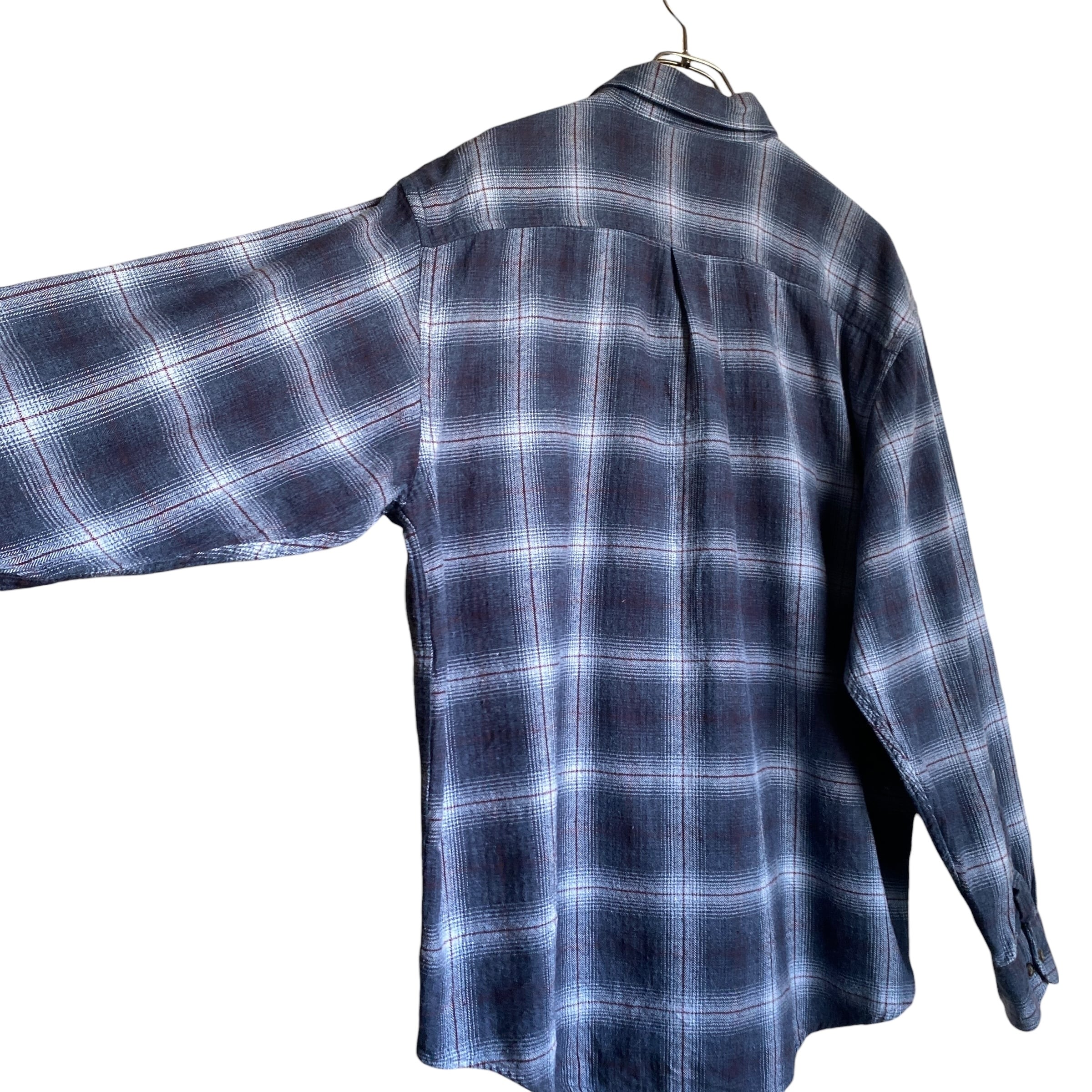 柔らかく風合いの良いコットンネルに、ブルーベースの好配色オンブレチェック、ゆったりとしたボックス目な良シルエットが素晴らしい一着。