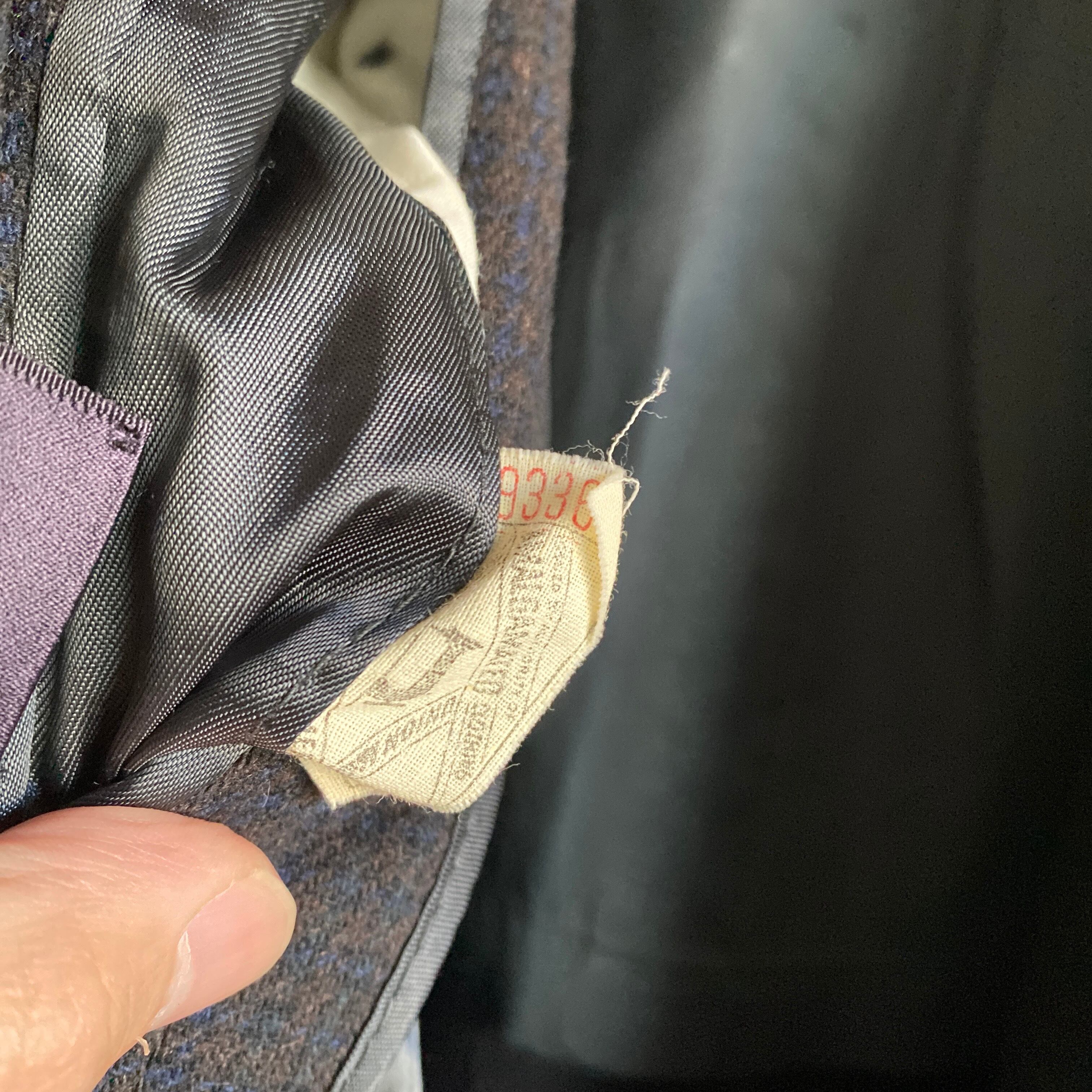 肉厚ですが冬物のスーツ地のような、サラッと滑らかな上質な梳毛ウール地に、ダークネイビー×ダークブラウンの細かな格子柄、ミドル丈で丸みのあるクラシックなAラインシルエットが素晴らしい一着。