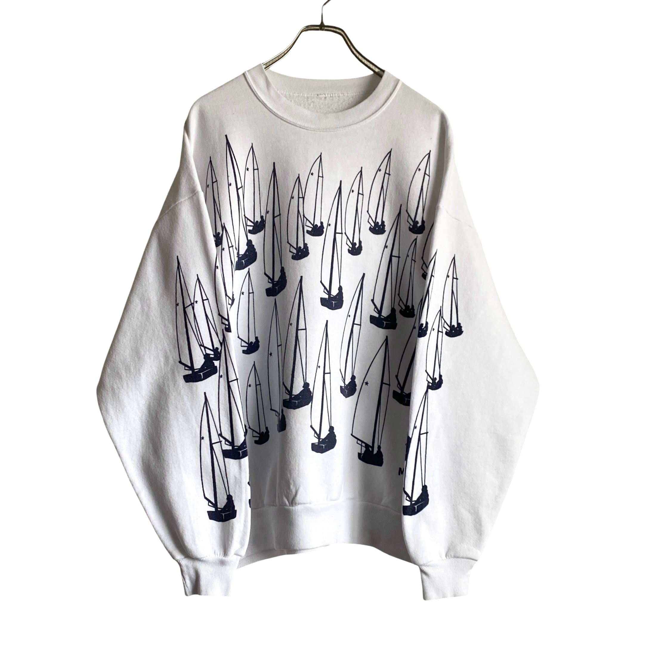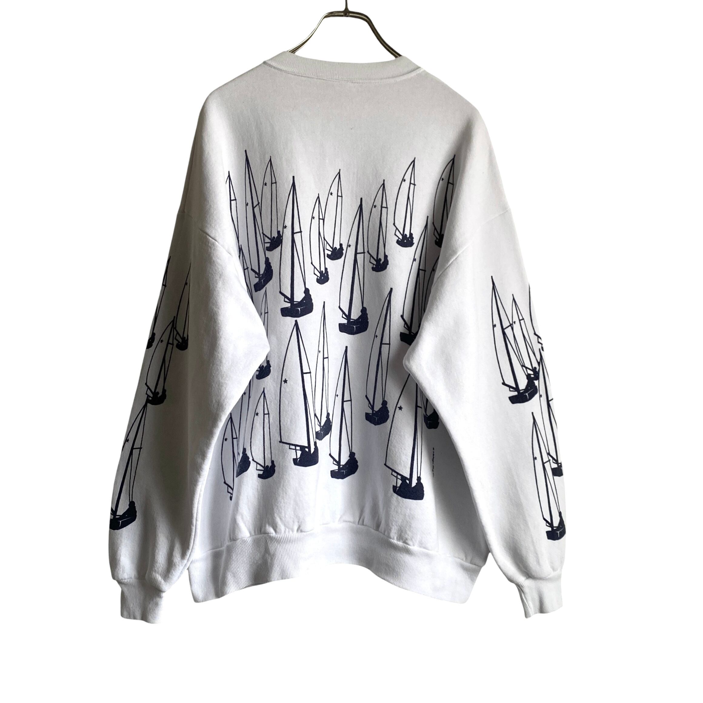 〜1990年代「ミシガンラグ」ヨット総柄プリントラグランスウェットトレーナーになります。(タグ欠損ですが、おそらくUSA製JEARZEESかと)