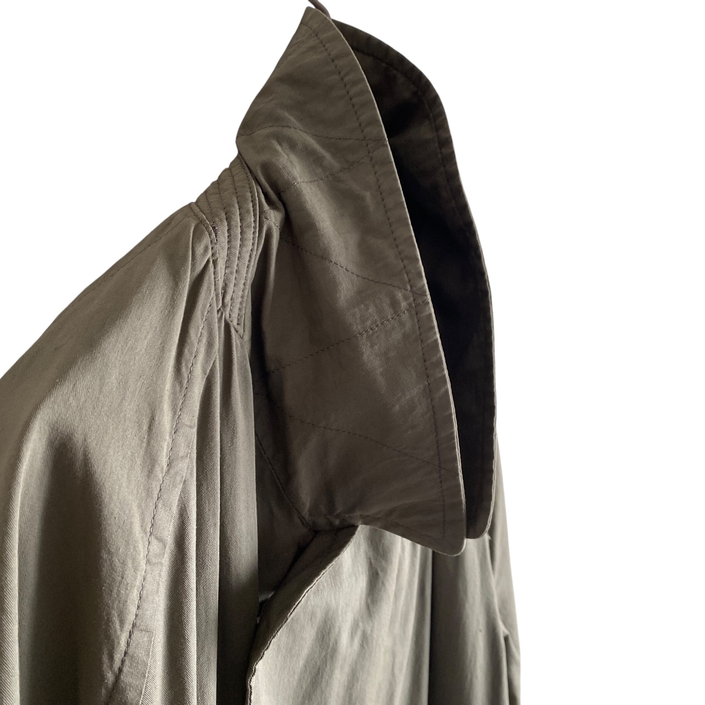 ややネップ感があり、良い意味で粗野で無骨さのある柔らかいコットンギャバジン生地に、オーバーサイズで丸みのあるAラインシルエット、ジグザグステッチやインバーテッドプリーツ、脇下のベンチレーションなど、ミリタリーやハンティングなどを彷彿とさせるクラシックなディテールが素晴らしい一着。