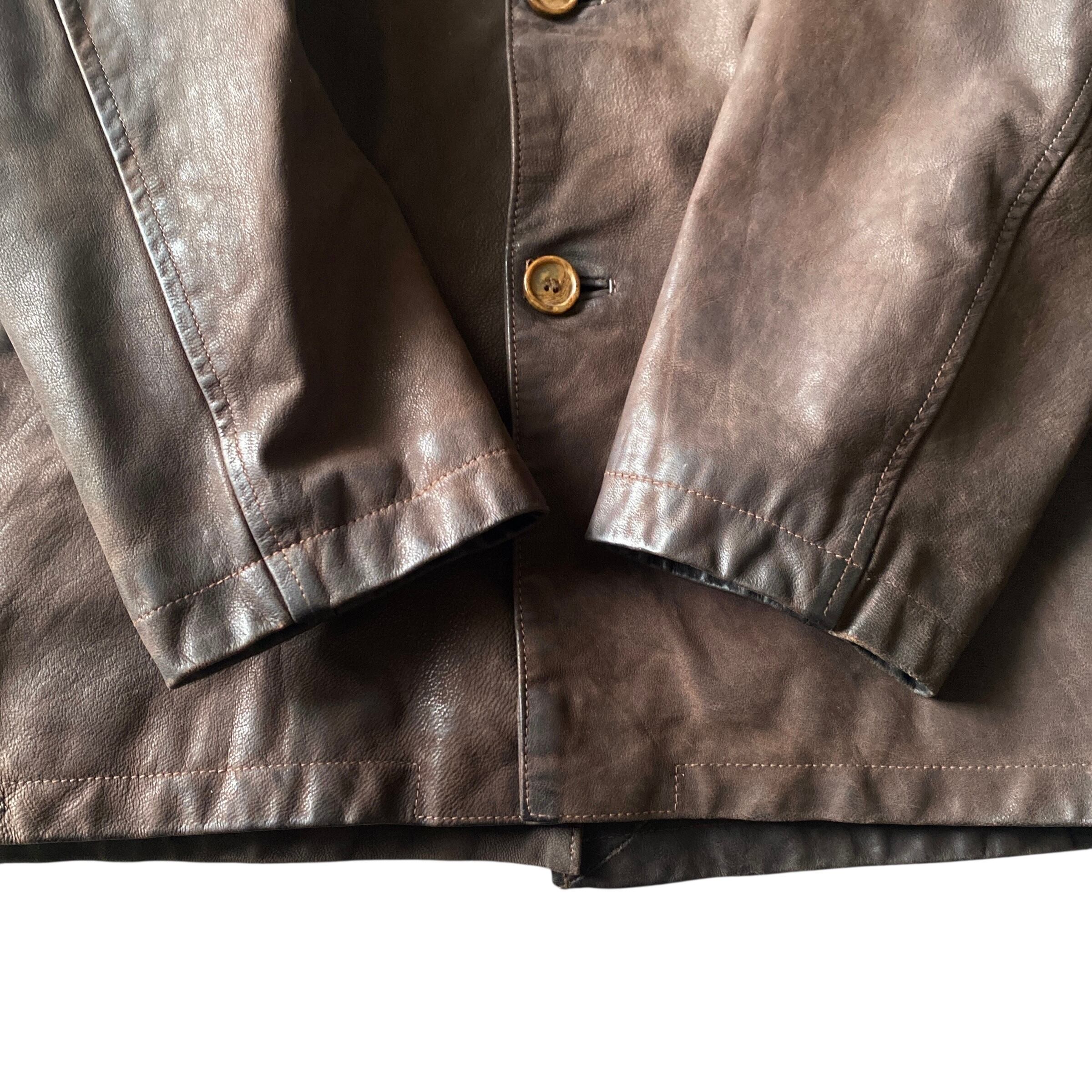 今期もかなりの枚数のアメ物レザーカーコートを見ましたが、作り込みが1発抜けているなと感じました。(レザーの質はもちろん、襟裏のジグザグステッチ、袖裏、フラップ裏のヴィスコース生地など、かなりこだわりを感じる作りとなっております。)