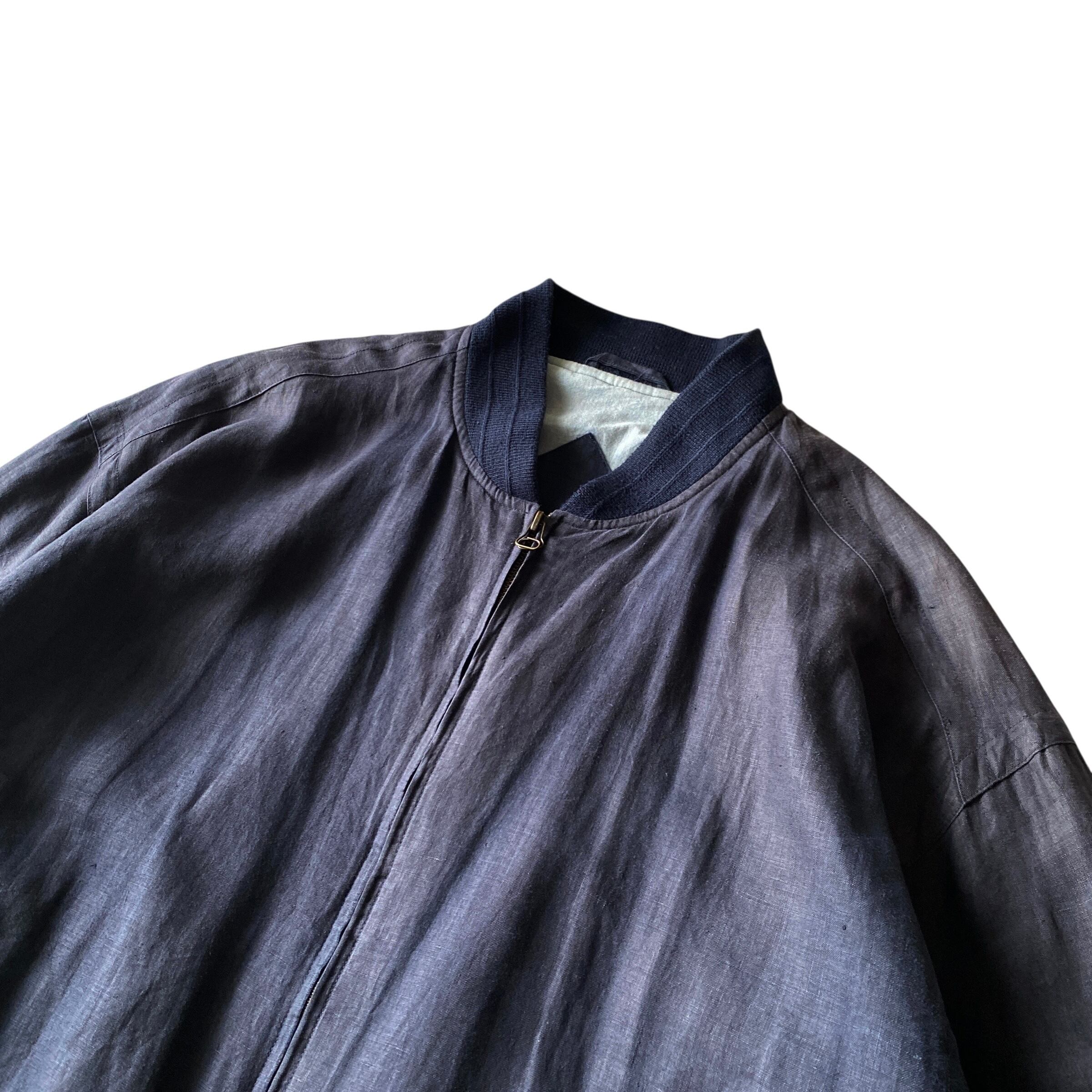 かなり良い感じにフェードした茄子紺系のネイビーカラーに、空気を含んだような、柔らかくも程よくコシのある上質なリネン生地、アームホール、身幅共にゆったりとした、丸みのあるボックスシルエットが大変素晴らしい一着。(一応ドライクリーニング表記ですが全然洗いかかってます)
