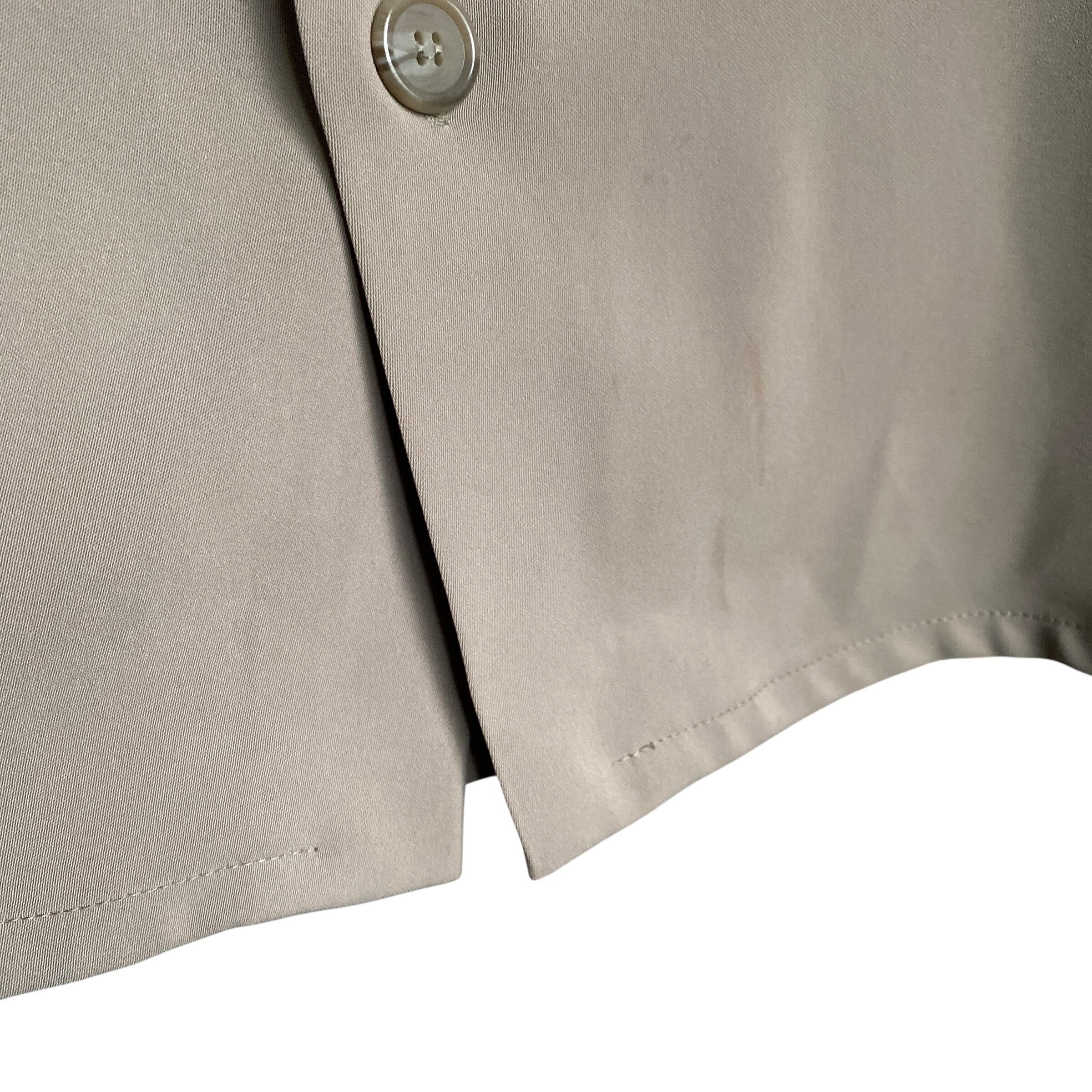 レーヨン×ヴィスコースの肉厚でとろみのある上質なギャバジン生地に、ベージュ系の上品な色目、程よくゆとりのあるベーシックなシルエットが非常に格好良い一着。