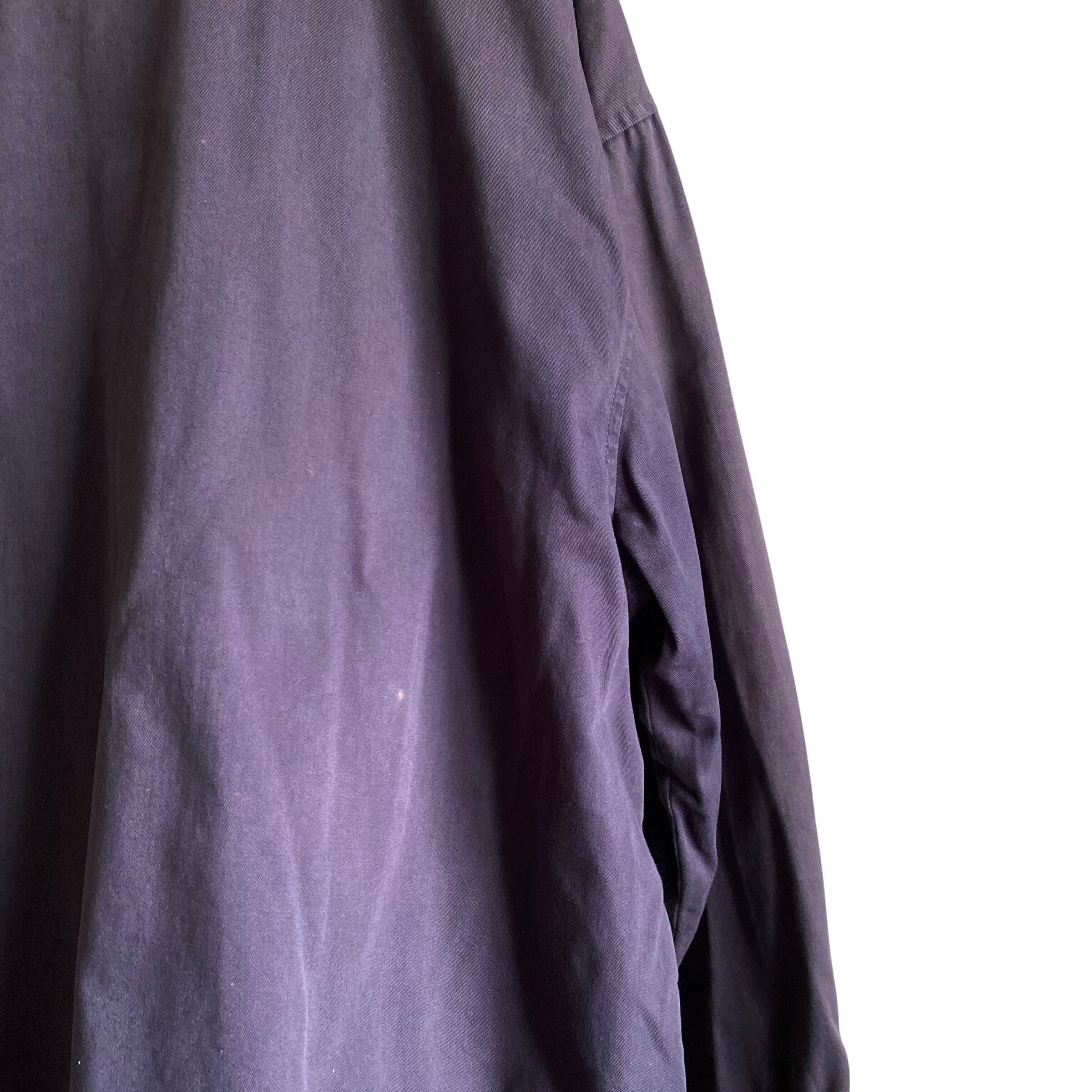 かなり良い感じにフェードした茄子紺ネイビー系カラーに、トラディショナルなタータンチェックの総裏、あると嬉しいチンストラップ、ゆったりとしたボックスシルエットが素晴らしい一着。