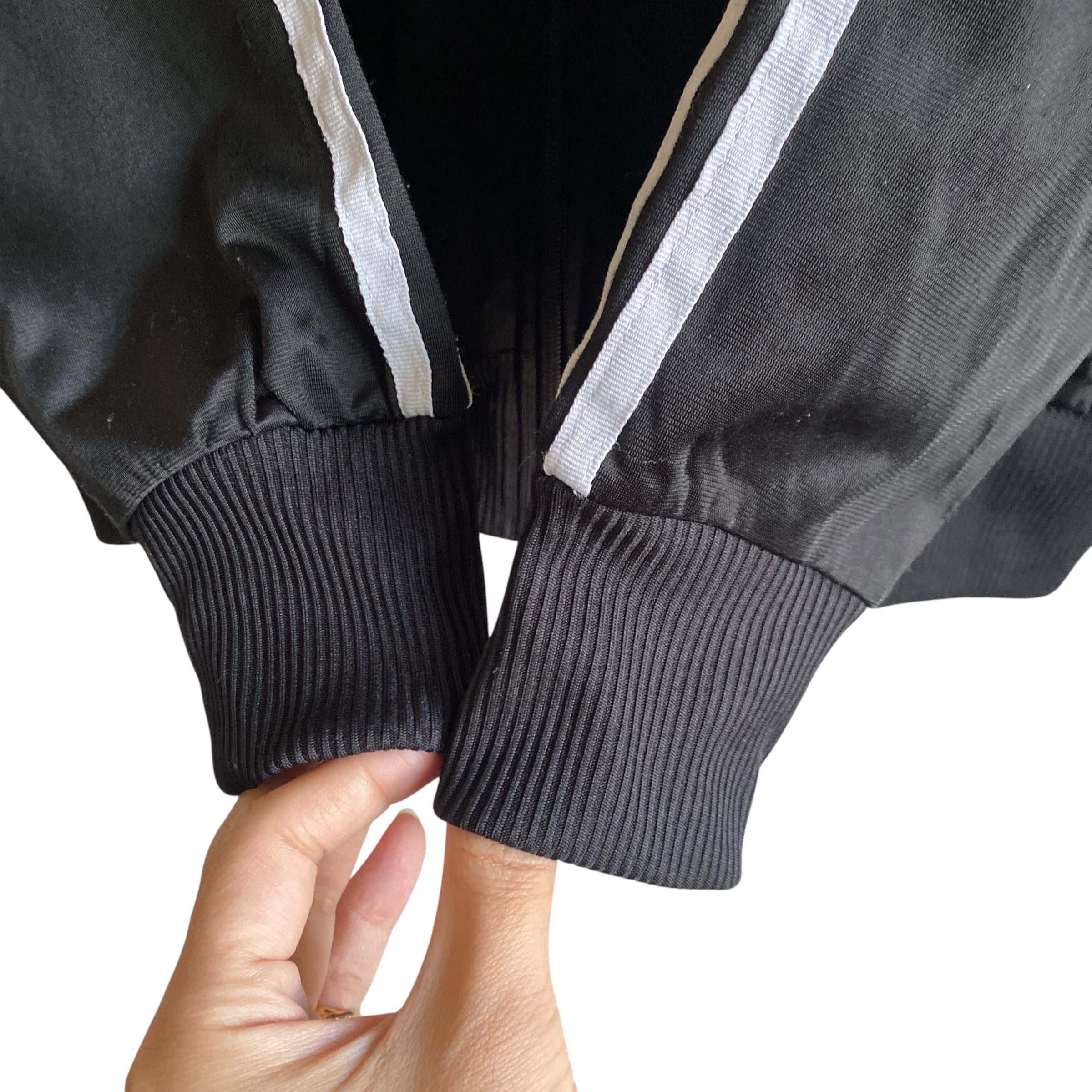 ブラック×ホワイトの定番のカラーリングに、文字ありのトレフォイルロゴ、ゆったりとした短丈ボックスシルエットが非常に格好良い一着。