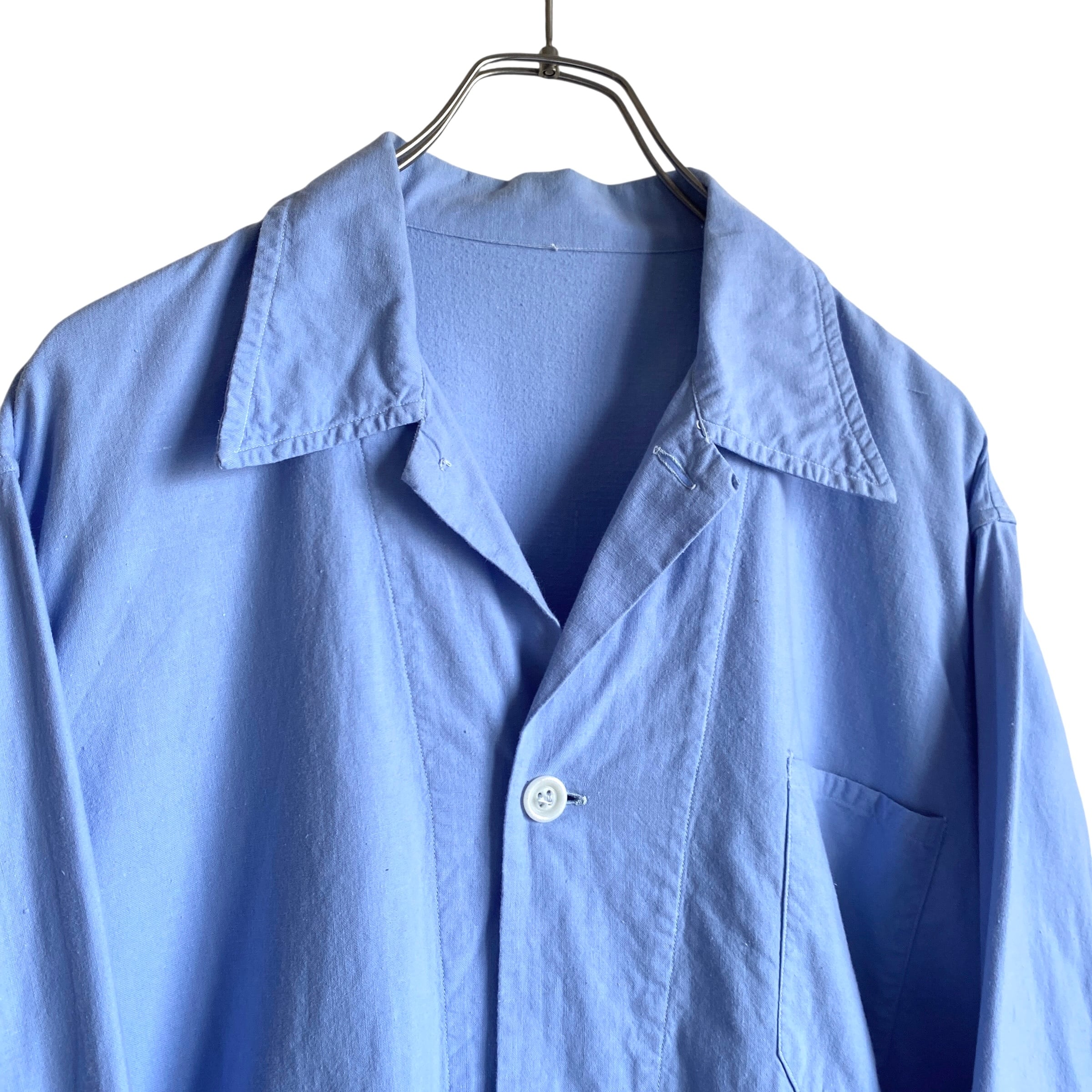 上品なサックスブルーカラーに、裏がフランネルの風合いの良いコットン生地、ゆったりとしたバランスの良いシルエットが非常に格好良い一着。