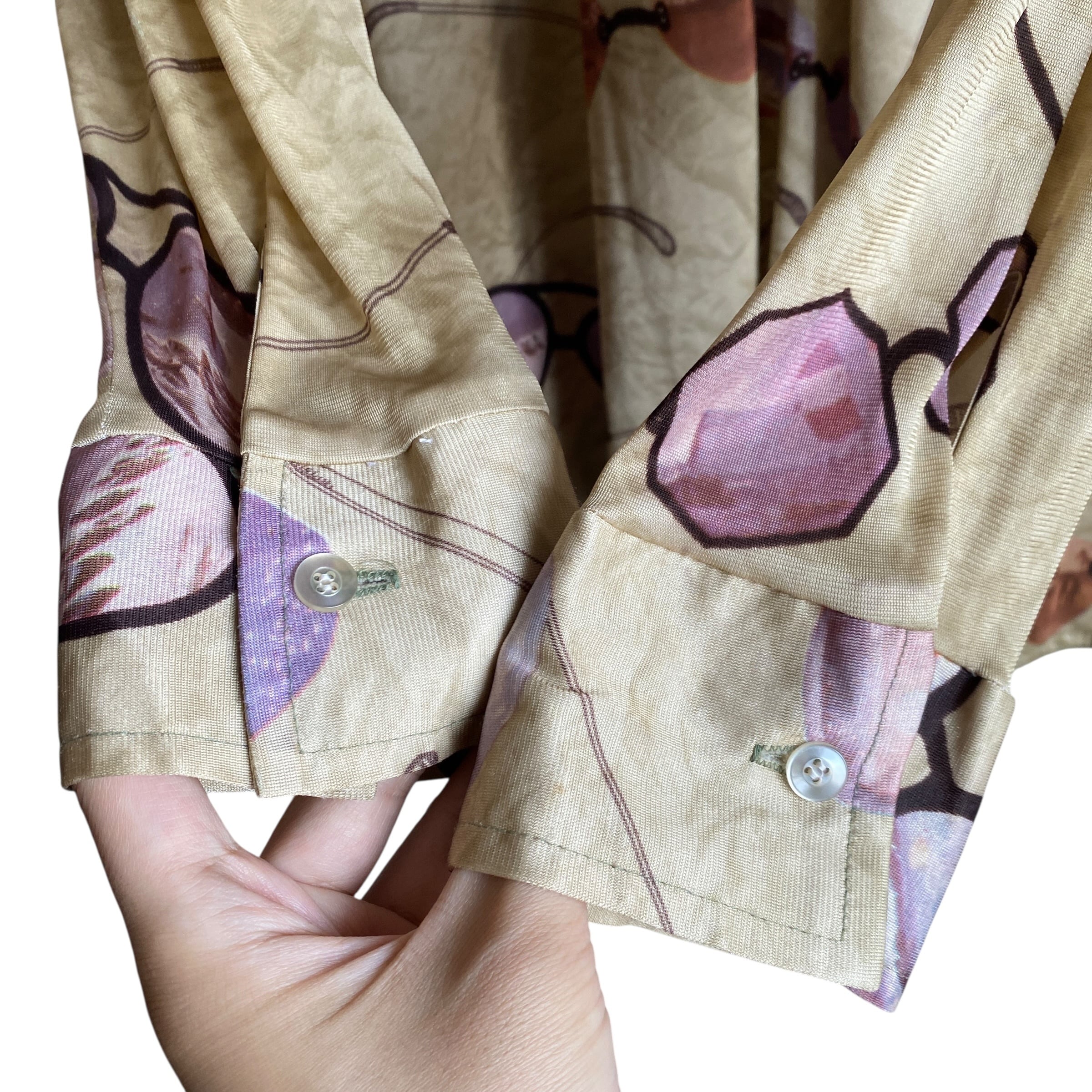 70年代らしいご機嫌な総柄パターンに、肉厚でサラッとした肌触りの良いポリエステルニット、程よくゆとりのあるバランスの良いシルエットが非常に格好良い一着。
